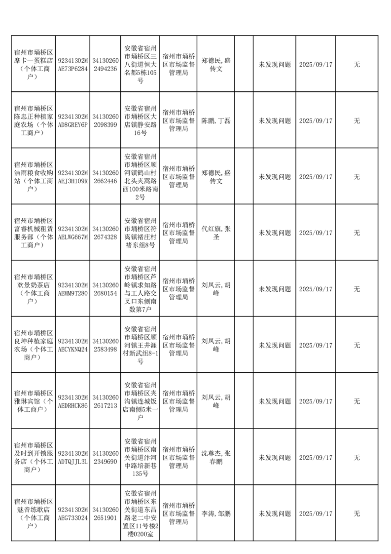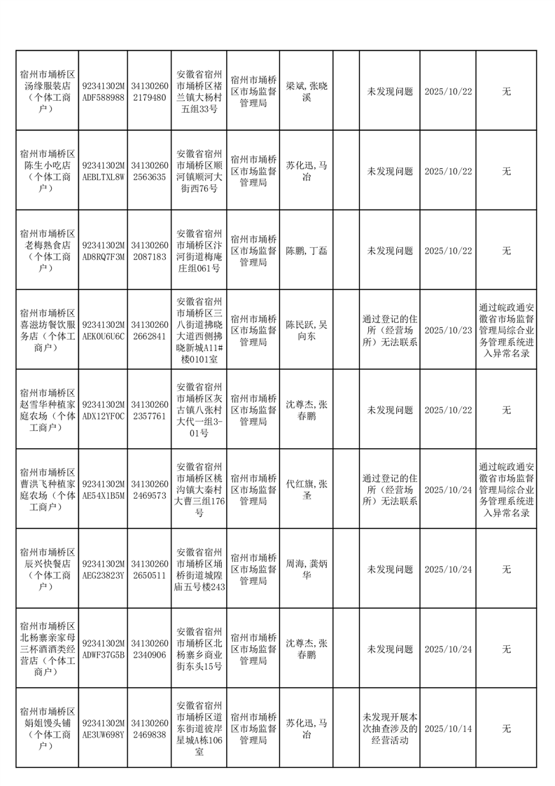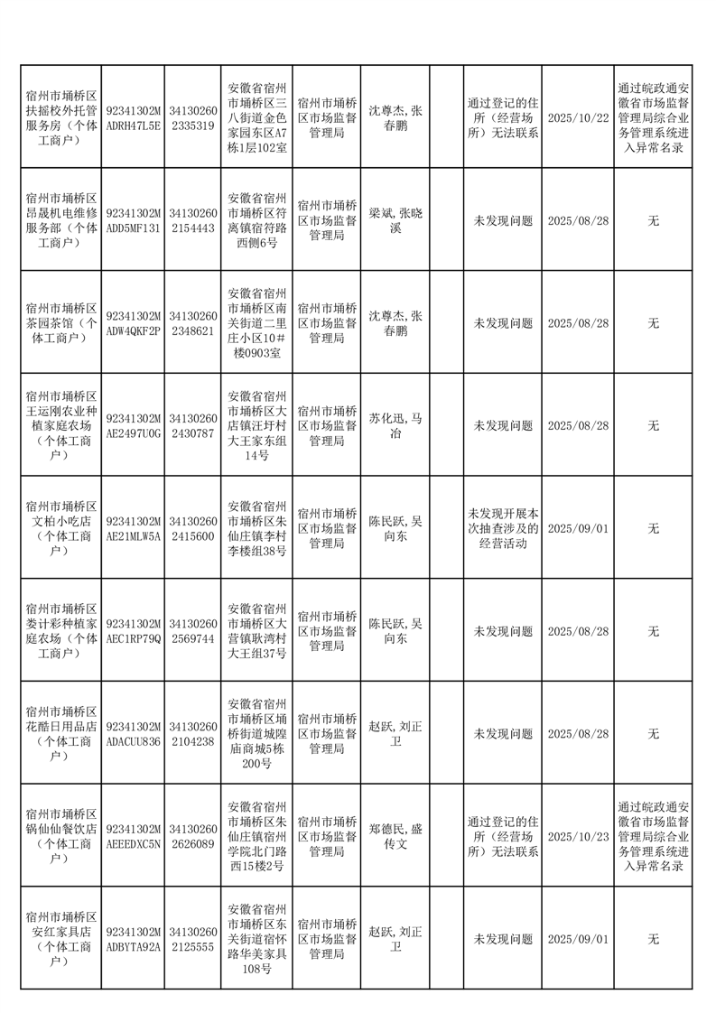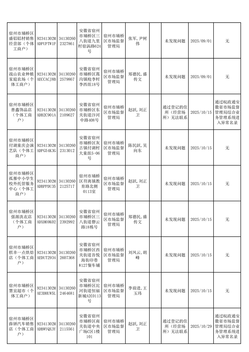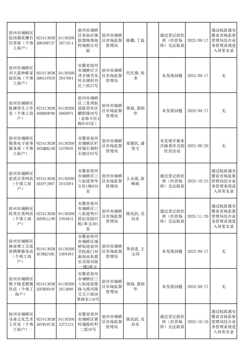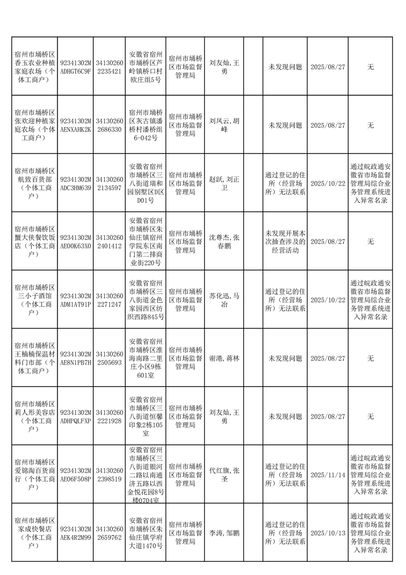 | 名称: | 宿州市埇桥区市场监督管理局2025年全区市场监督管理部门不定向(个体户)抽取计划(检查结果) | ||