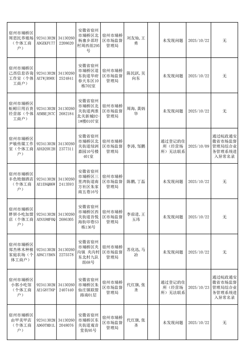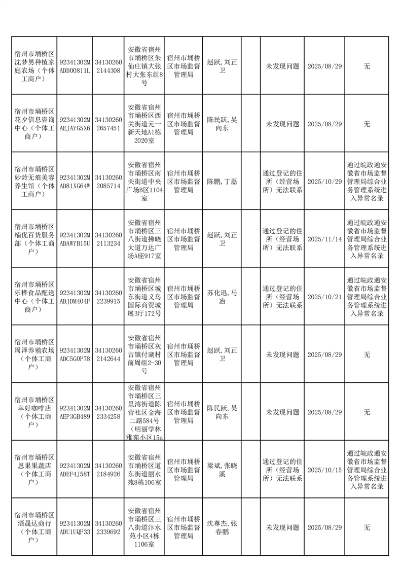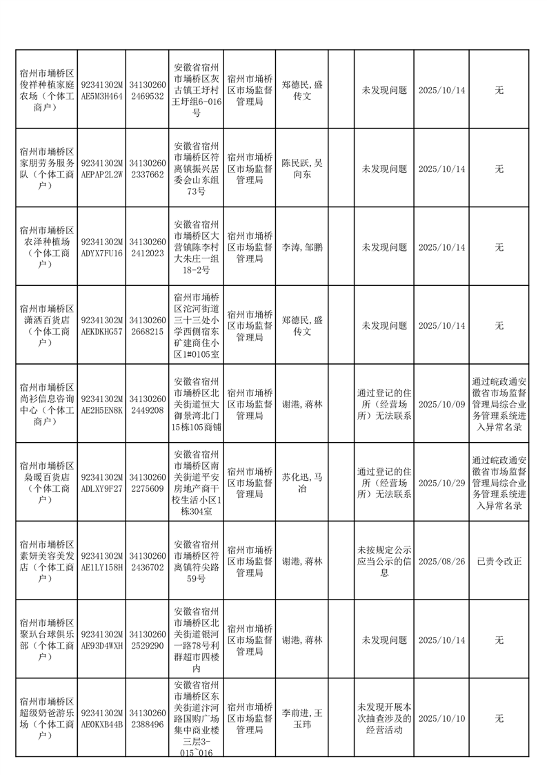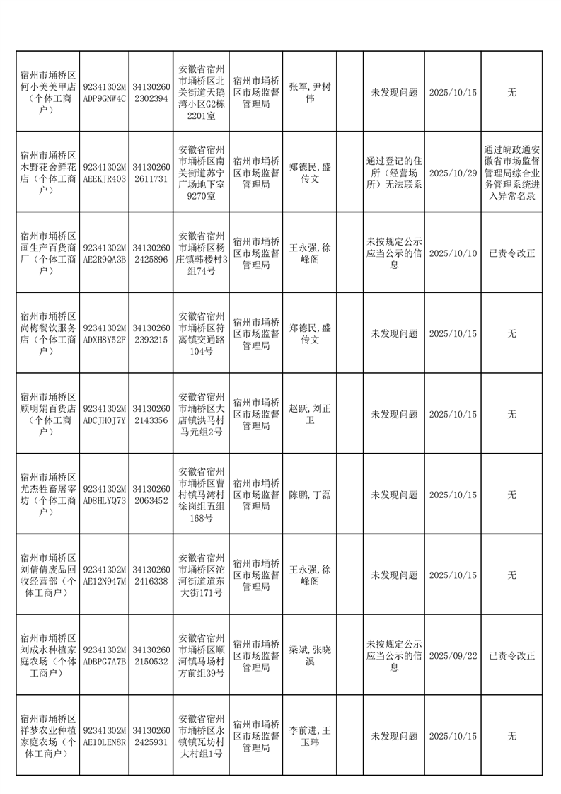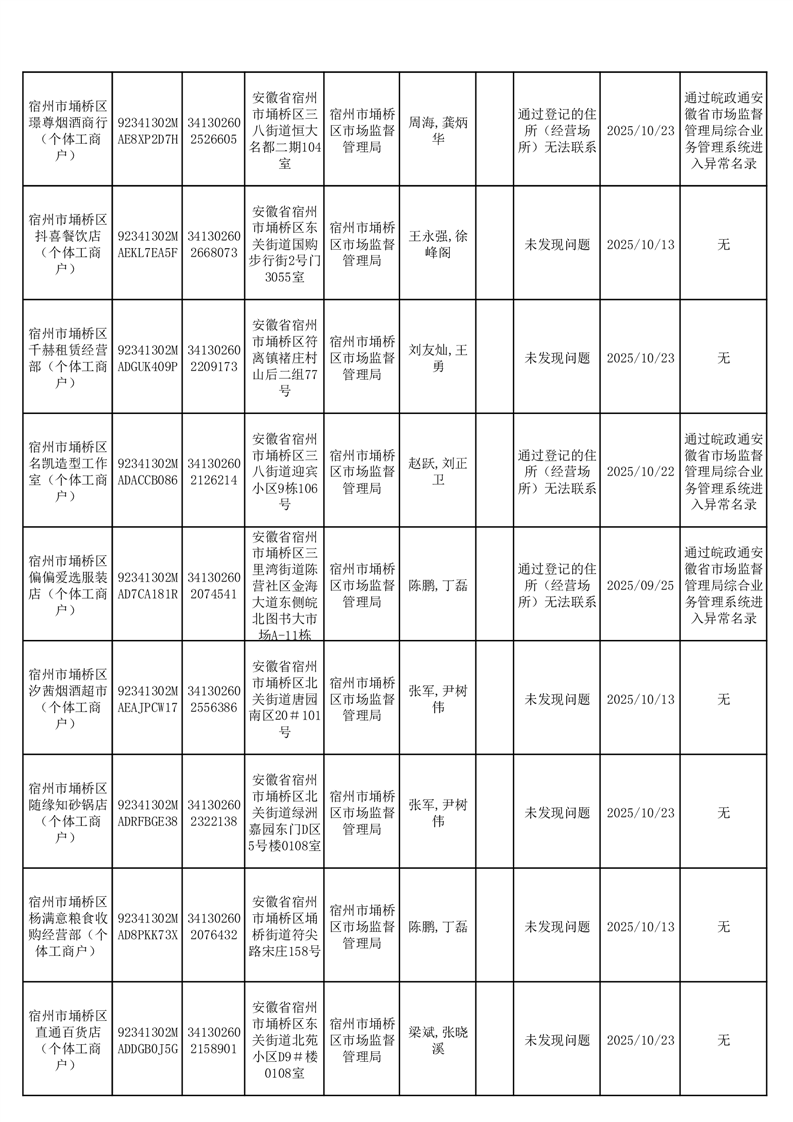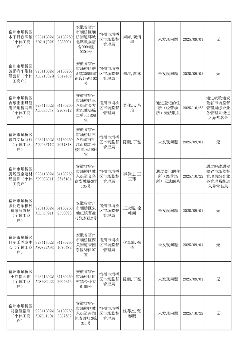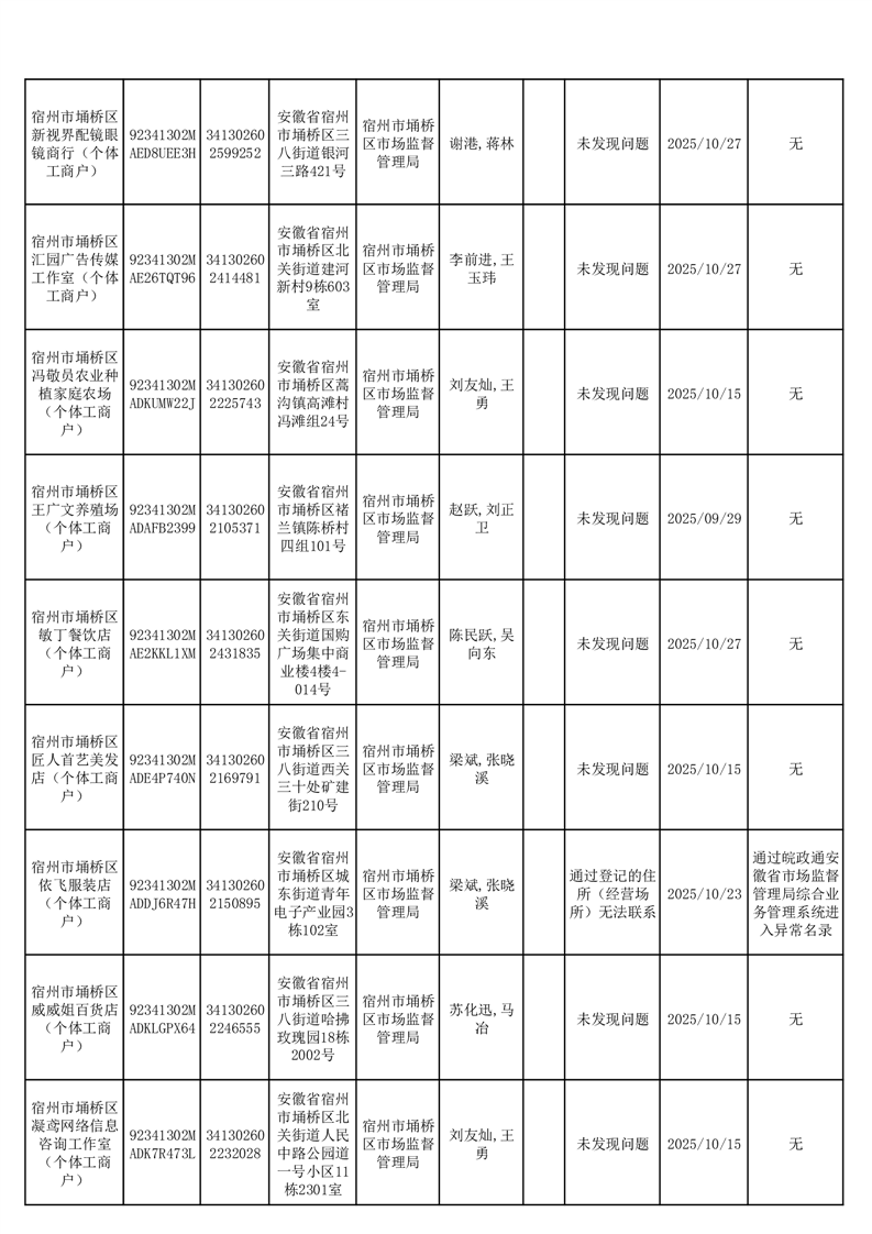 | 名称: | 宿州市埇桥区市场监督管理局2025年全区市场监督管理部门不定向(个体户)抽取计划(检查结果) | ||