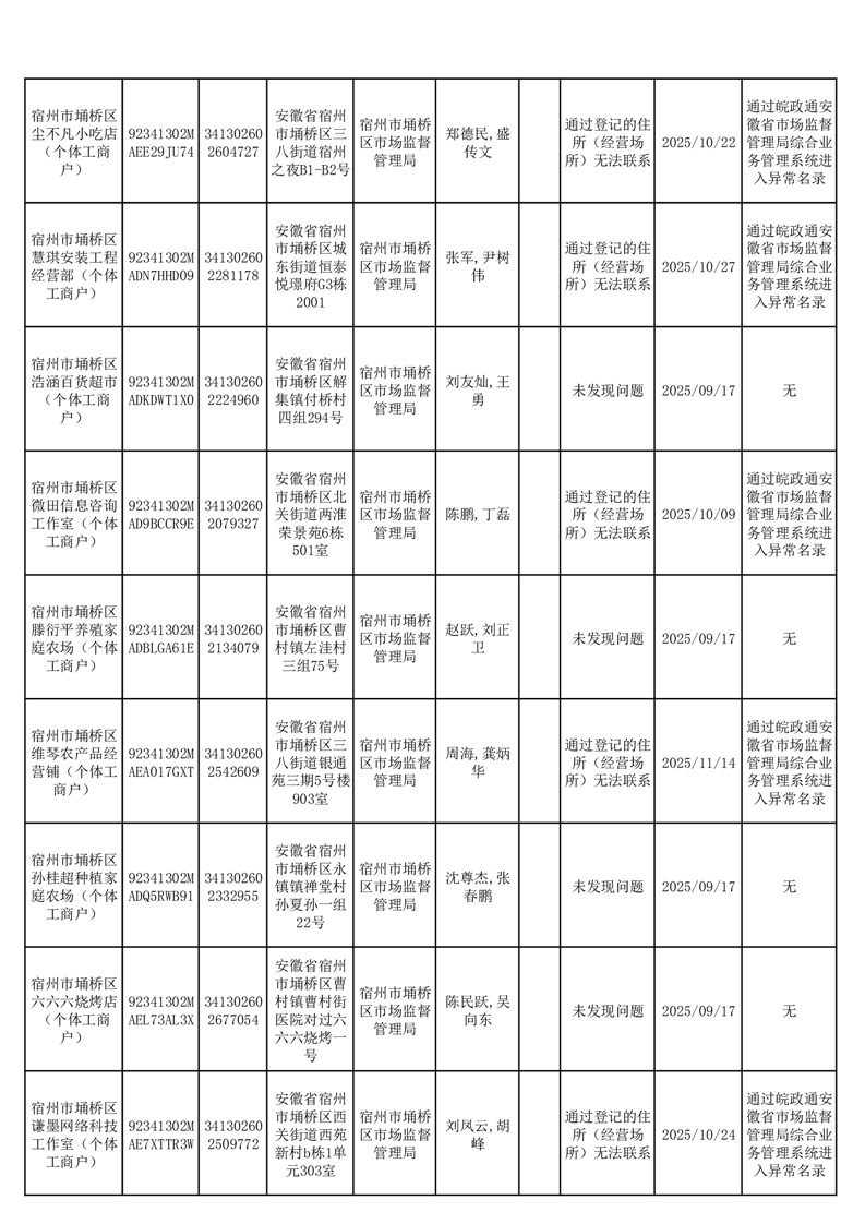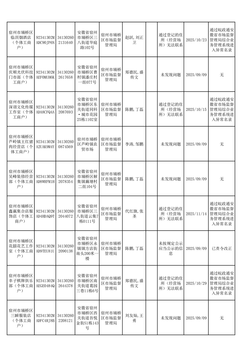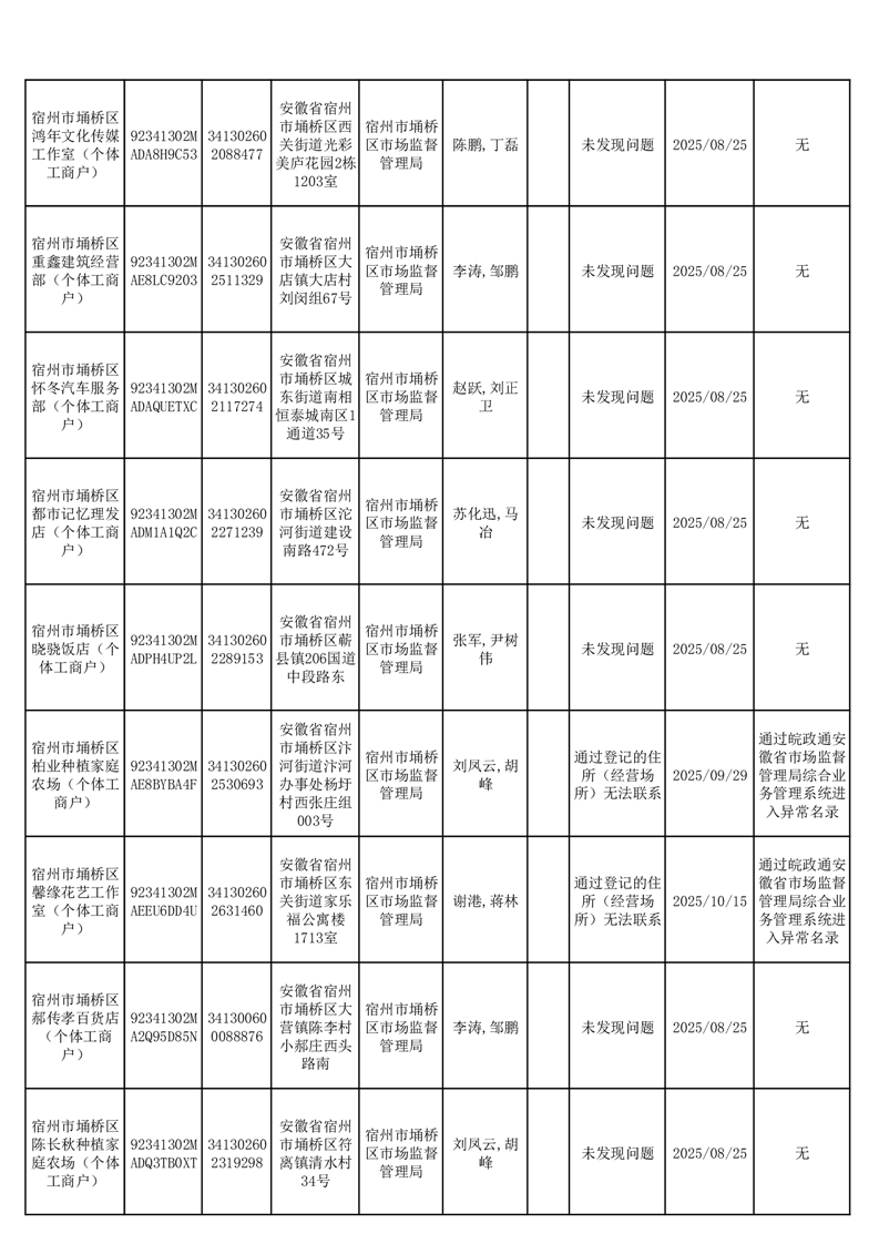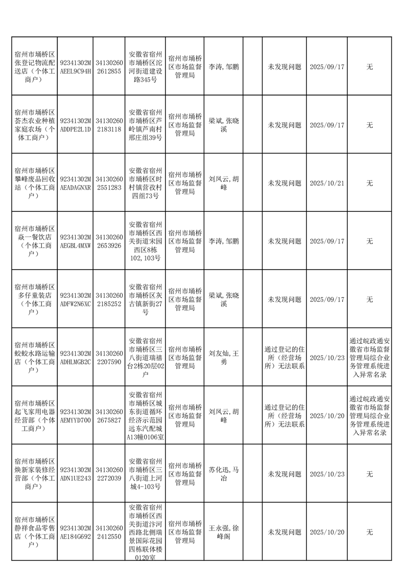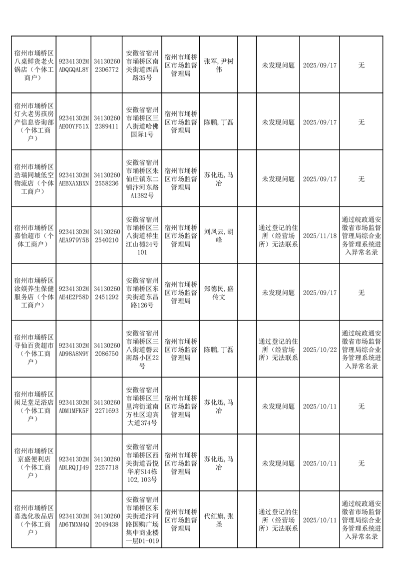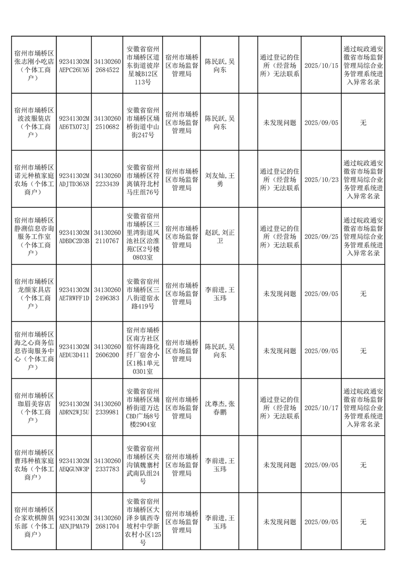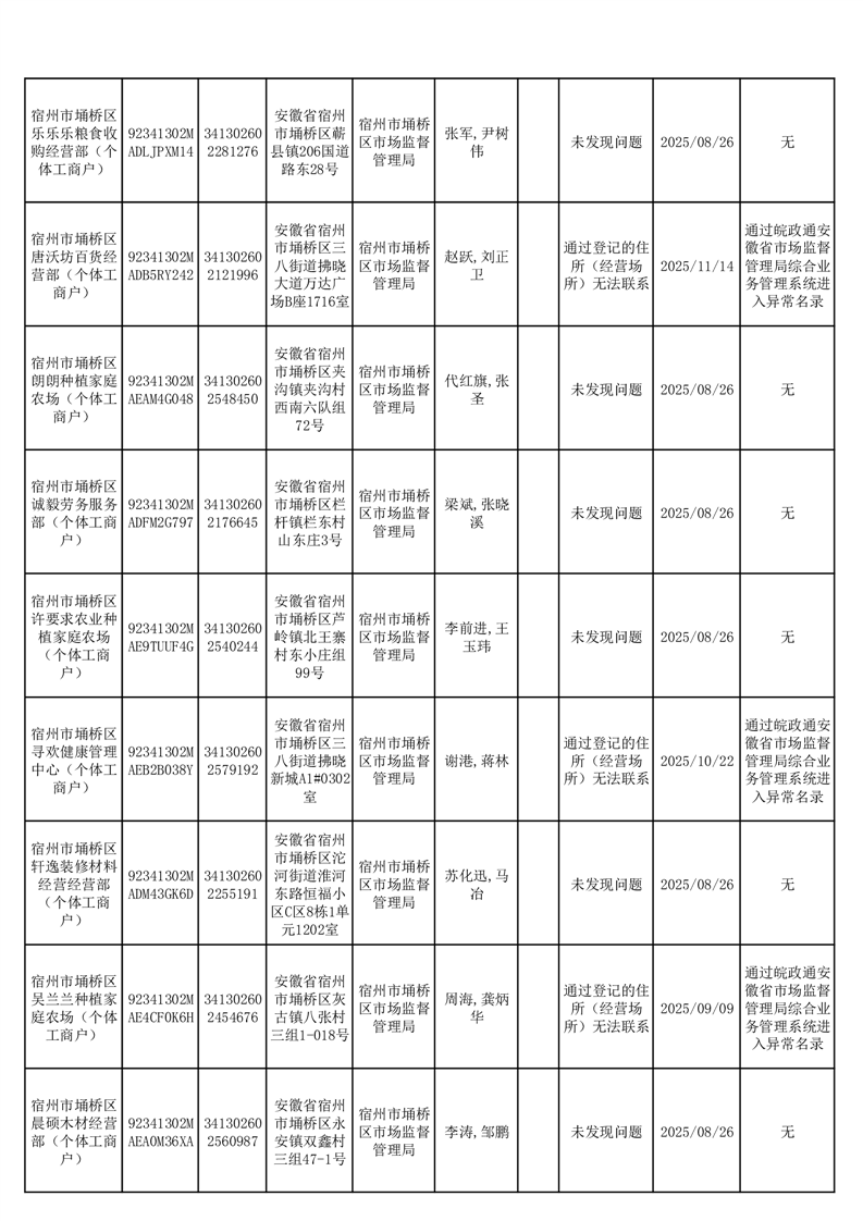 | 名称: | 宿州市埇桥区市场监督管理局2025年全区市场监督管理部门不定向(个体户)抽取计划(检查结果) | ||