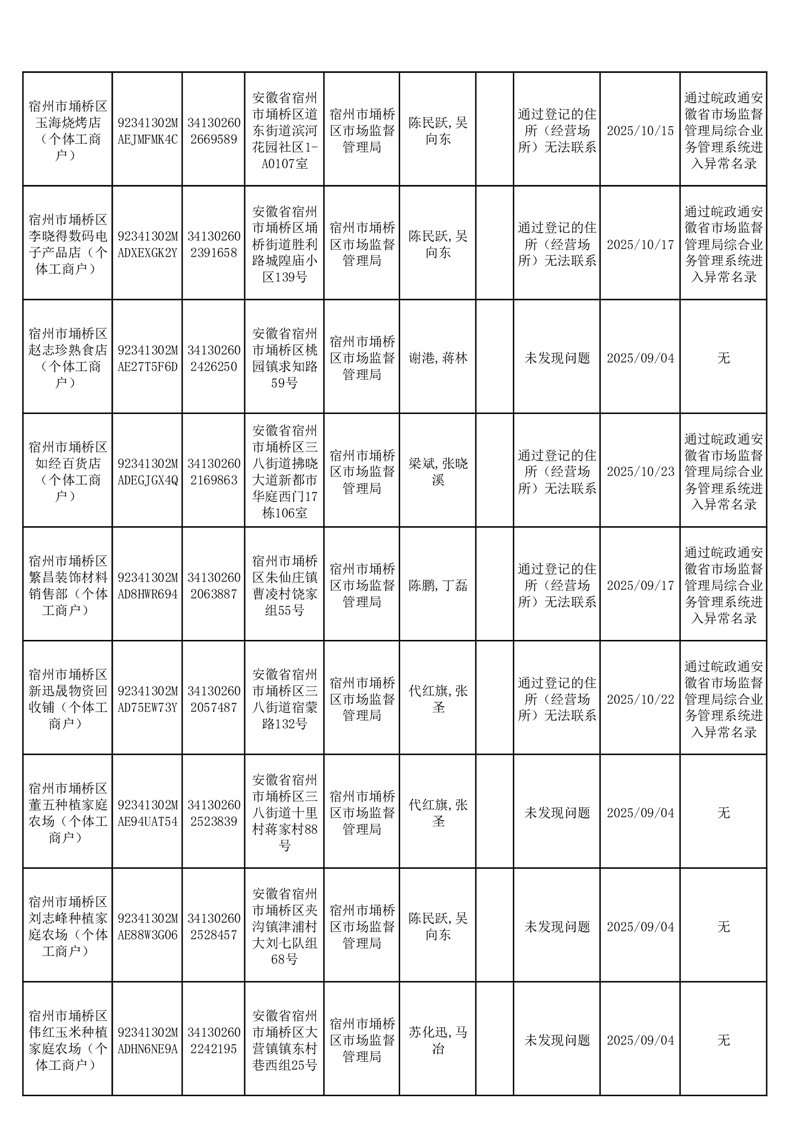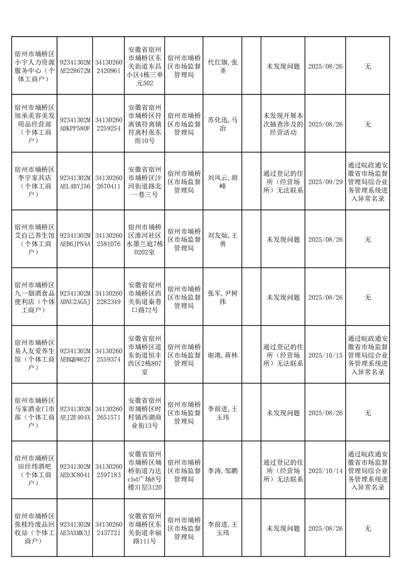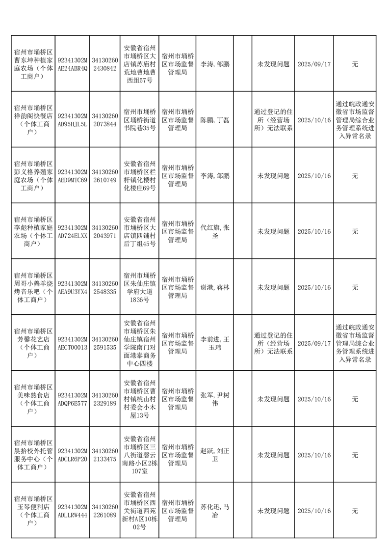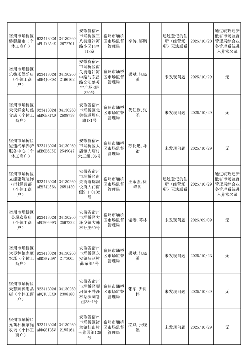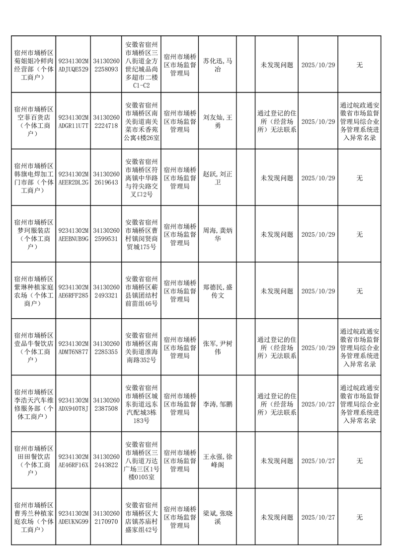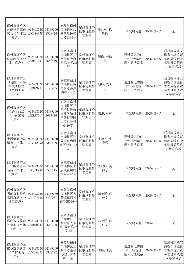 | 名称: | 宿州市埇桥区市场监督管理局2025年全区市场监督管理部门不定向(个体户)抽取计划(检查结果) | ||