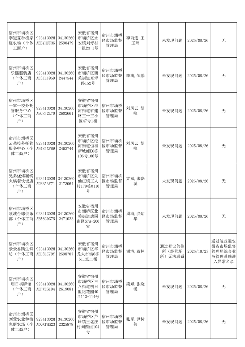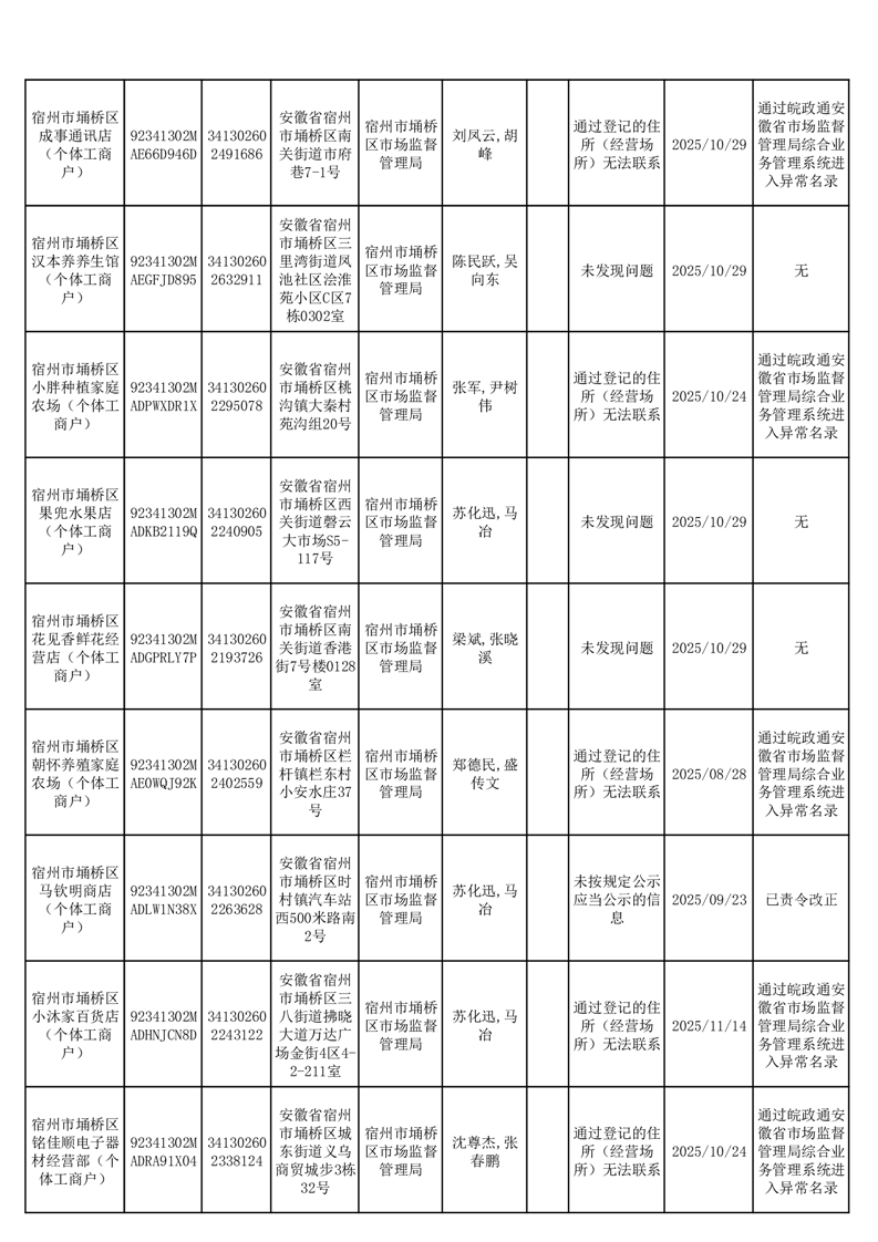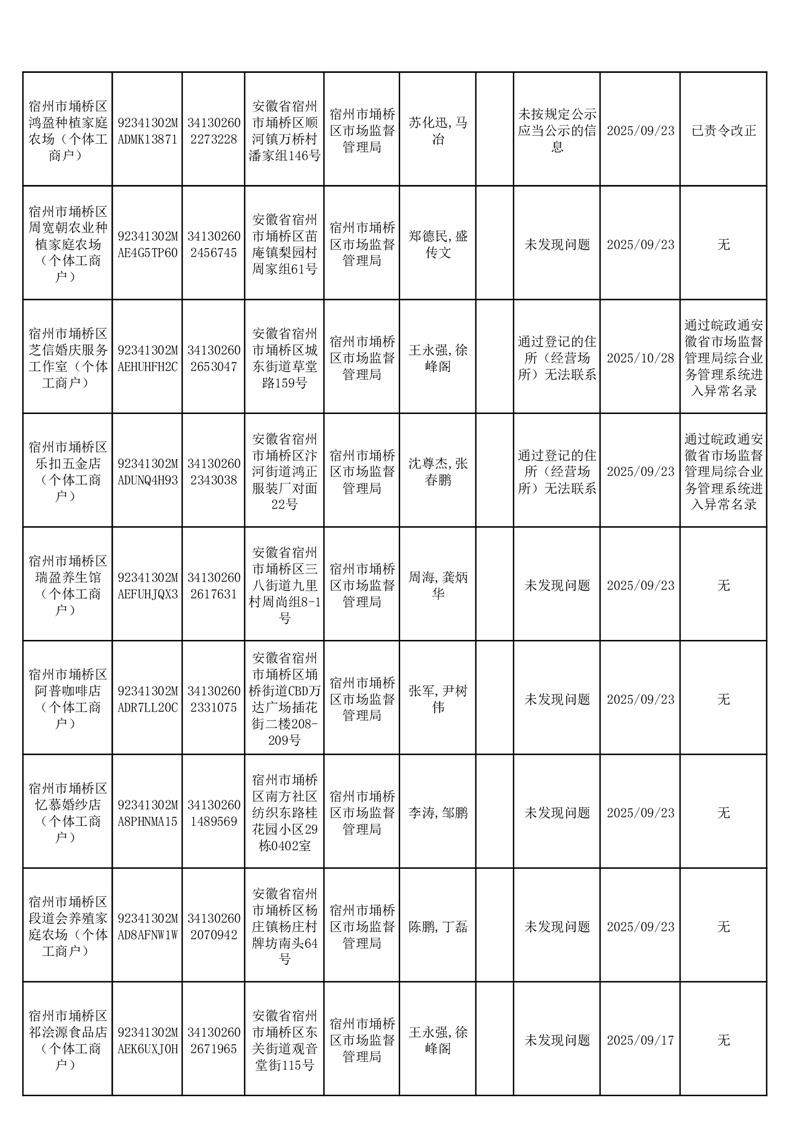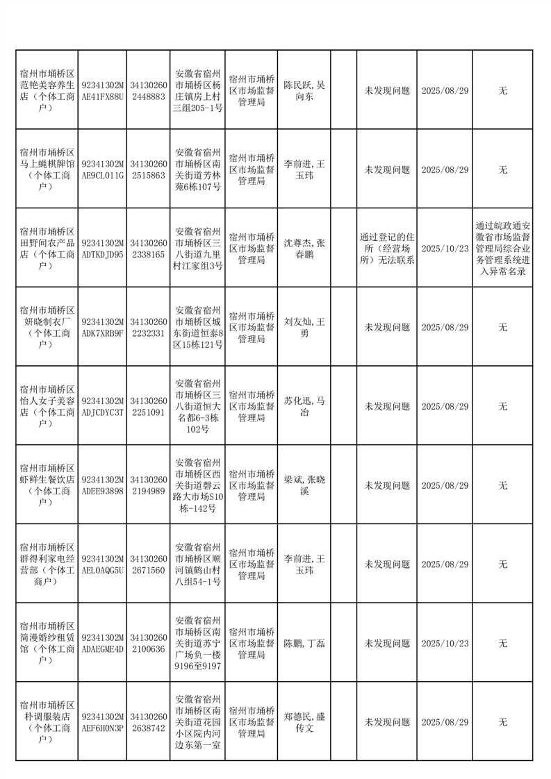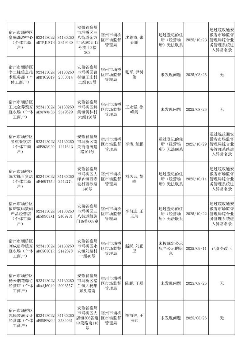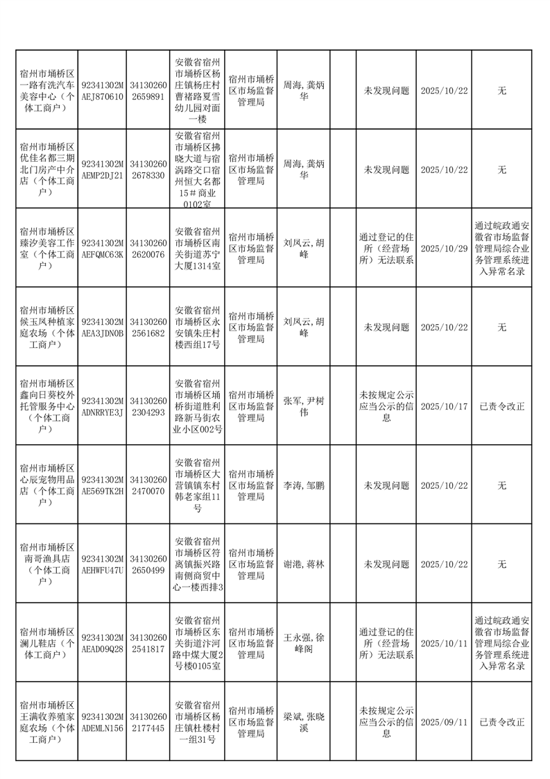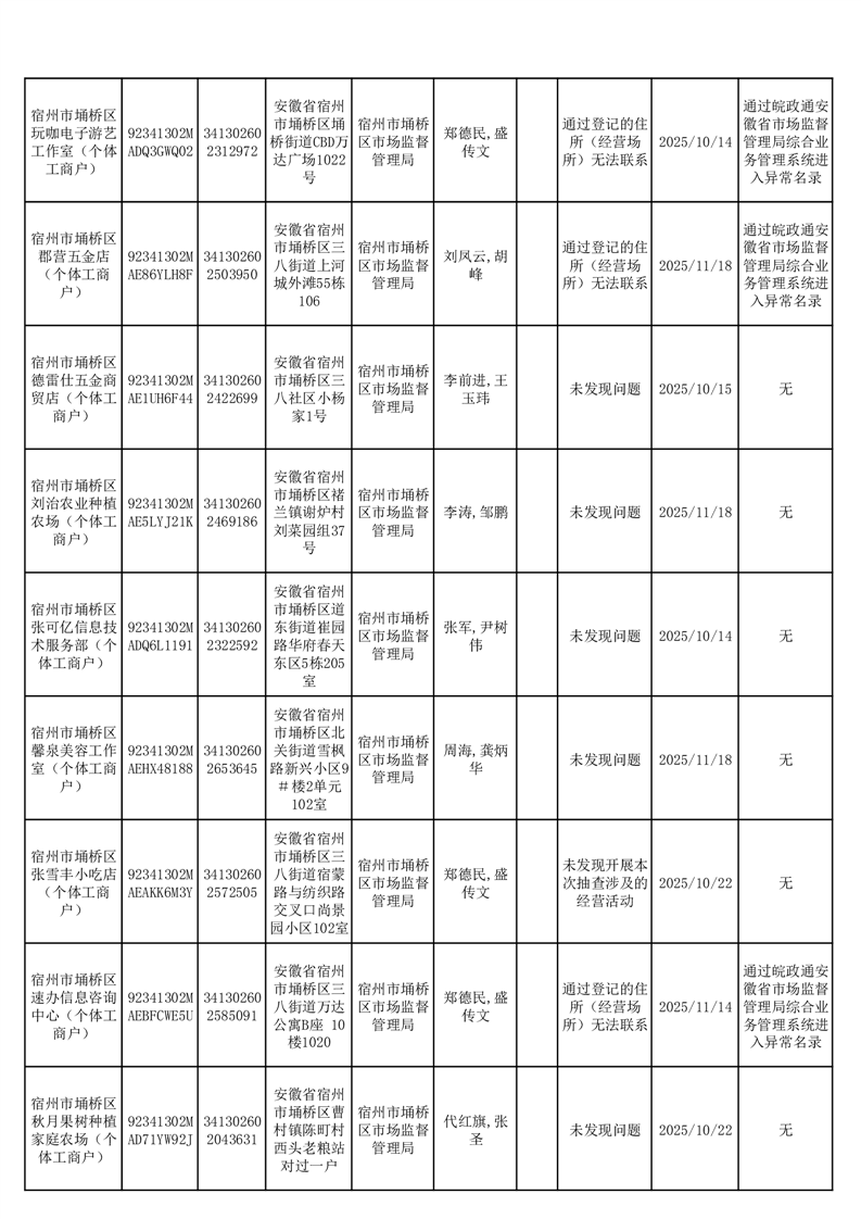 | 名称: | 宿州市埇桥区市场监督管理局2025年全区市场监督管理部门不定向(个体户)抽取计划(检查结果) | ||