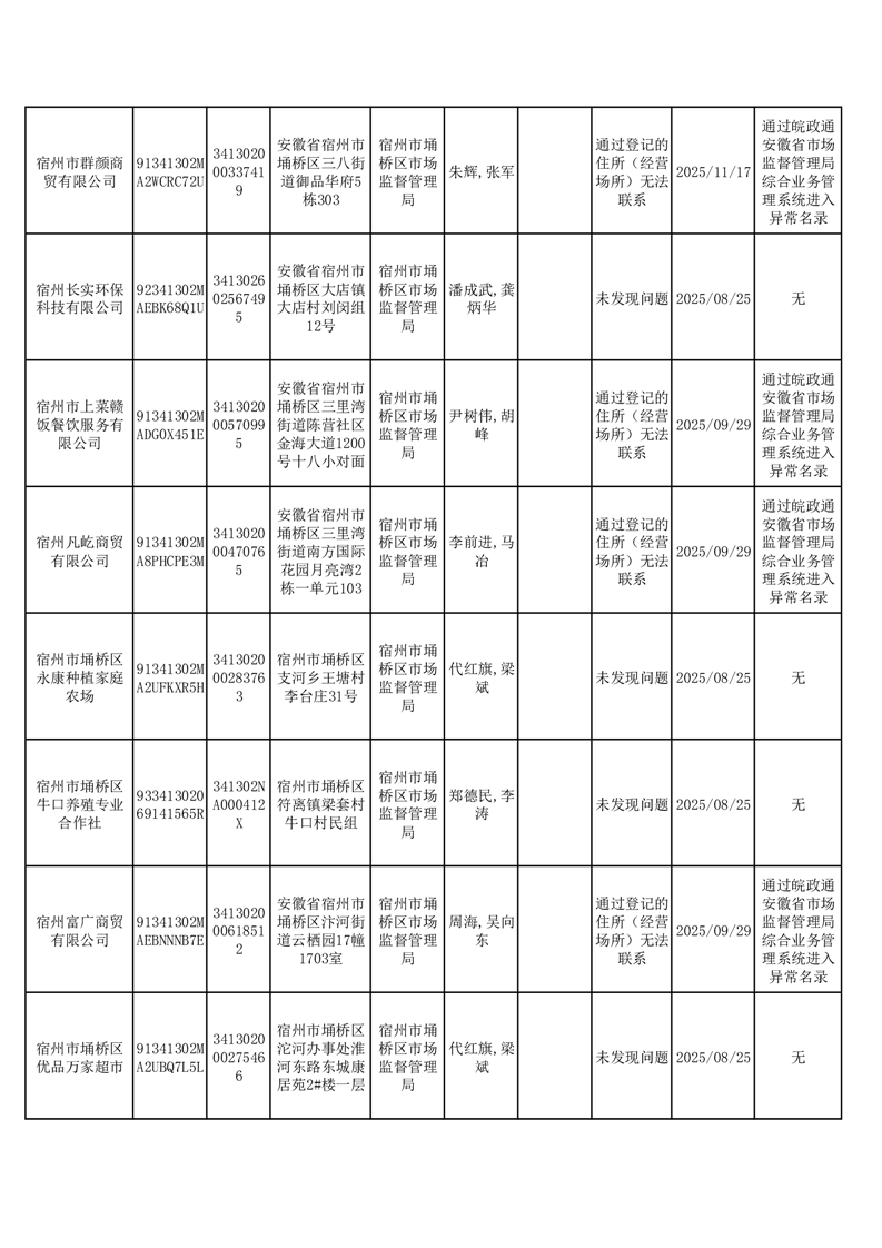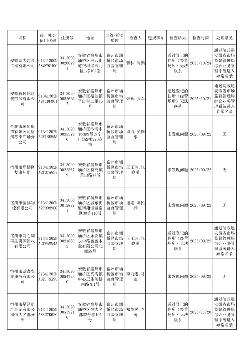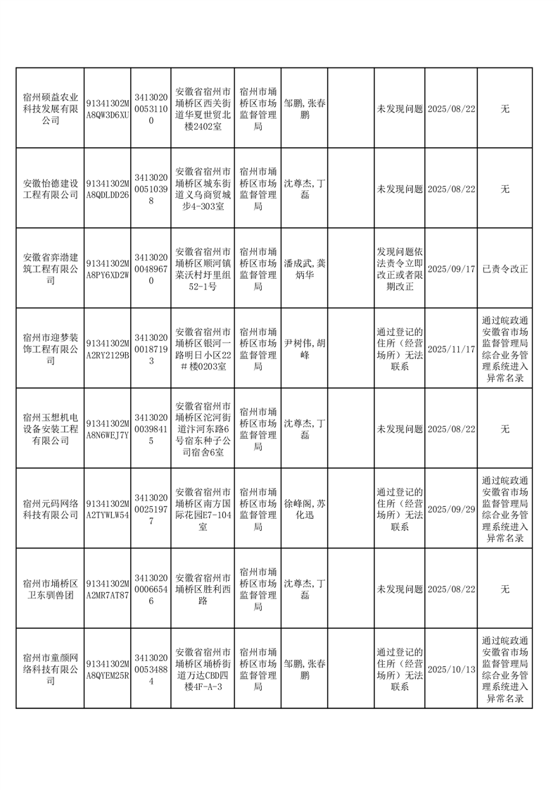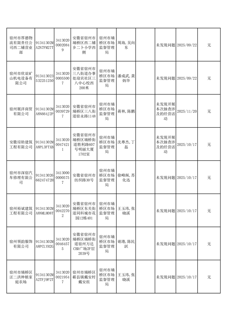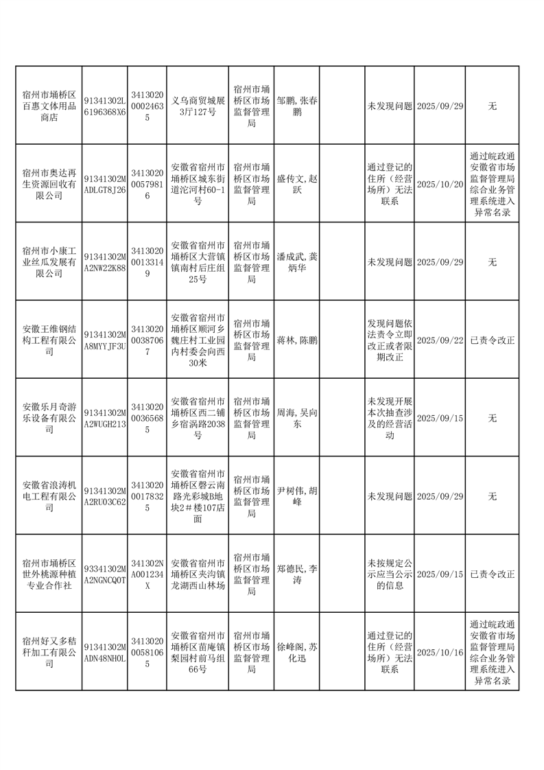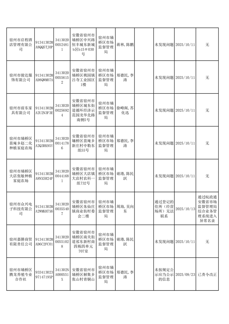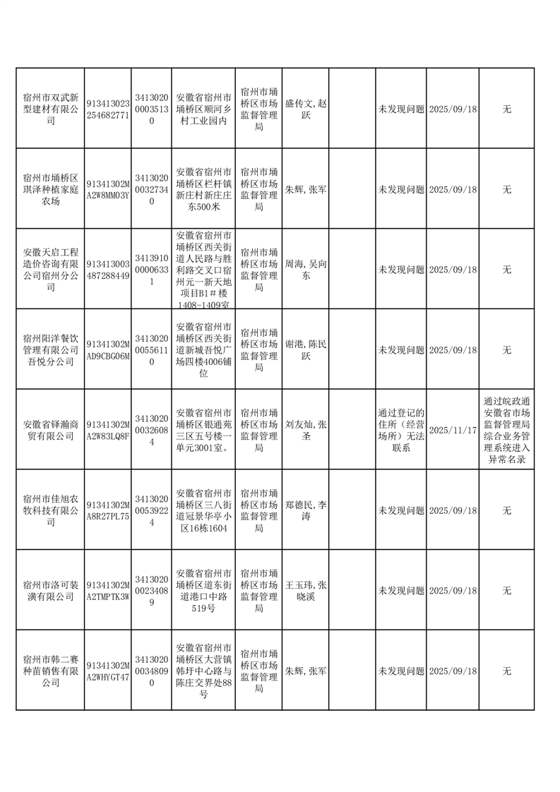 | 名称: | 宿州市埇桥区市场监督管理局2025年全区市场监督管理部门不定向企业抽取计划(检查结果) | ||
