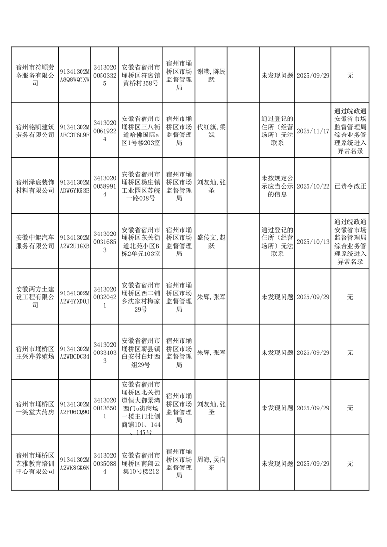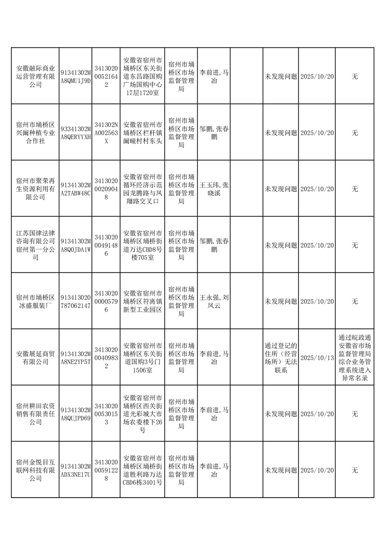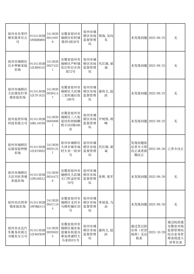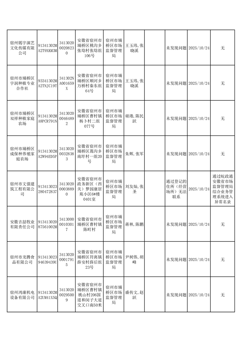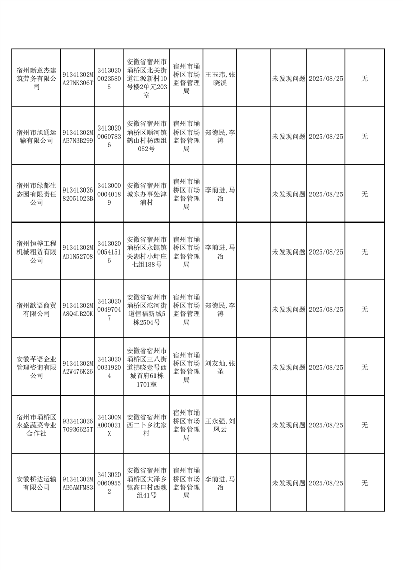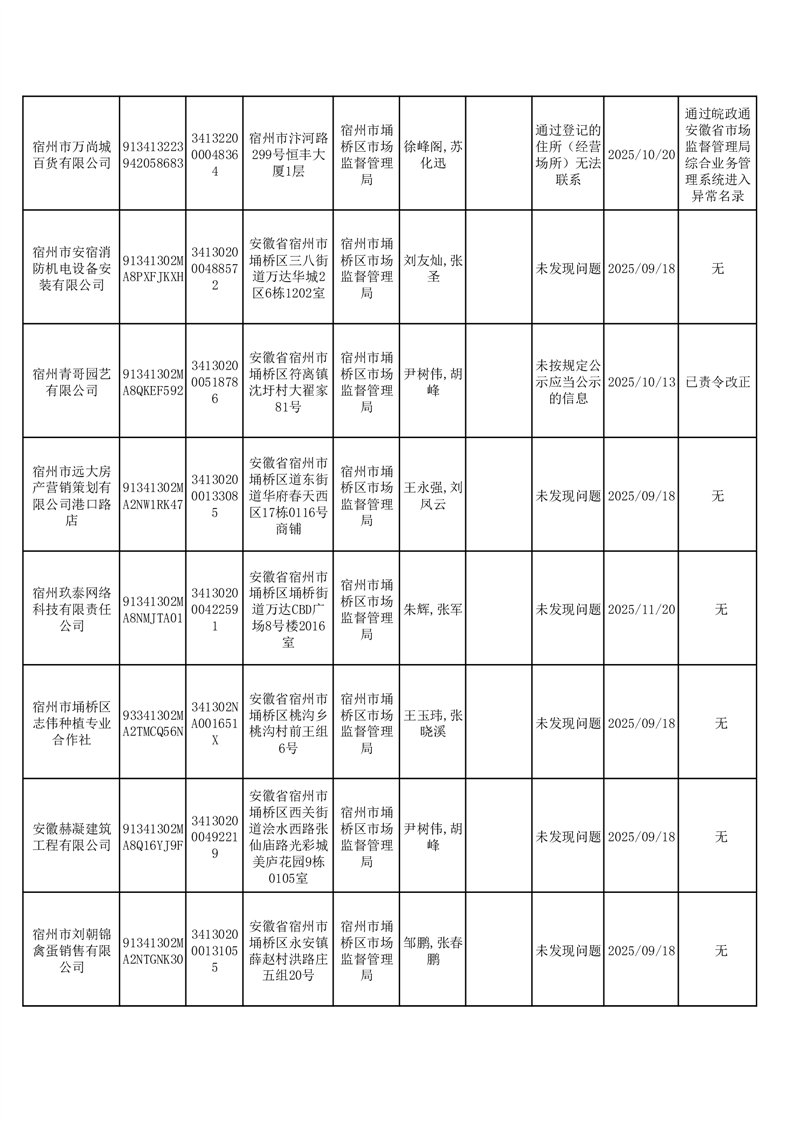 | 名称: | 宿州市埇桥区市场监督管理局2025年全区市场监督管理部门不定向企业抽取计划(检查结果) | ||