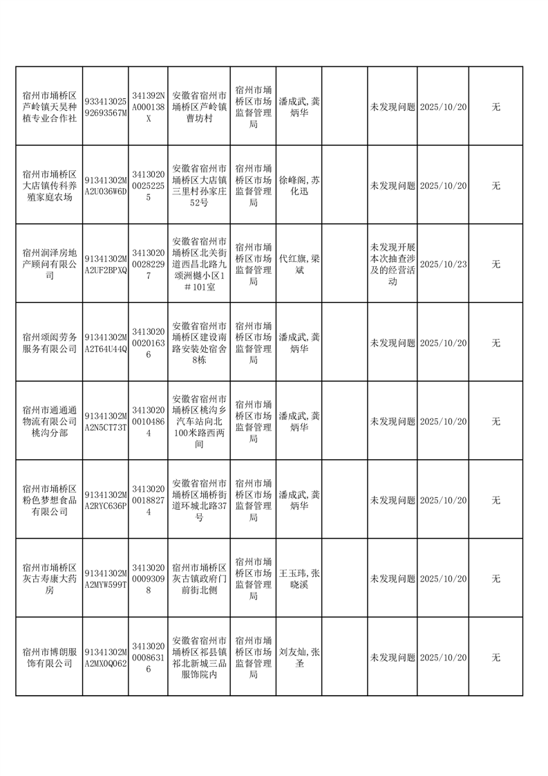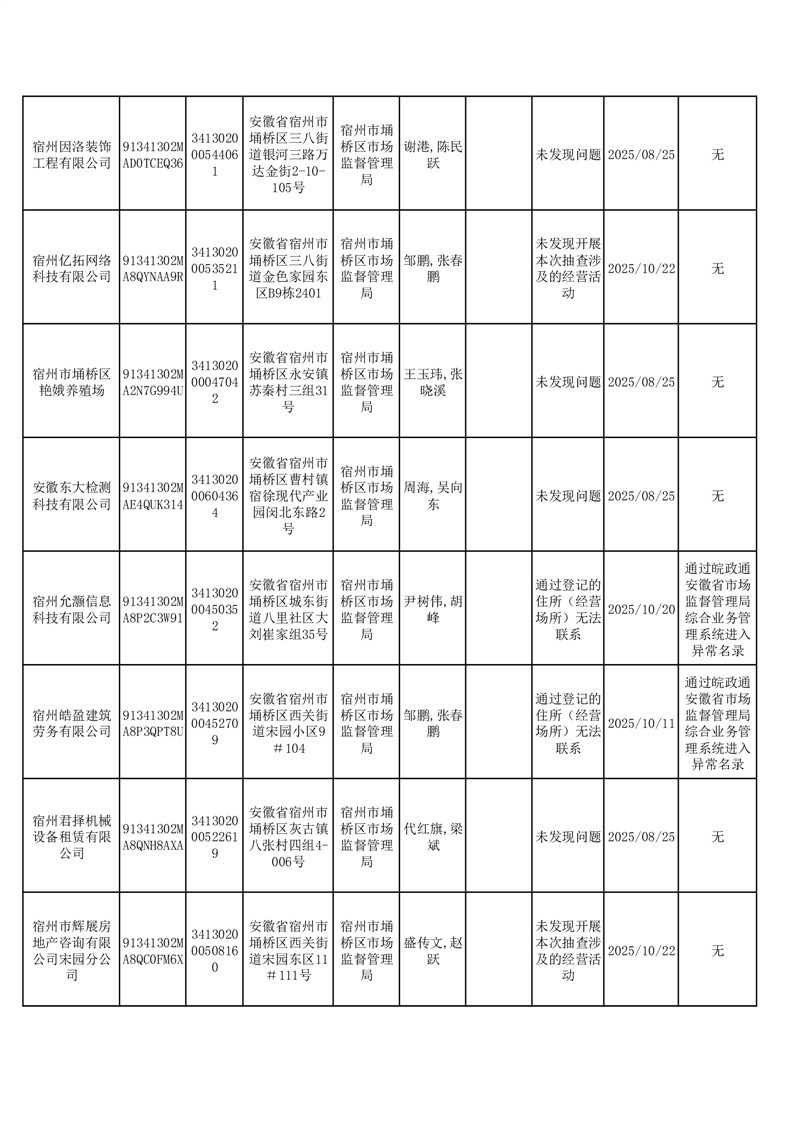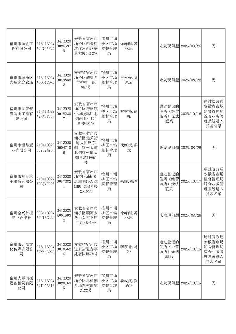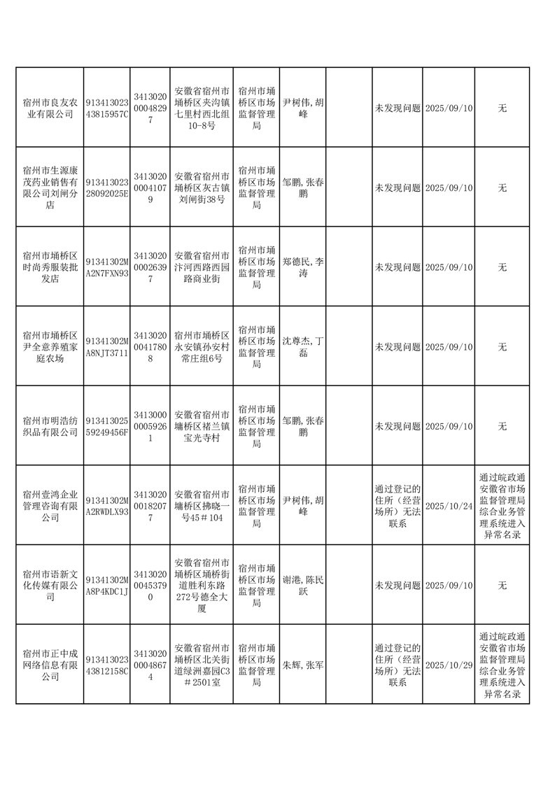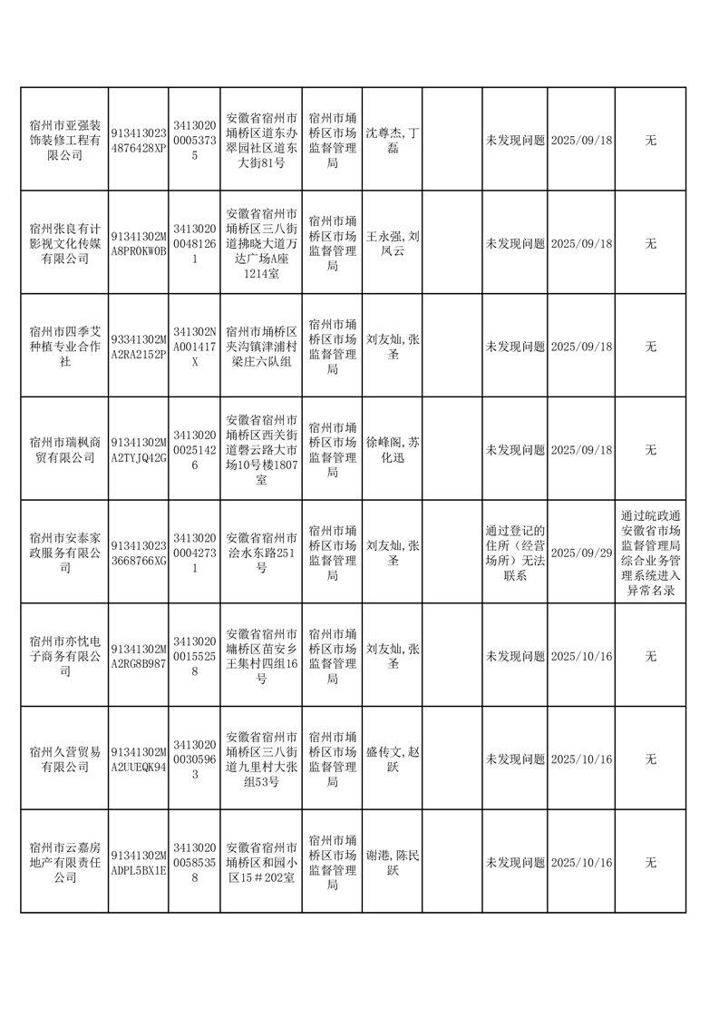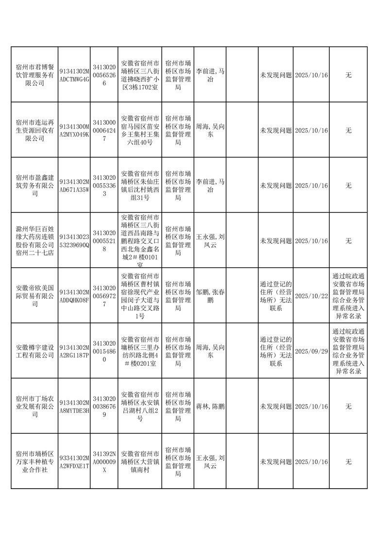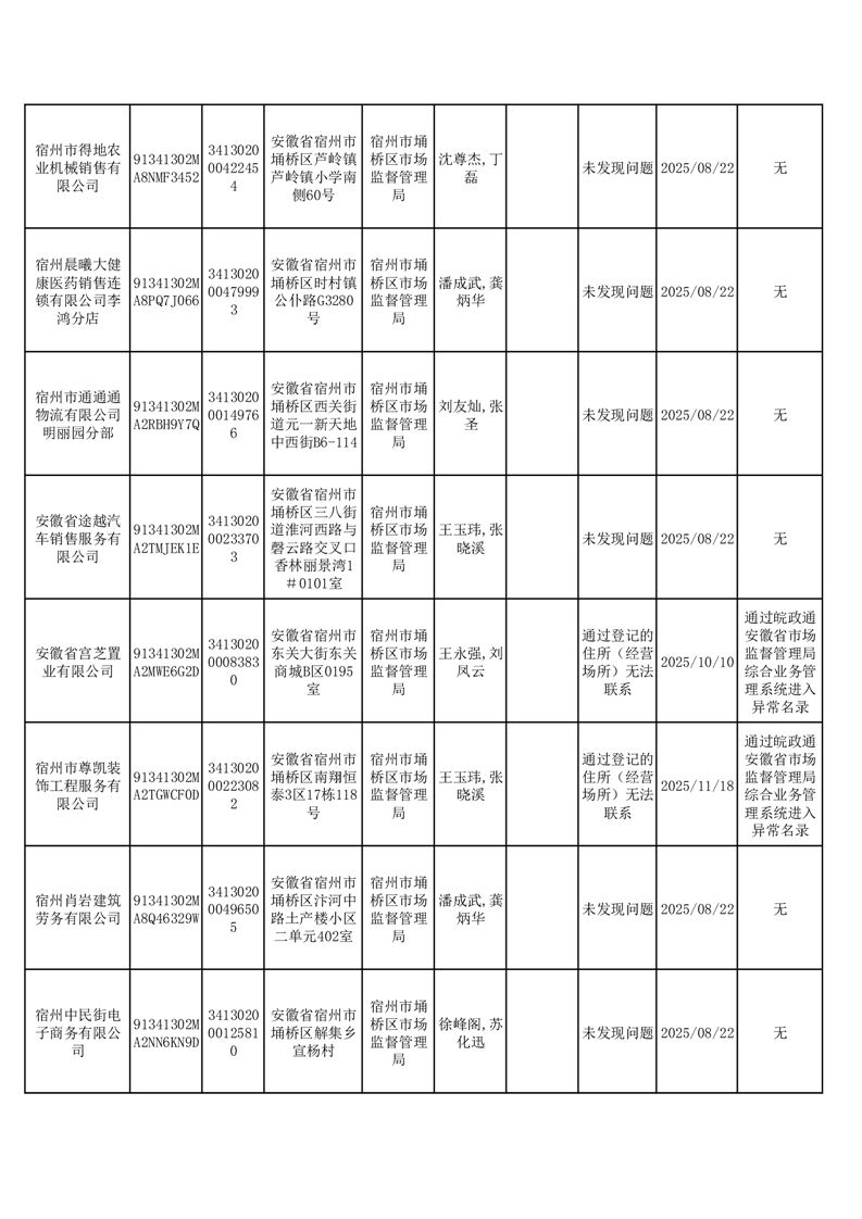 | 名称: | 宿州市埇桥区市场监督管理局2025年全区市场监督管理部门不定向企业抽取计划(检查结果) | ||