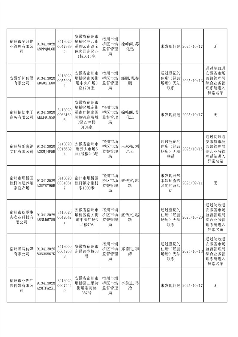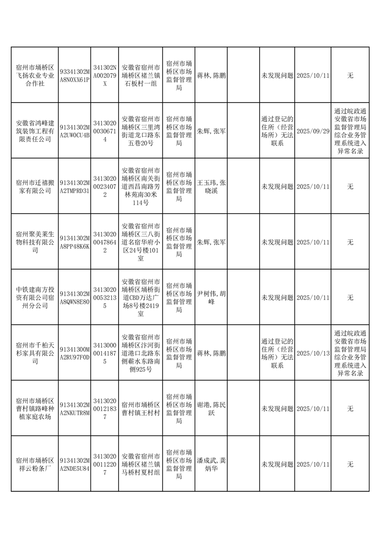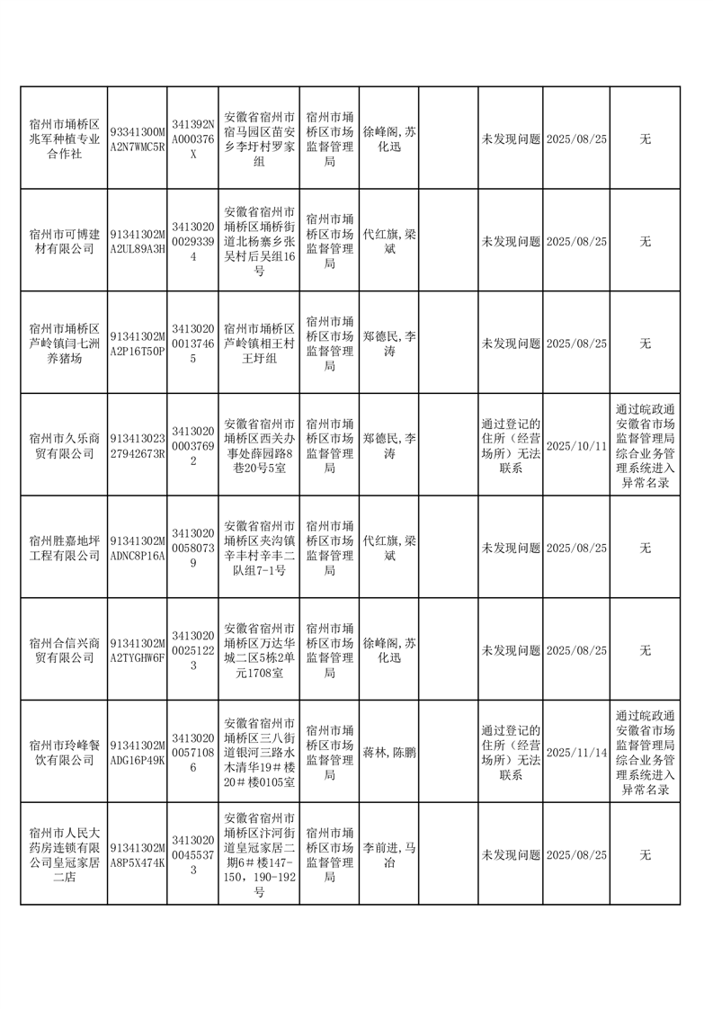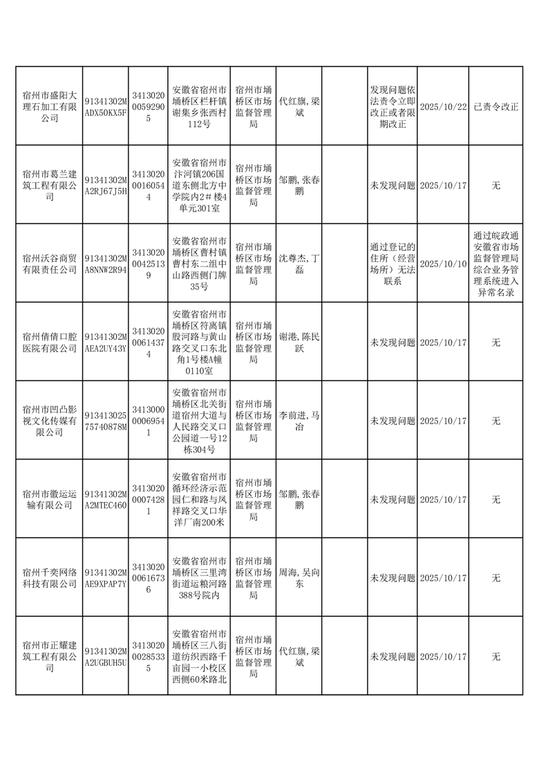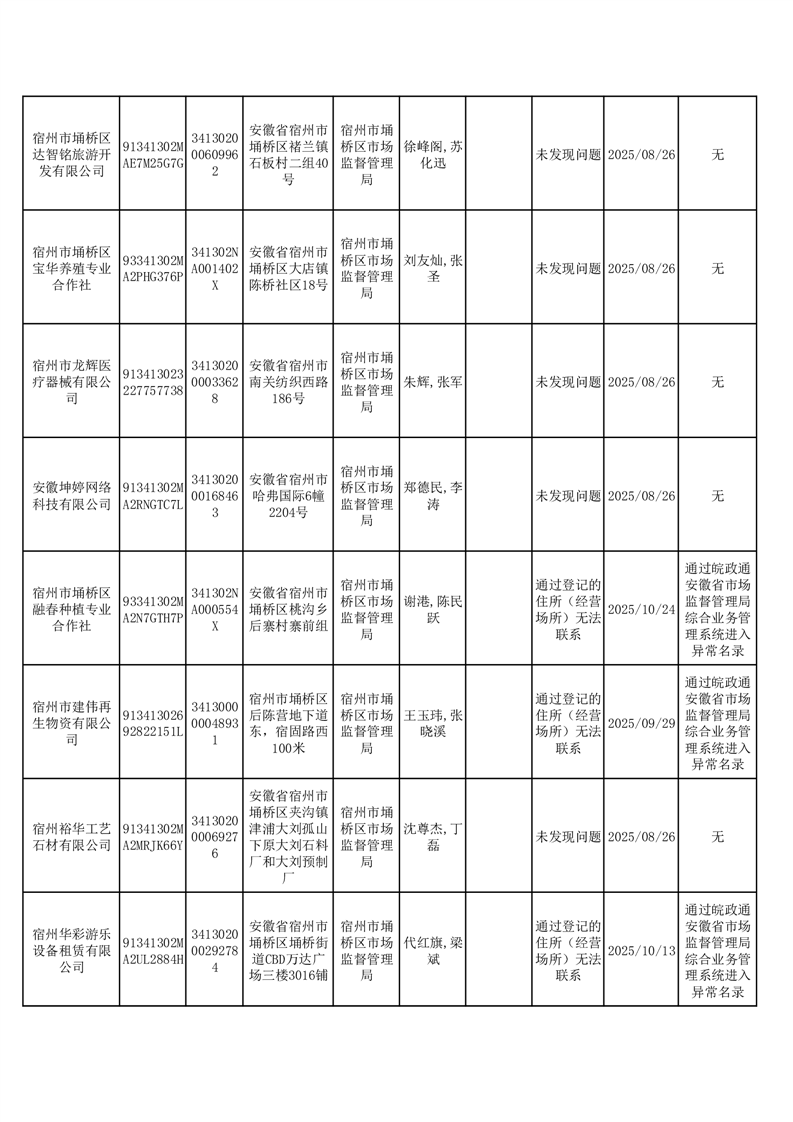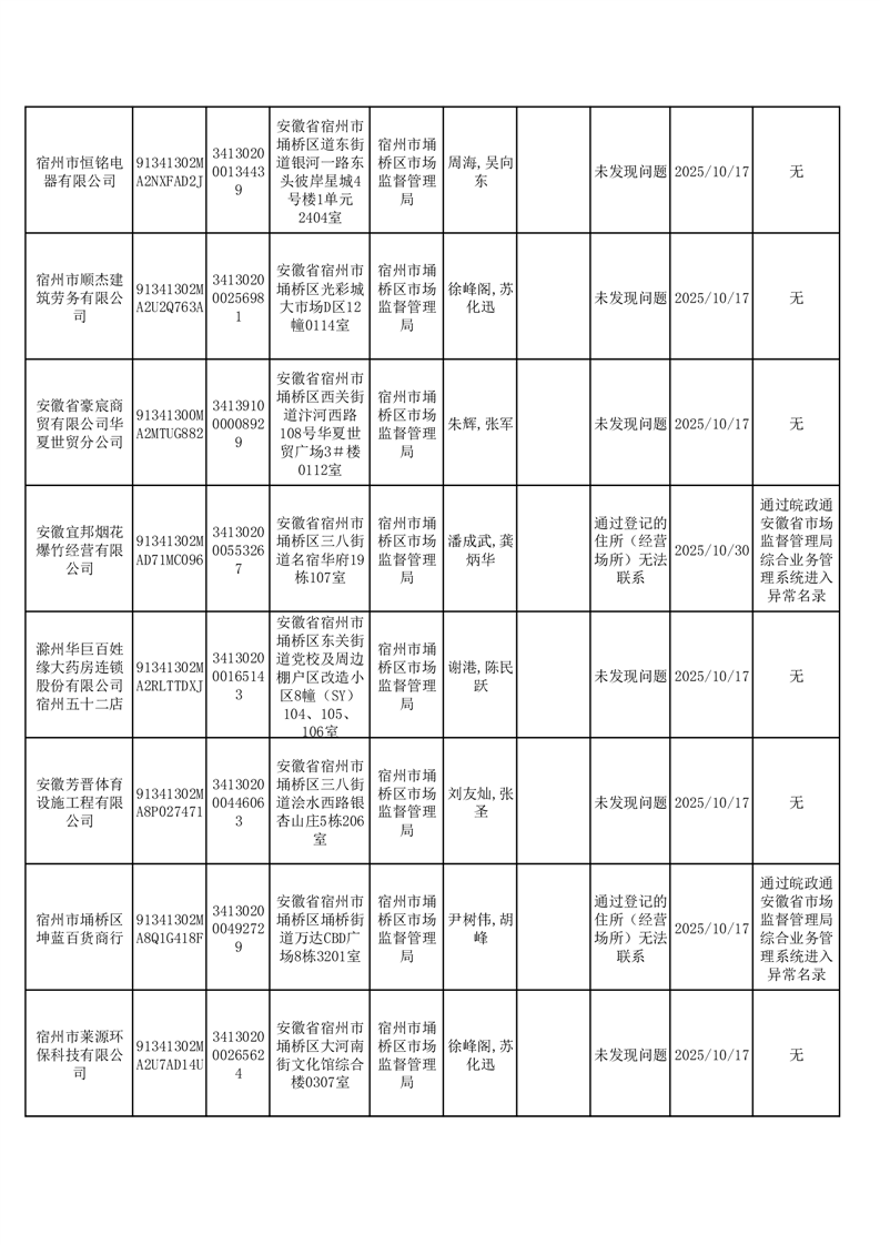 | 名称: | 宿州市埇桥区市场监督管理局2025年全区市场监督管理部门不定向企业抽取计划(检查结果) | ||
