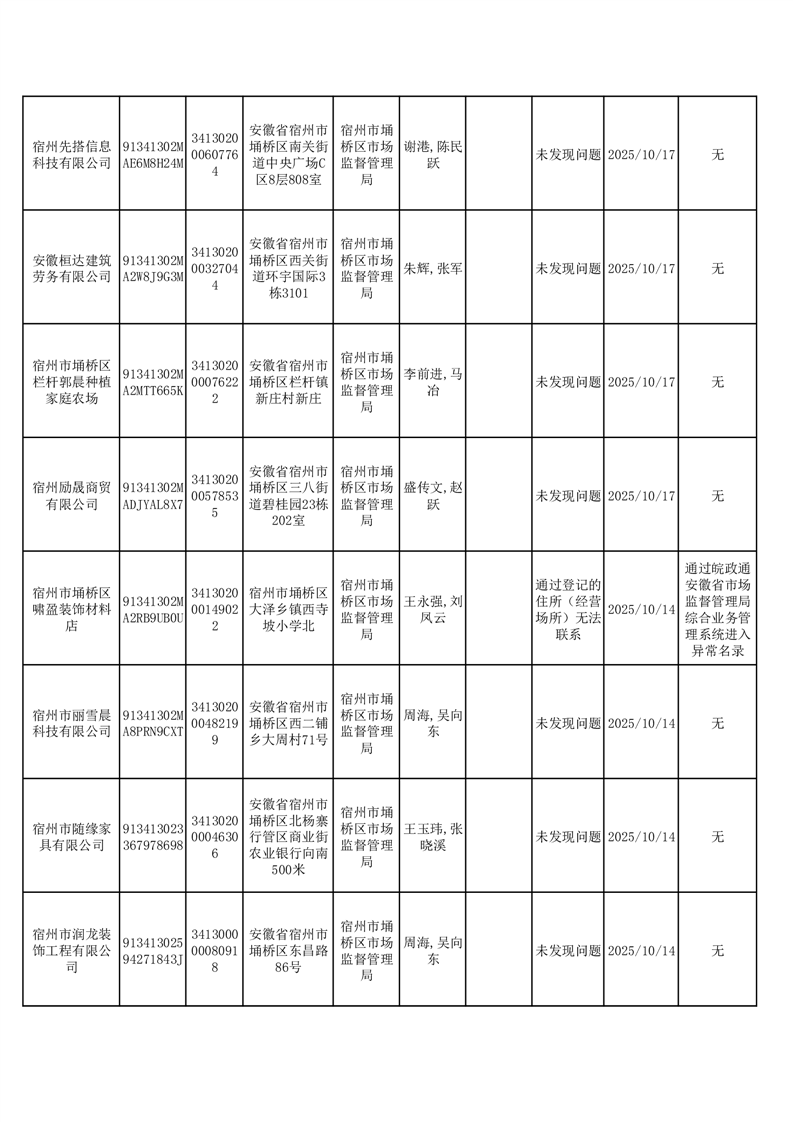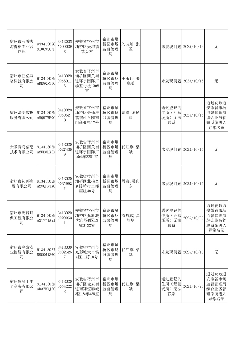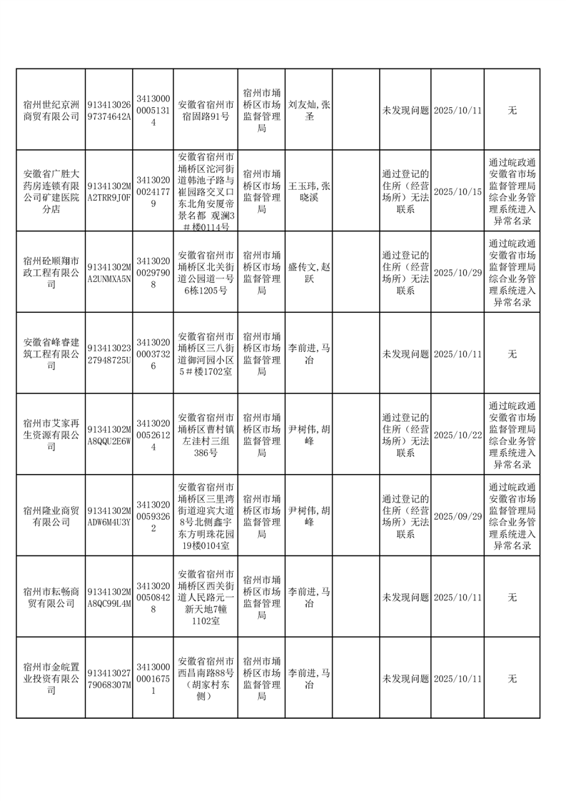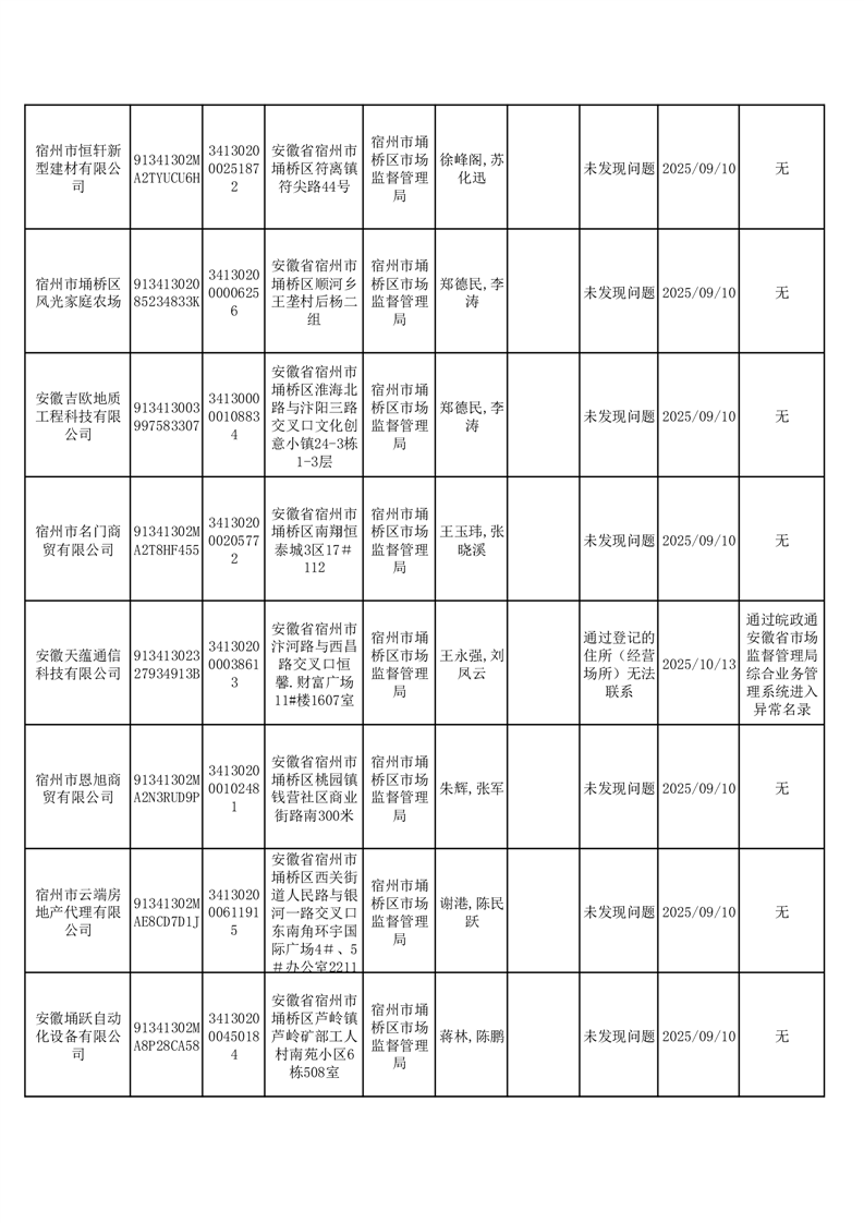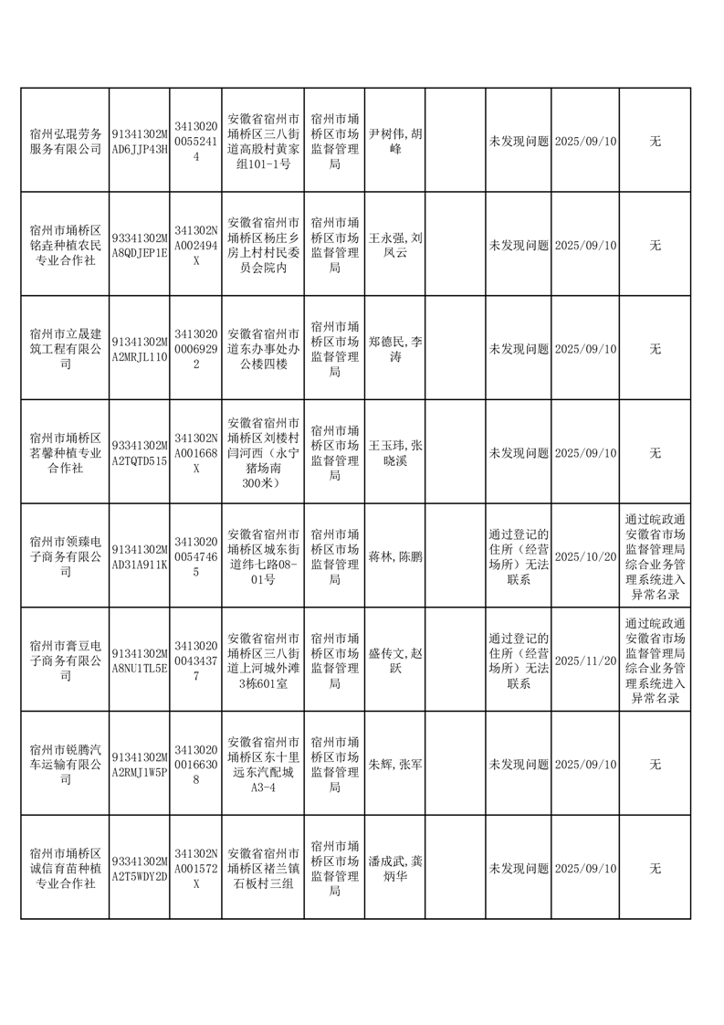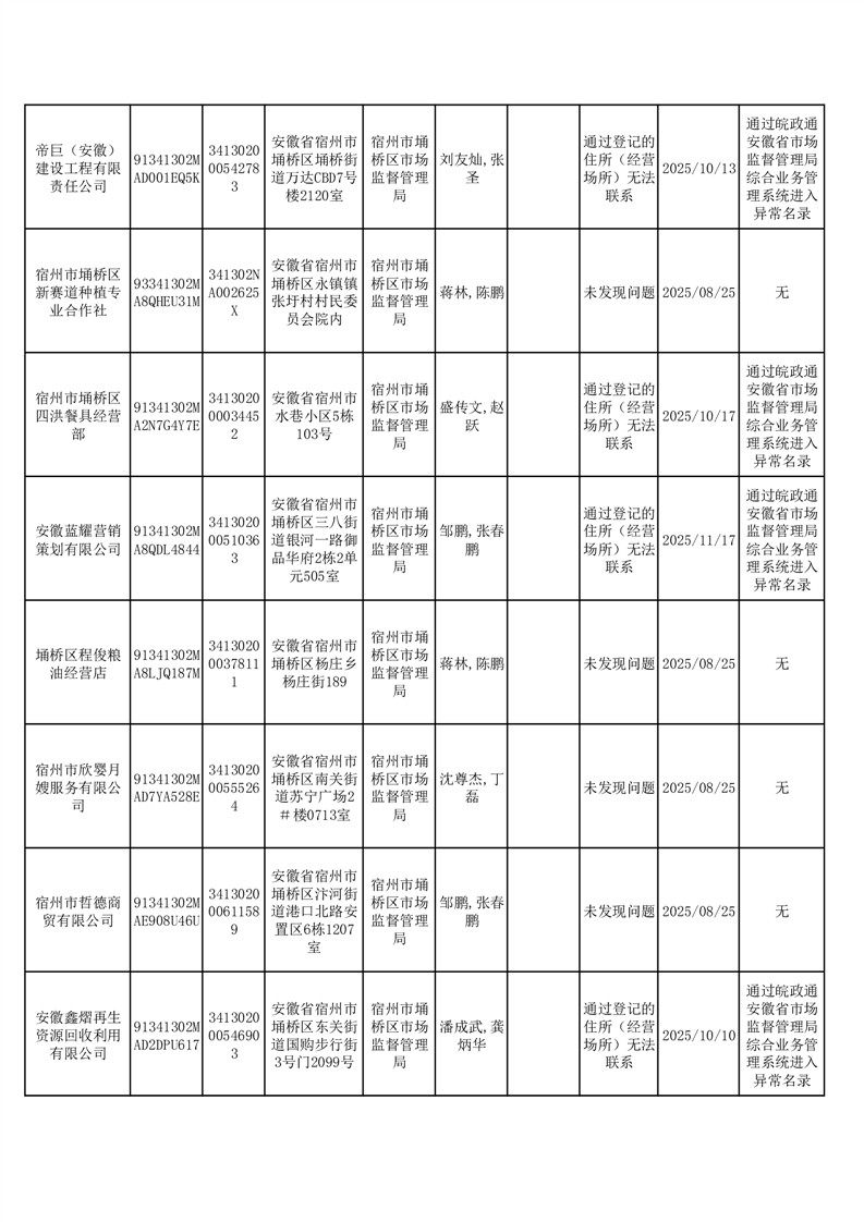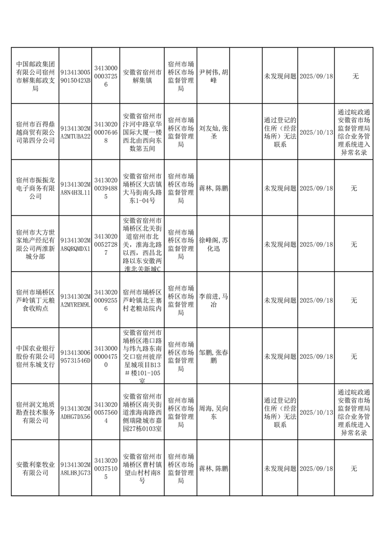 | 名称: | 宿州市埇桥区市场监督管理局2025年全区市场监督管理部门不定向企业抽取计划(检查结果) | ||