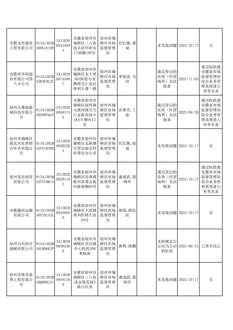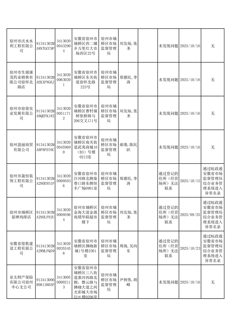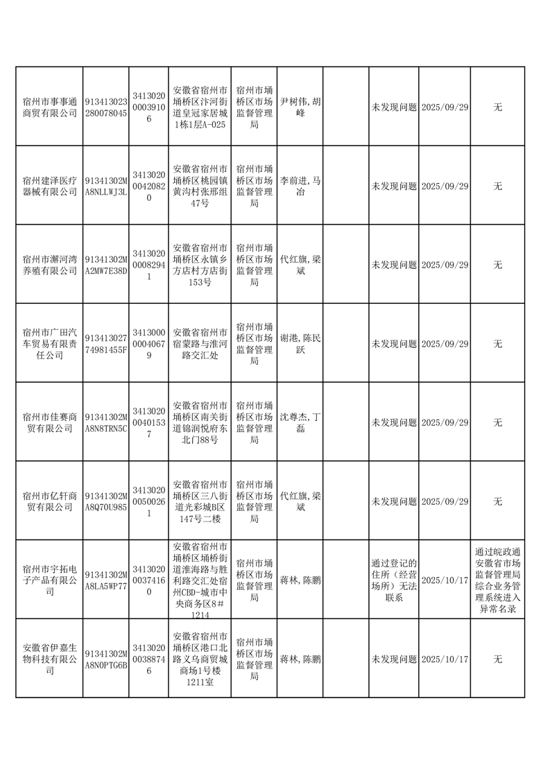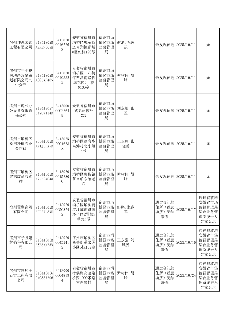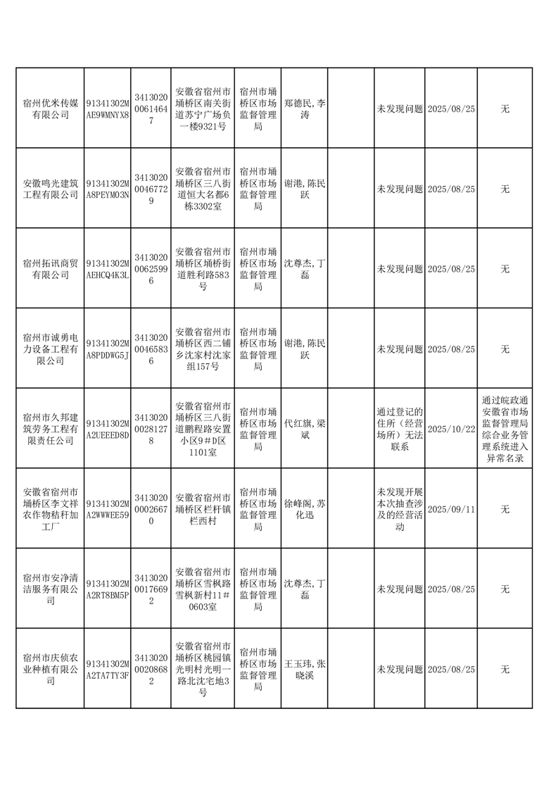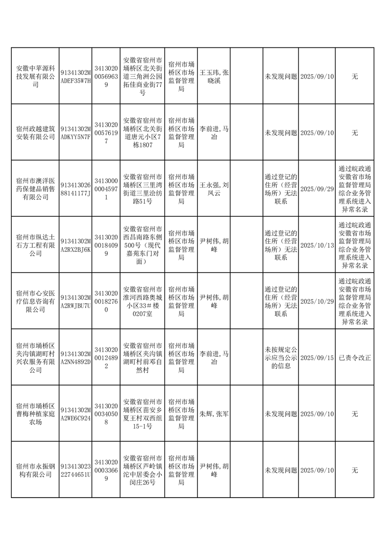 | 名称: | 宿州市埇桥区市场监督管理局2025年全区市场监督管理部门不定向企业抽取计划(检查结果) | ||