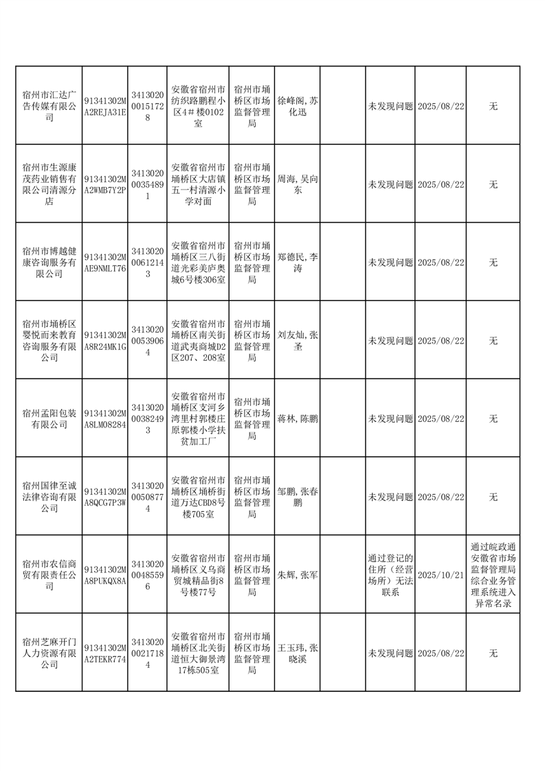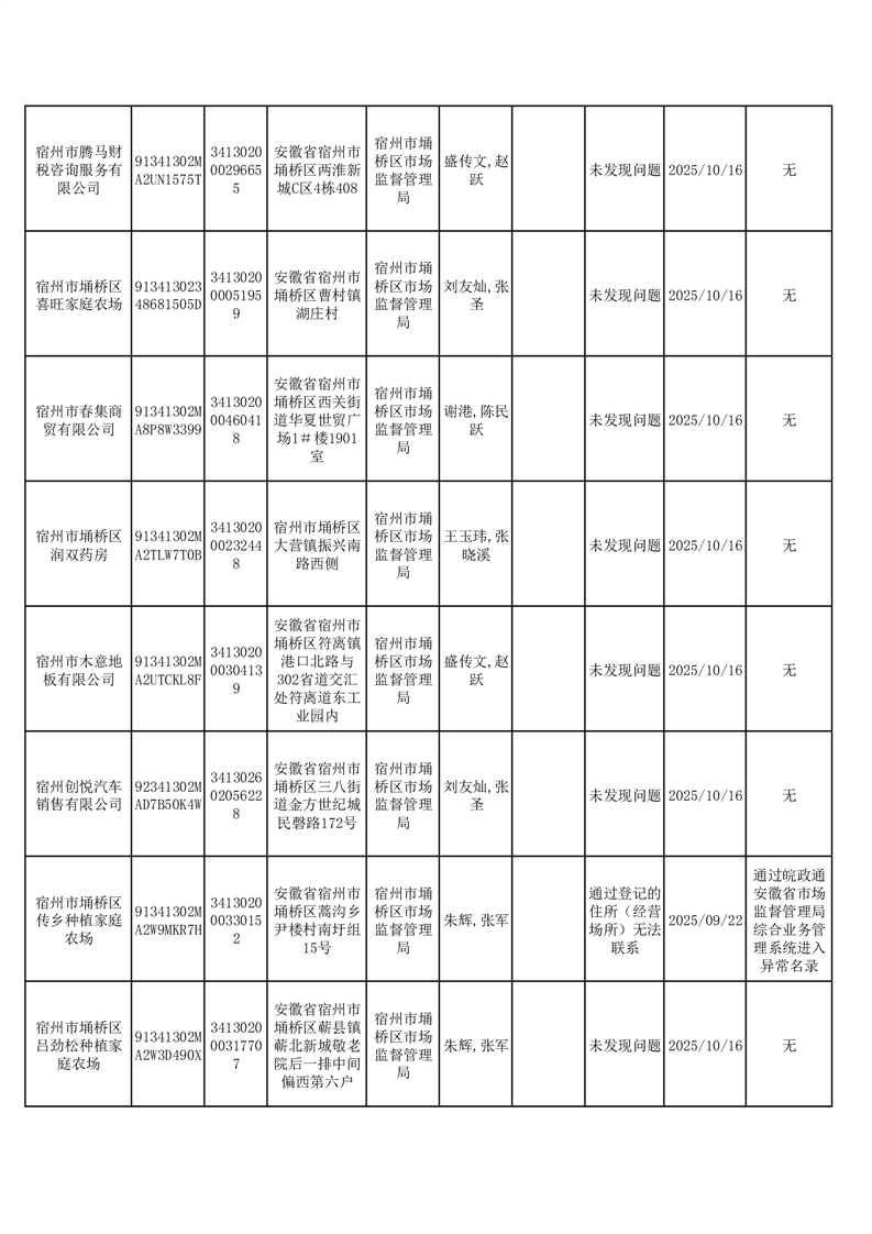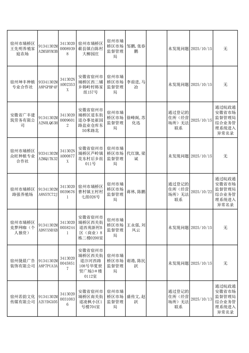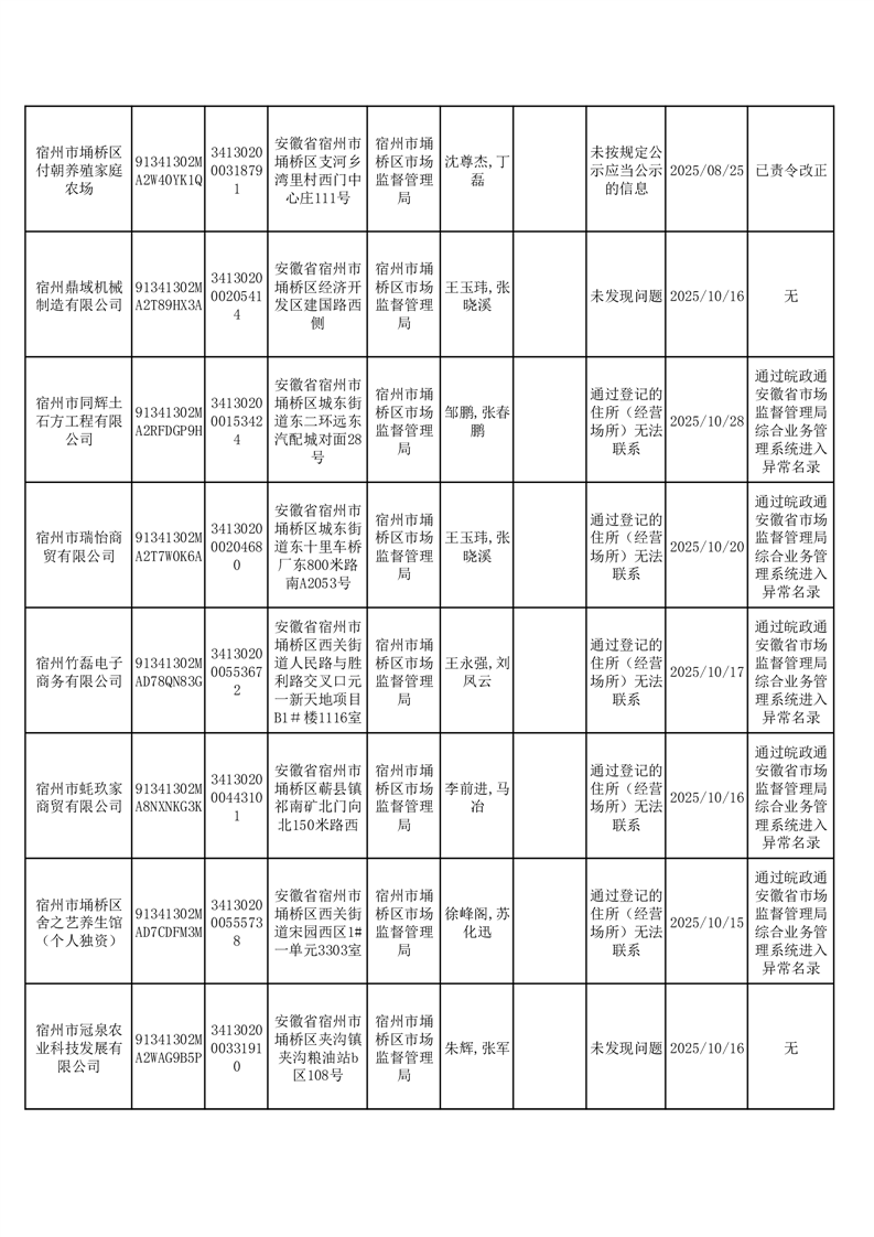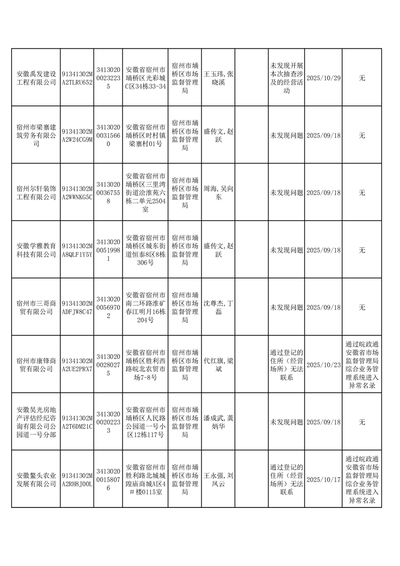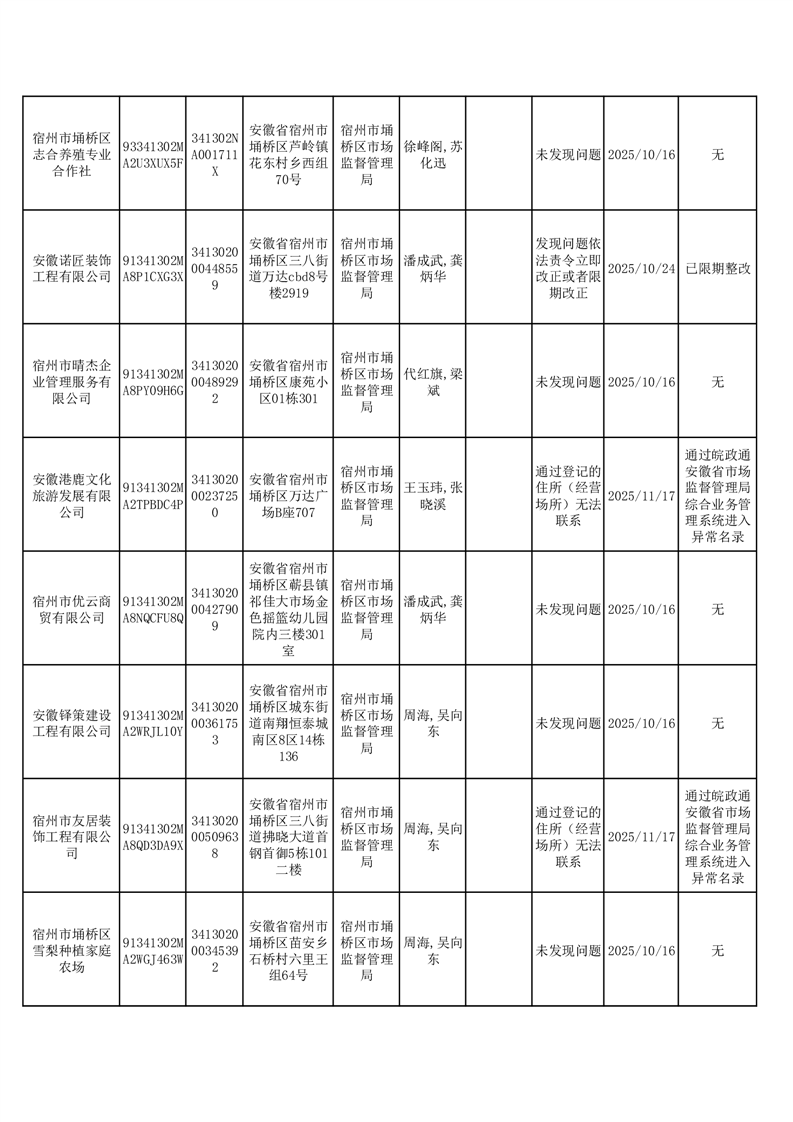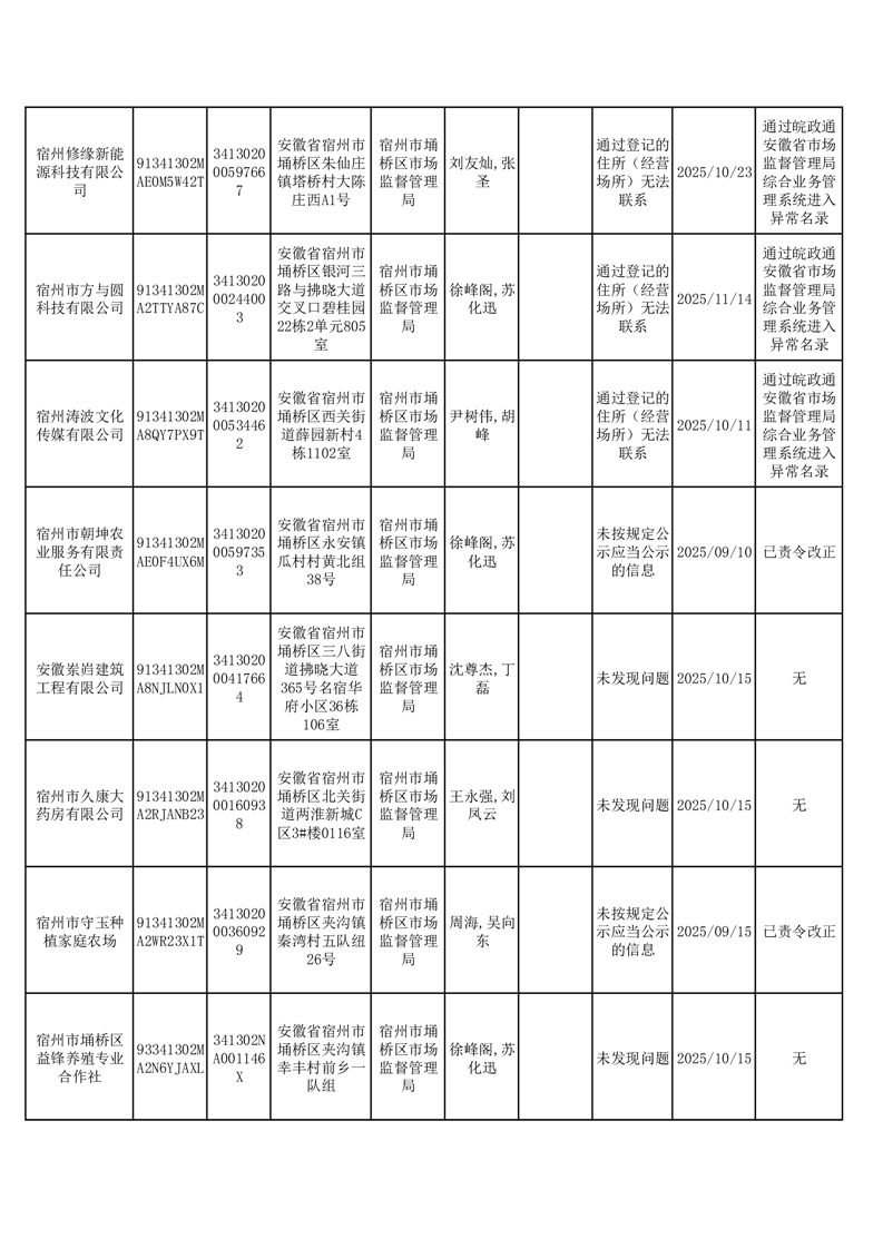 | 名称: | 宿州市埇桥区市场监督管理局2025年全区市场监督管理部门不定向企业抽取计划(检查结果) | ||