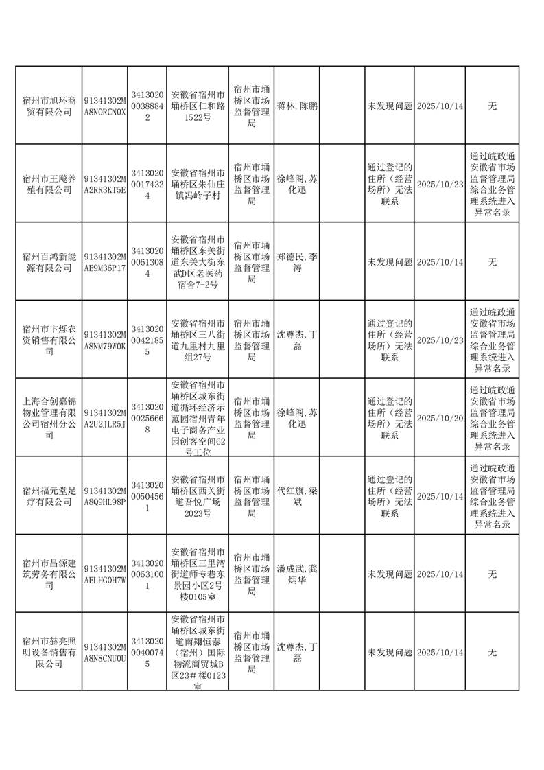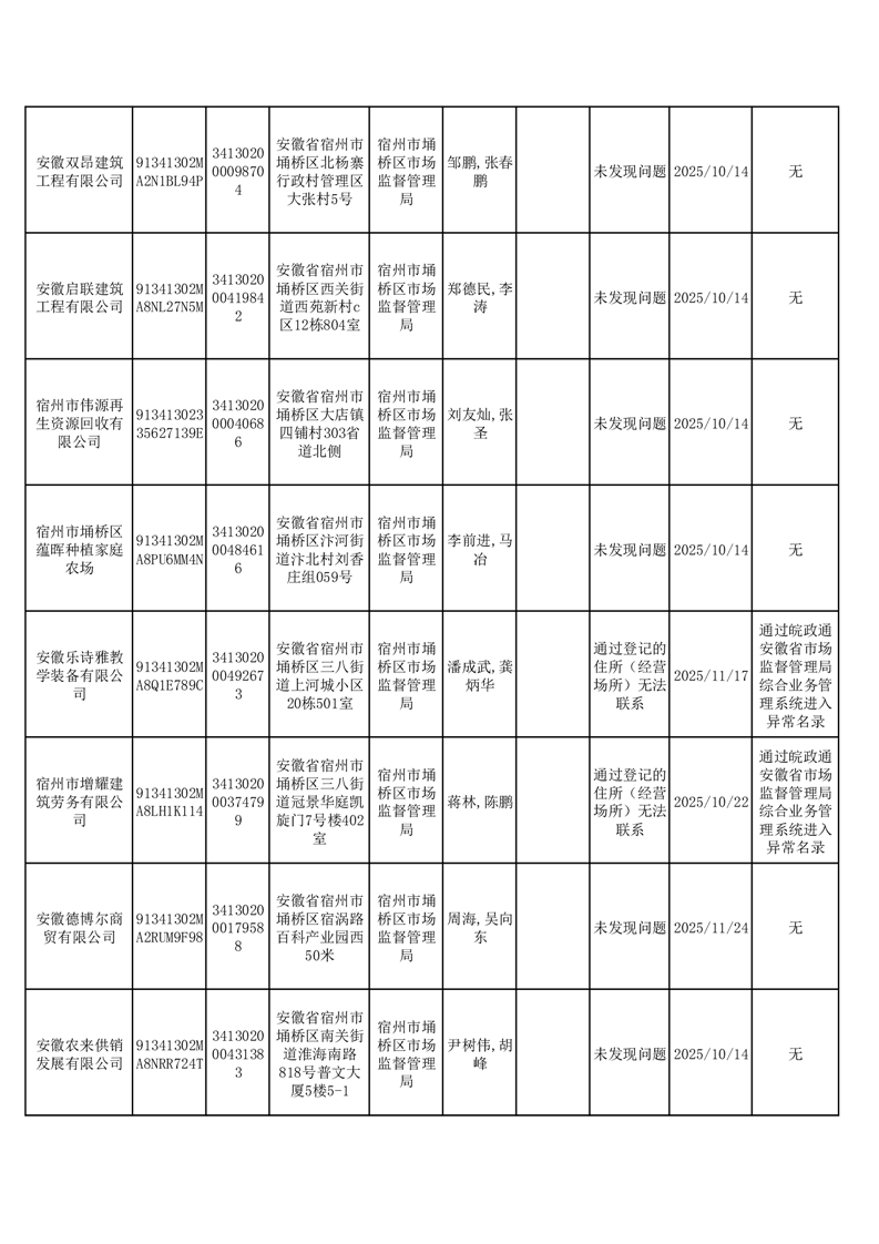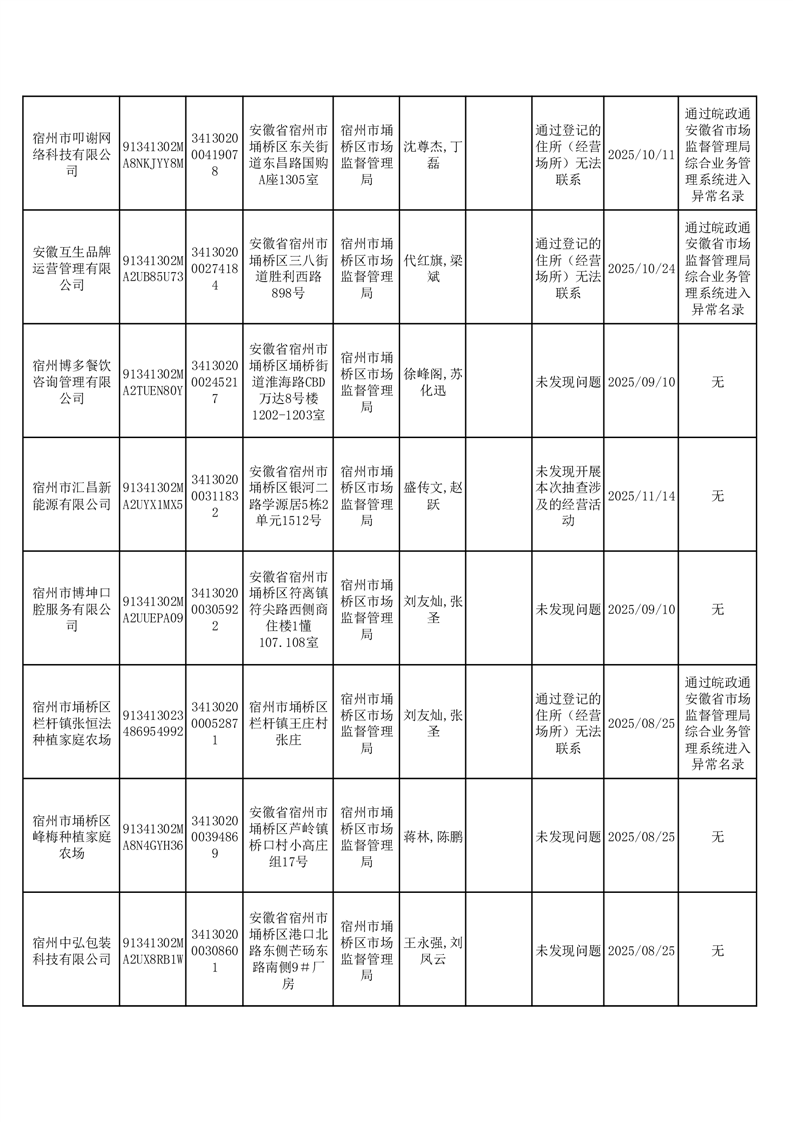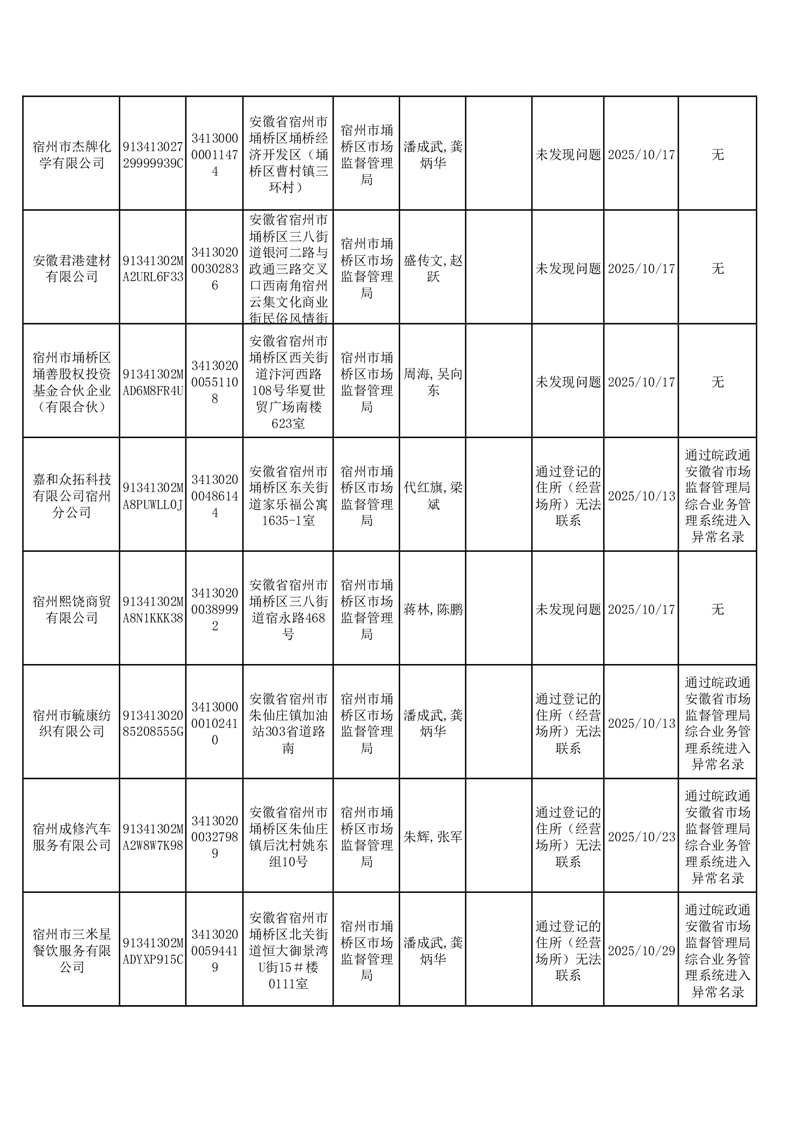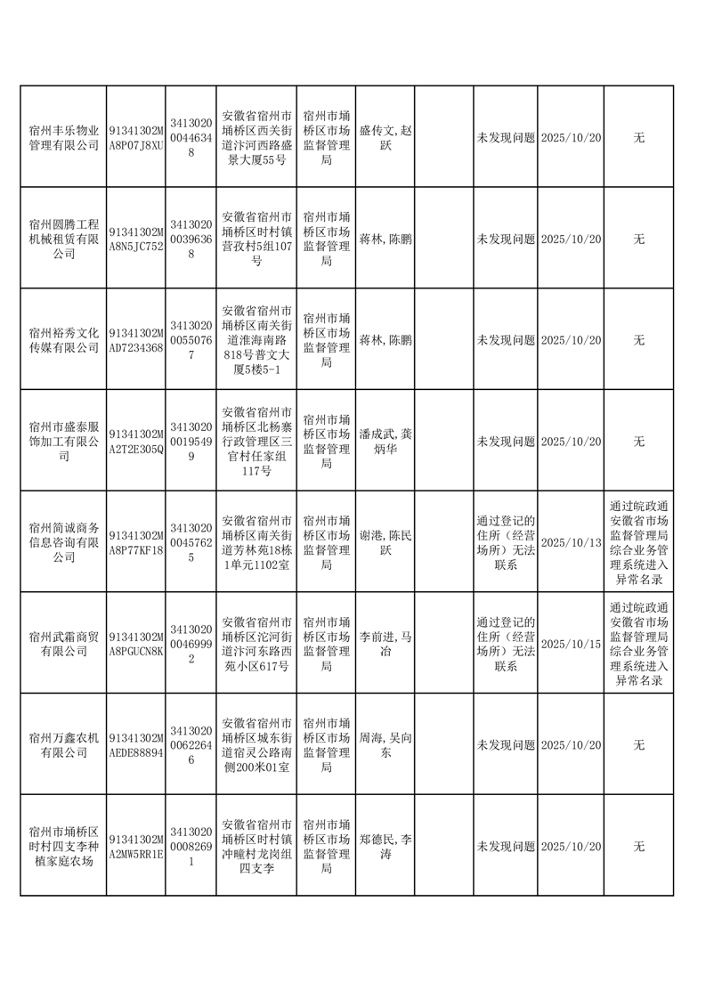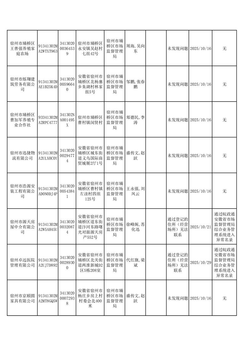 | 名称: | 宿州市埇桥区市场监督管理局2025年全区市场监督管理部门不定向企业抽取计划(检查结果) | ||