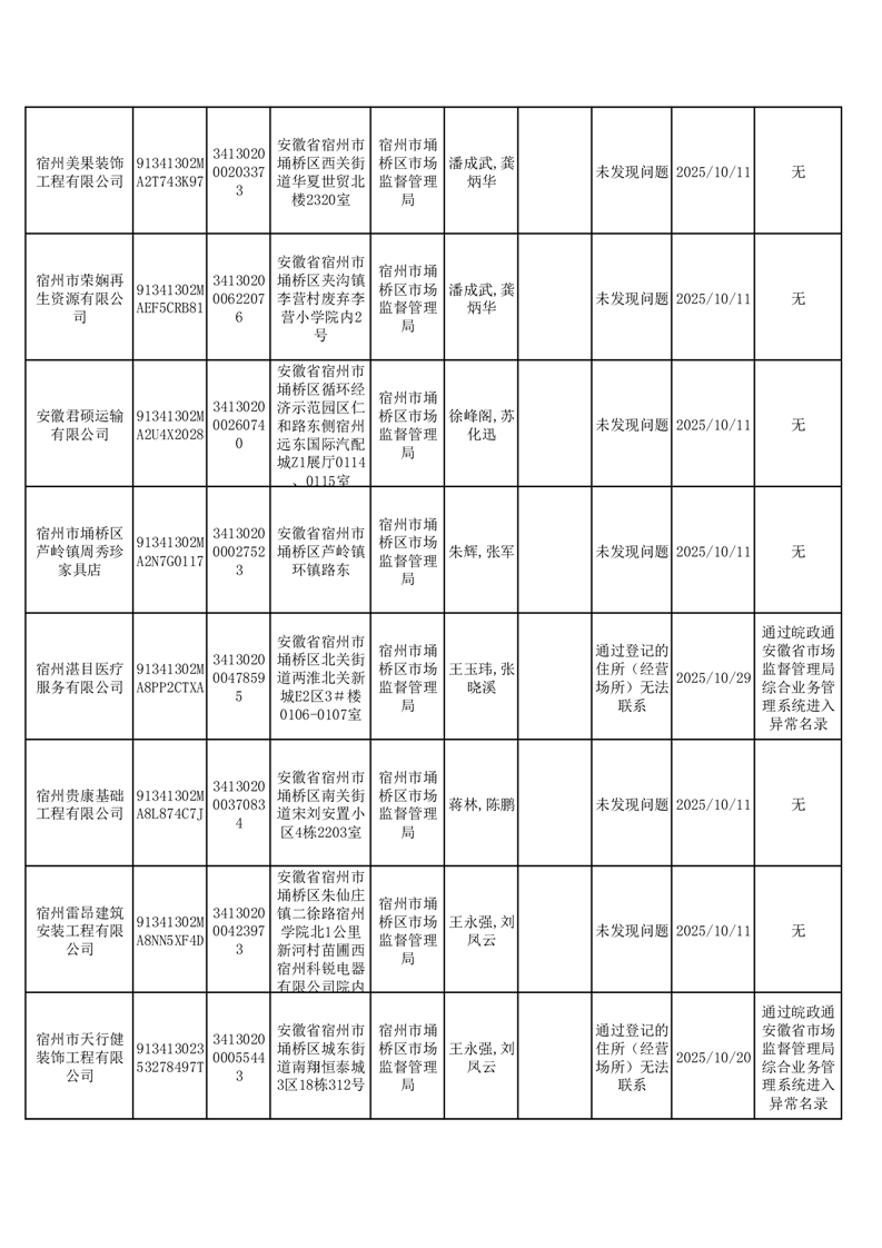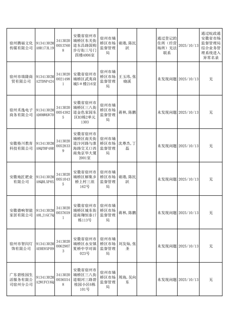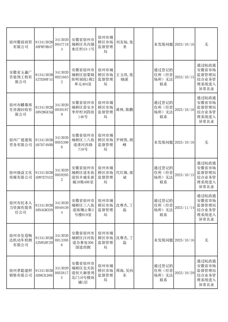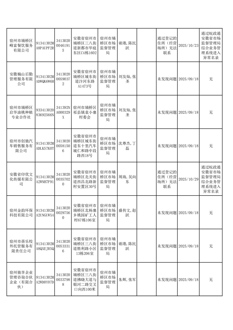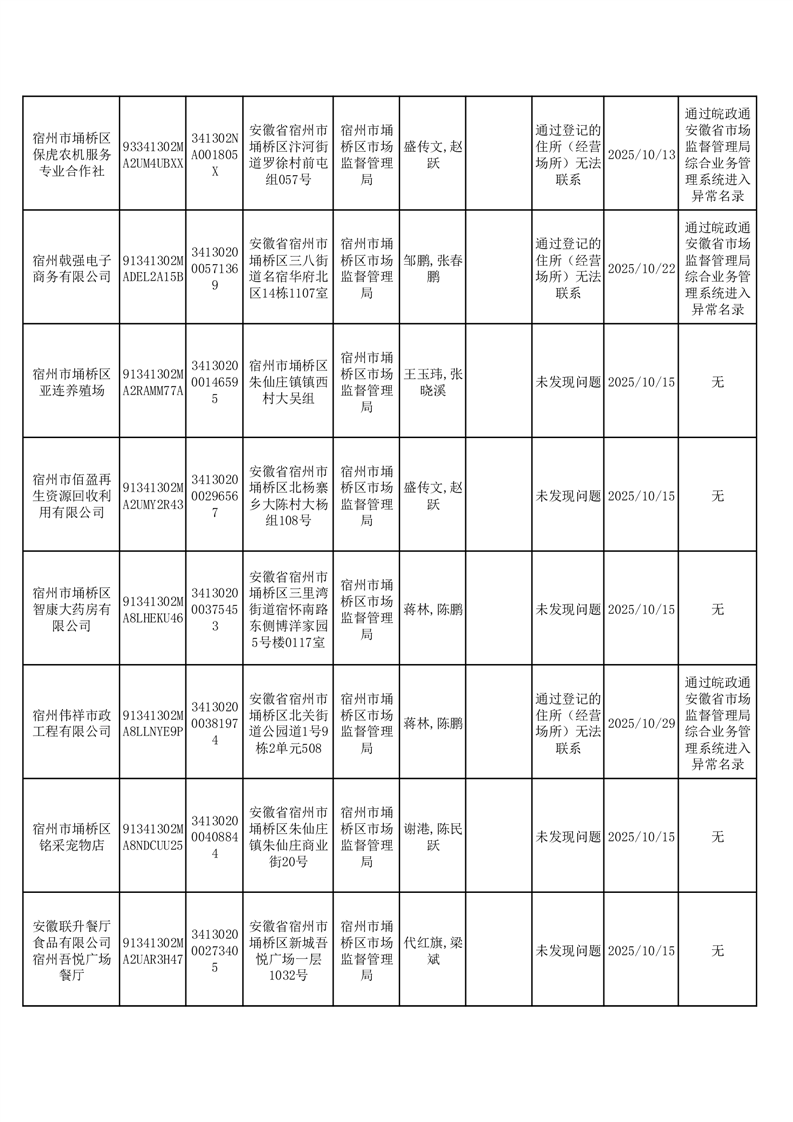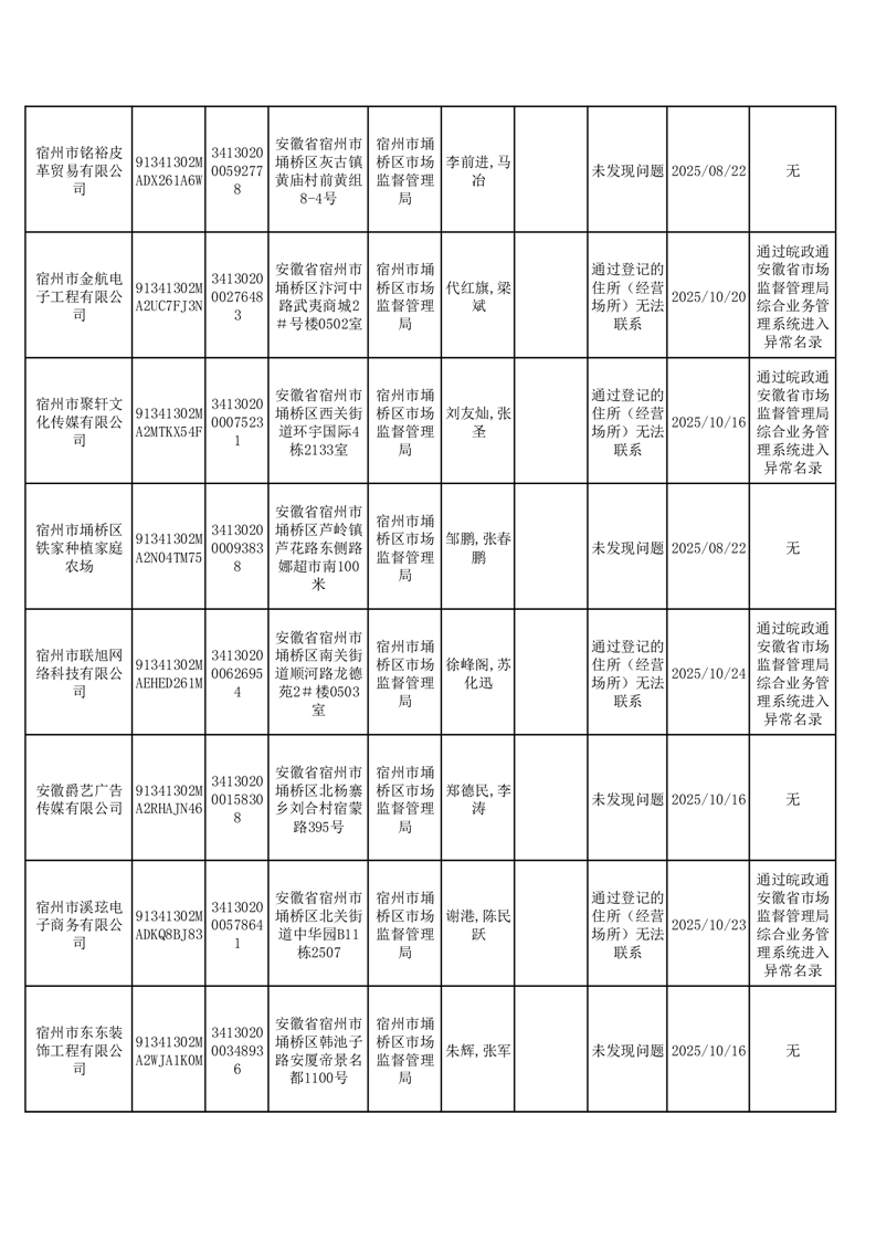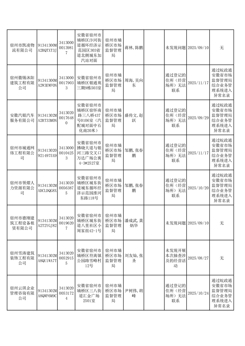| 名称: | 宿州市埇桥区市场监督管理局2025年全区市场监督管理部门不定向企业抽取计划(检查结果) | ||