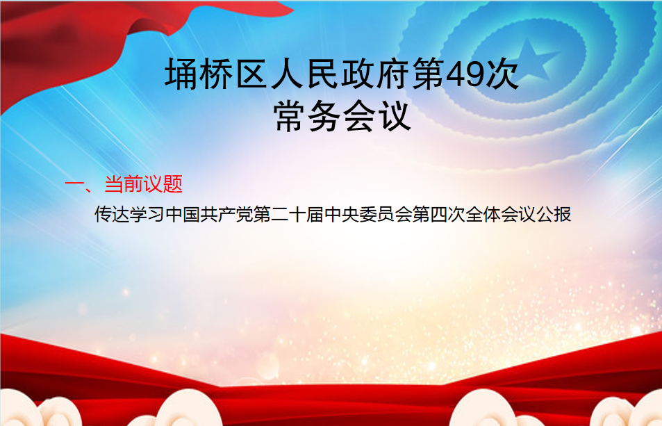 2025年11月14日,区委副书记、区长杨松涛在扶疏亭会议室主持召开区政府第49次常务会议,江海波、蒋雪梅、李杨、张少付、李超出席,王斌、张明列席,区有关单位负责同志分议题列席会议。