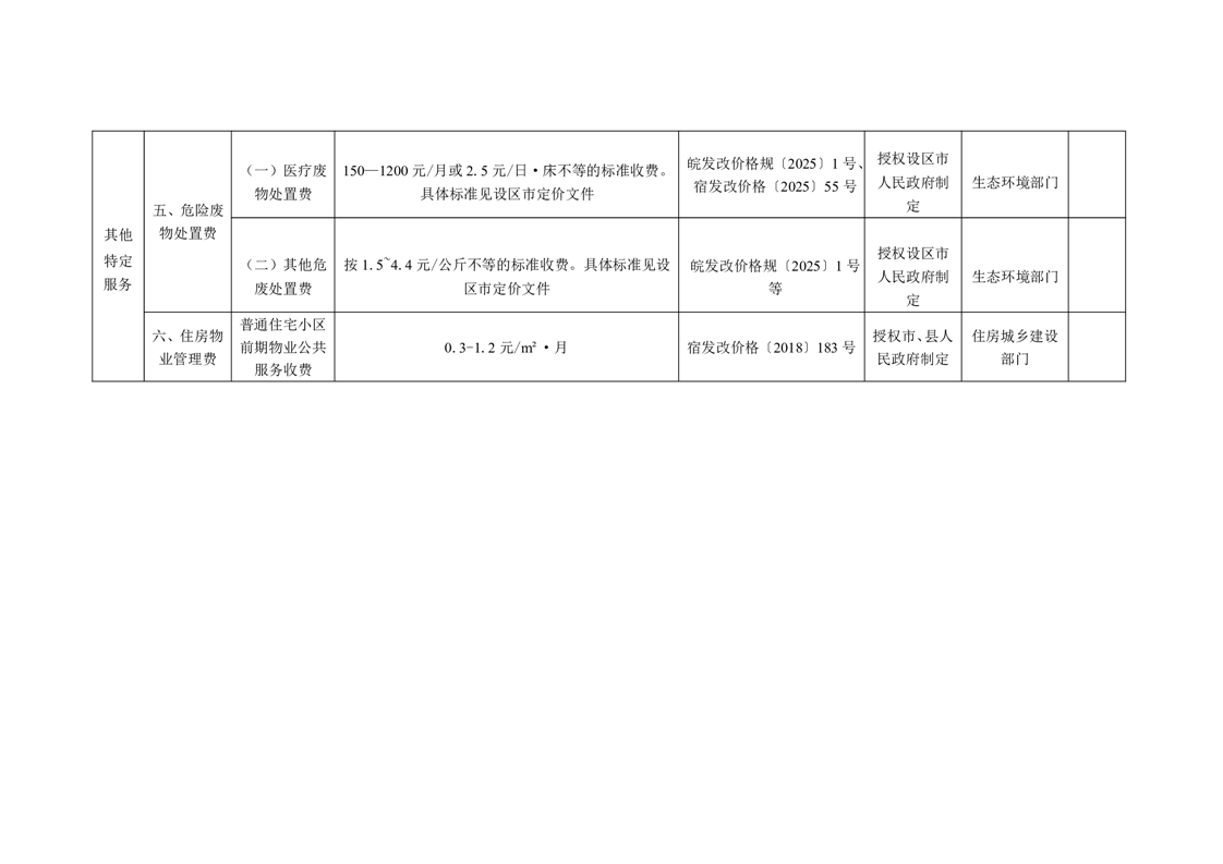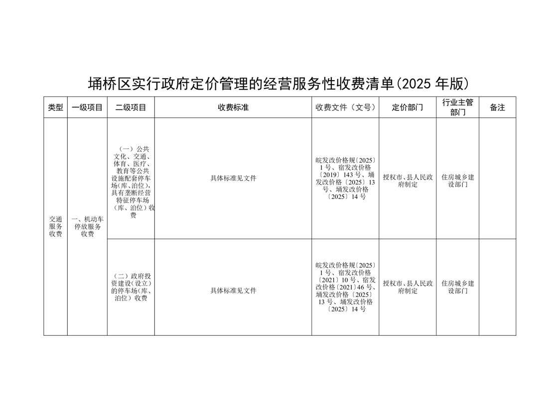 | 名称: | 埇桥区实行政府定价管理的经营服务性收费清单(2025年版) | ||