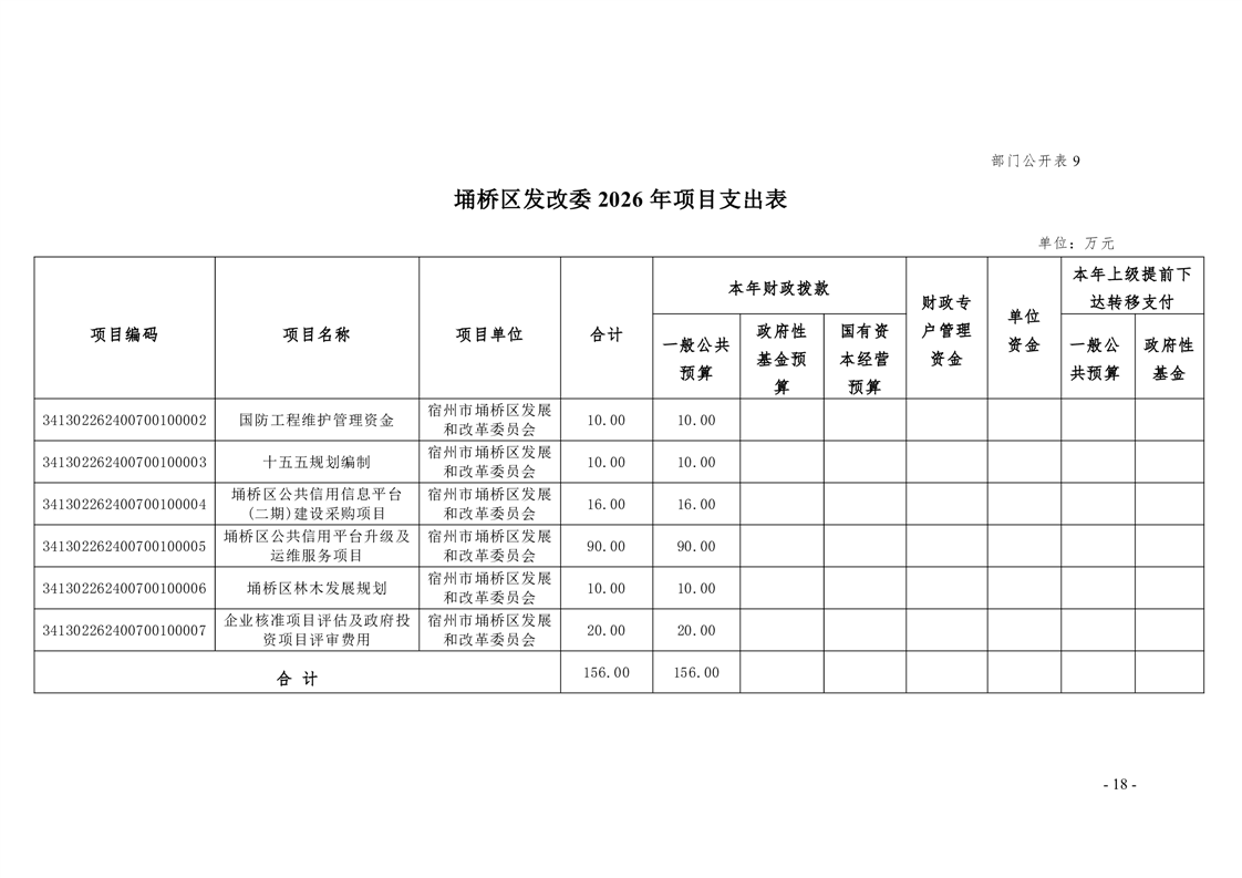 埇桥区发改委2026年预算项目绩效公开表.doc