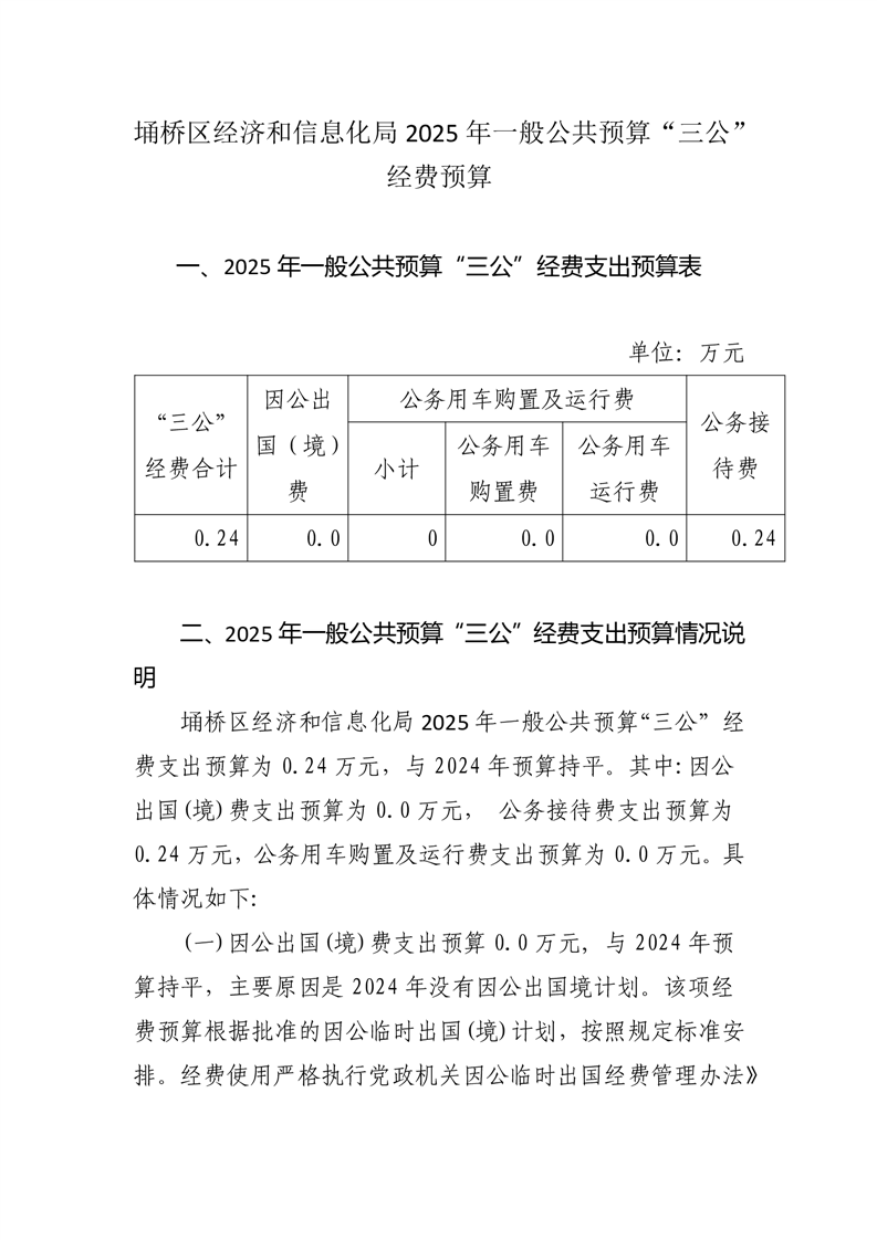埇桥区经济和信息化局2025年一般公共预算“三公”经费预算