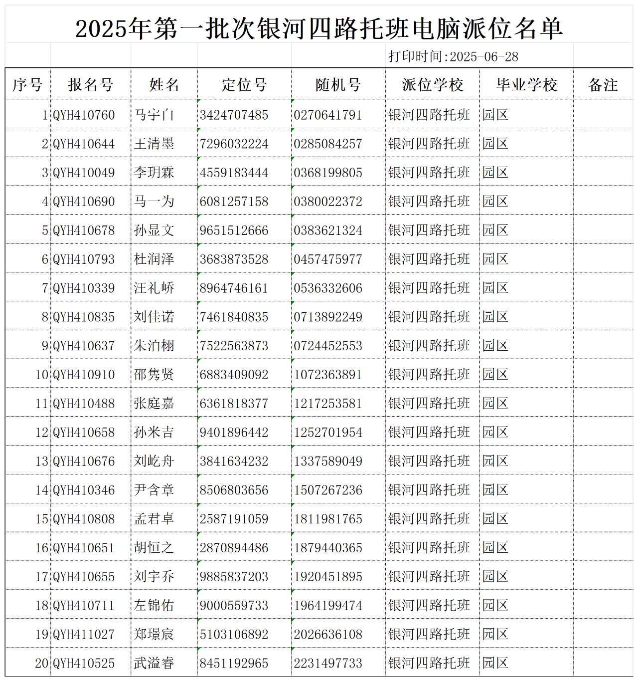 区直幼银河四路园区2025年秋季招生电脑派位录取结果公示(托班)