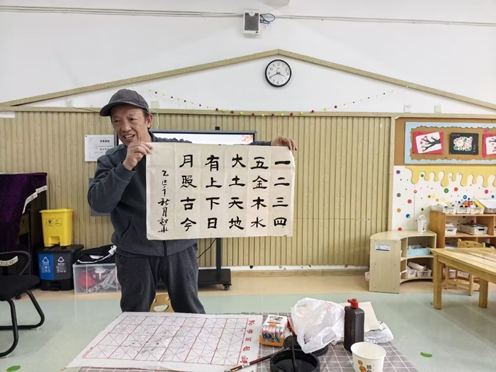 在风采展示环节,爷爷奶奶们纷纷登台亮相,展现自己的拿手绝活。有的奶奶唱起了经典儿歌,歌声悠扬动听;有的爷爷挥毫泼墨,写下“重阳安康”四个大字,笔力遒劲,寓意吉祥;还有的爷爷奶奶表演了太极拳、舞龙舞狮等绝活,一招一式,尽显中华武术的博大精深。