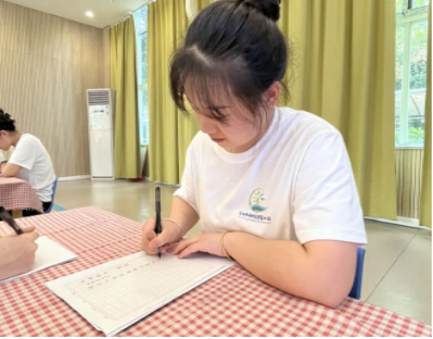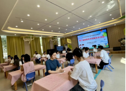 为深入推广普通话与规范汉字书写,我园在推普周期间精心组织教师规范字书写大赛。大赛以“墨香润童心,规范传经典”为主题,围绕中国古诗词等内容展开,设置硬笔书法竞赛项目。活动现场,教师们凝神运笔,以工整娟秀的楷书展现汉字之美,横竖撇捺间,尽显扎实的书写功底与对规范用字的深刻理解。赛后,优秀作品在园所文化墙、班级展示区集中陈列,供教师观摩学习。通过规范字书写大赛提升了教师规范书写能力,更营造出"说普通话、写规范字"的浓厚氛围,助力教师以更专业的语言素养为幼儿树立榜样,推动语言文字规范化在学前教育领域落地生根。