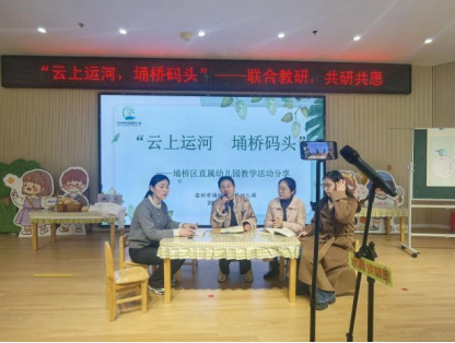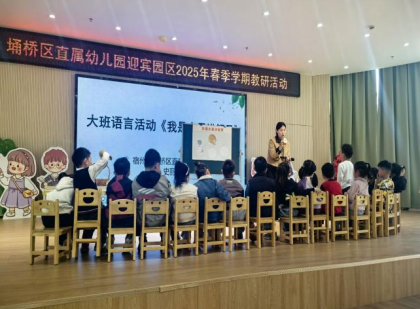 2025年3月28日,宿州市埇桥区直属幼儿园与杭州钱新幼儿园共同举办了主题为“云上运河 埇桥码头”的线上联合教研活动。本次活动由集团园业务负责人及部分语言组的老师积极参与,以大班语言活动《我是水果讲解员》为例,共同探讨了幼儿语言教学的有效策略。
