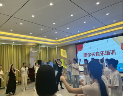 1.奥尔夫音乐培训:为提高教师对音乐教学活动的驾驭能力,有效引导幼儿主动探索音乐、感知音乐,促进幼儿想象力和创造力的开发。2025年2月21日,区直幼教育集团邀请了杭州乐蓓教育奥尔夫音乐总监级讲师麦子来我园进行奥尔夫音乐培训活动。麦子老师针对小、中、大班奥尔夫音乐活动内容展开,由浅入深地细致讲解奥尔夫音乐课例的教学方式以及乐器的使用,介绍解奥尔夫律动活动组织流程,从如何结合故事情境,运用语言节奏、律动引导幼儿欣赏乐曲、理解乐曲,展示和表现音乐的魅力。