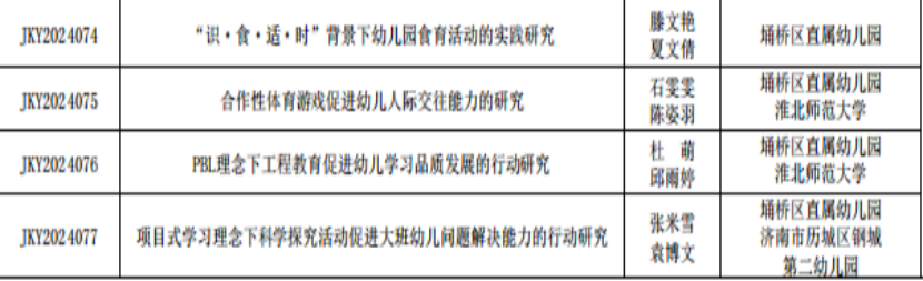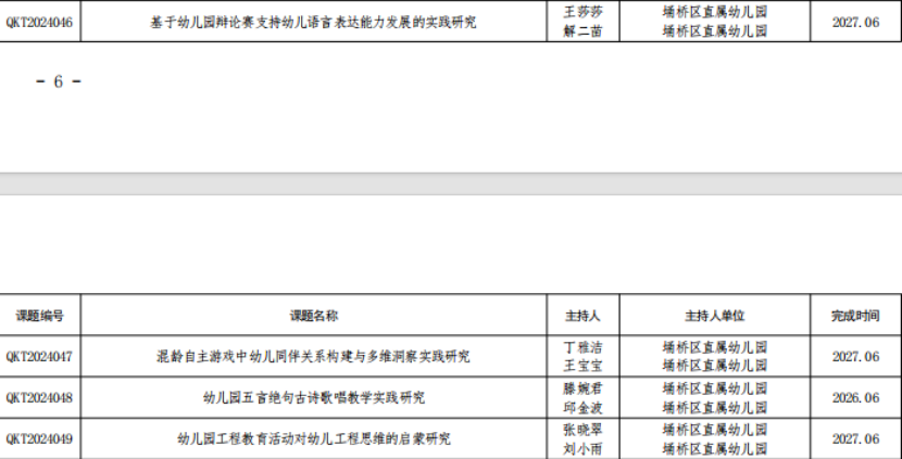 幼儿园课题实现集团园连锁式管理模式,所有的课题实现三地同步研究,根据各园区的情况适当调整。我园区现有在做课题四个,分别是园本部PBL理念下工程教育促进幼儿学习品质发展的行动研究、项目式学习理念下科学探究活动促进大班幼儿问题解决能力的行动研究,迎宾园区合作性体育游戏促进幼儿人际交往能力的研究,江山樾园区“识·食·适·时”背景下幼儿园食育活动的实践研究。通过课题能提高园所保教质量,促进幼儿身心和谐发展。