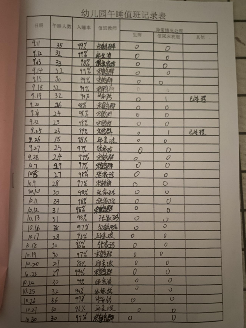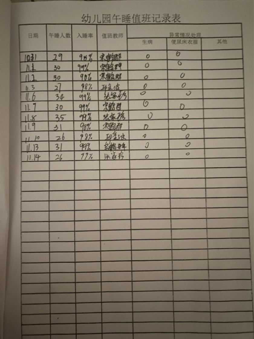 幼儿午睡值班记录表