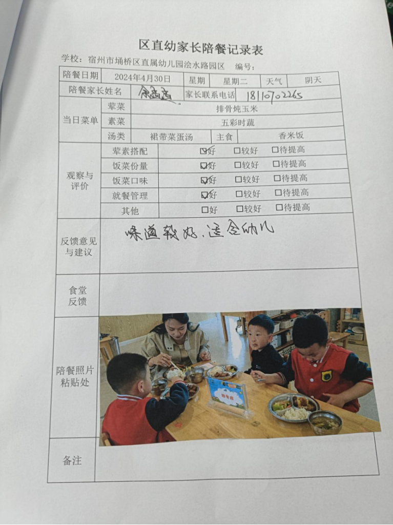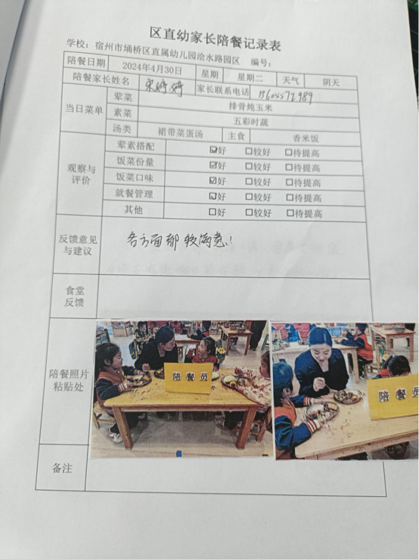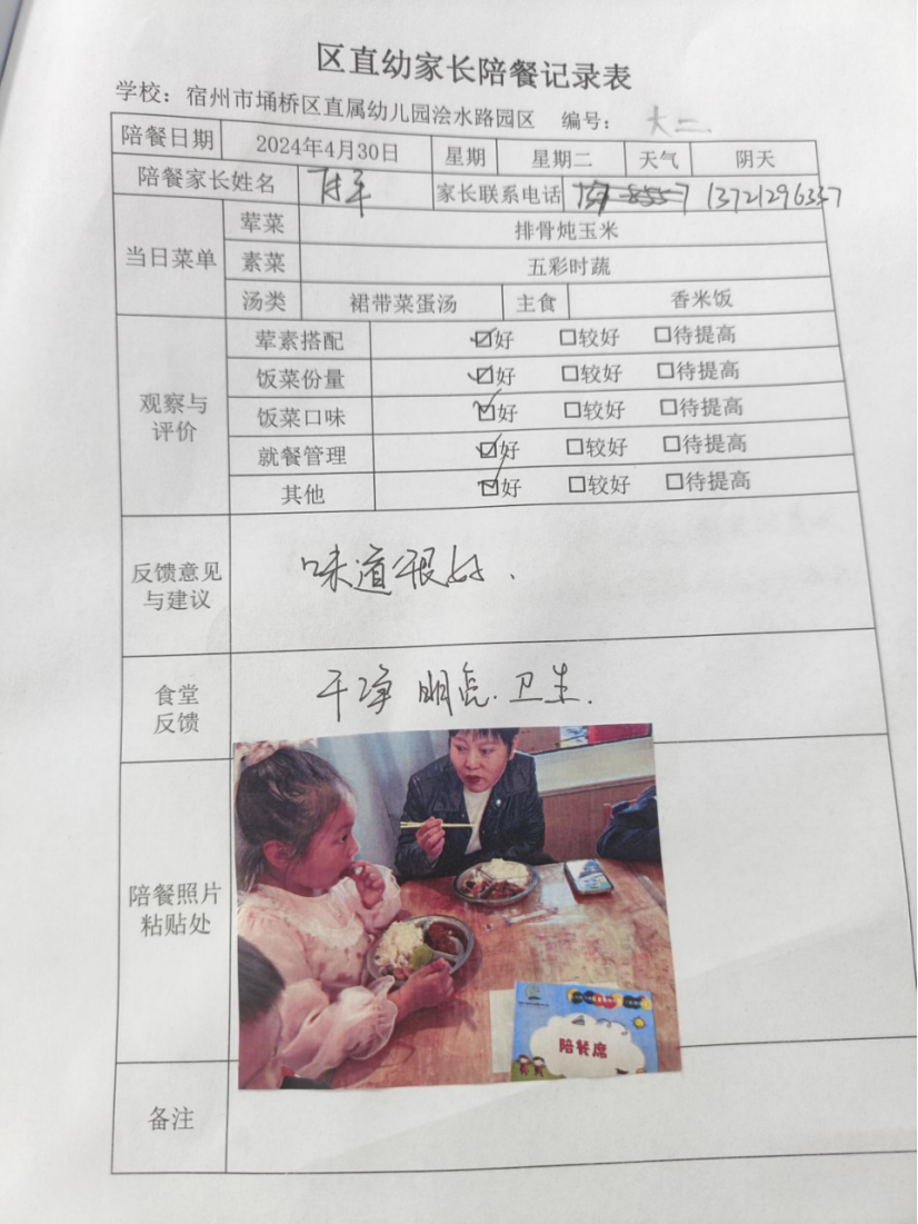 家委会配餐记录