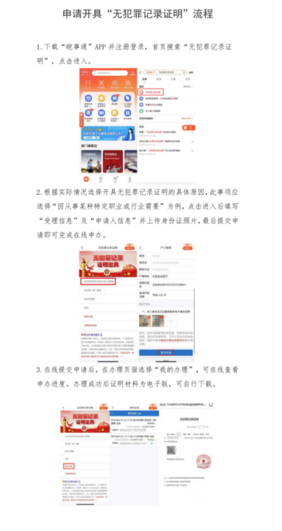 6.无犯罪记录证明。申请人须至少提前三个工作日在“皖事通”APP上申请开具“无犯罪记录证明”并上传,流程详见(特别提醒)。港澳台居民申请认定教师资格须提交的无犯罪记录证明由申请人自行到香港特别行政区、澳门特别行政区和台湾地区有关部门开具。其中港澳居民开具无犯罪记录证明需教育行政部门协助提供函件者,可通过认定机构与安徽省教师发展中心联系出具。
