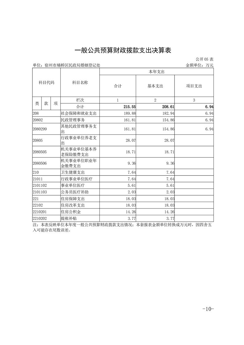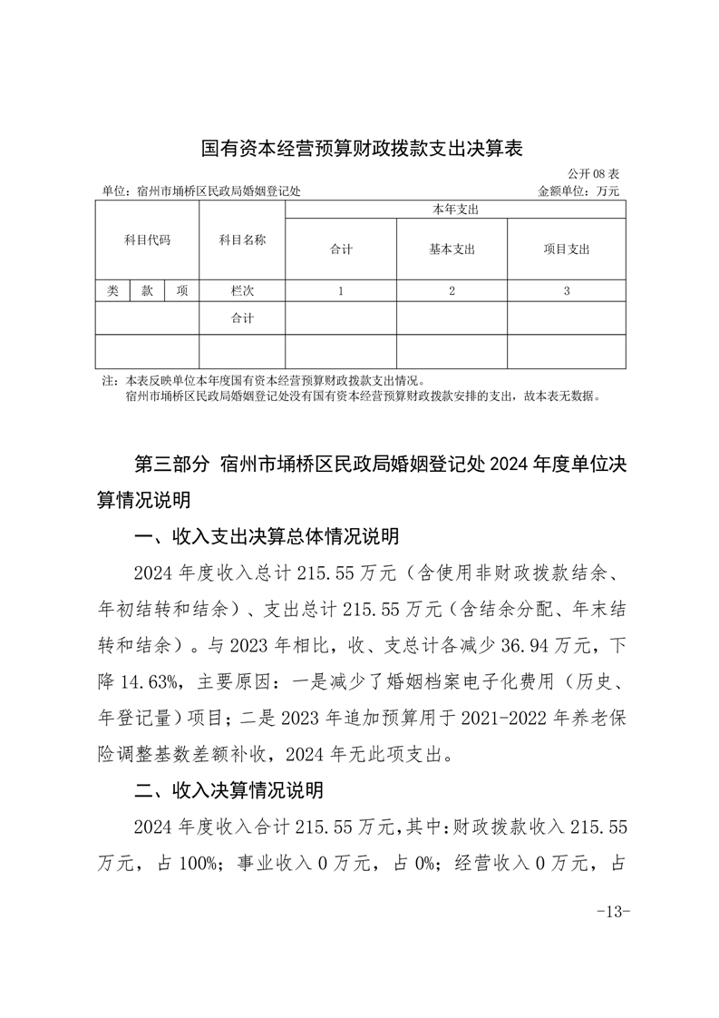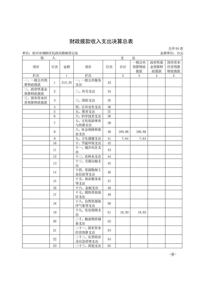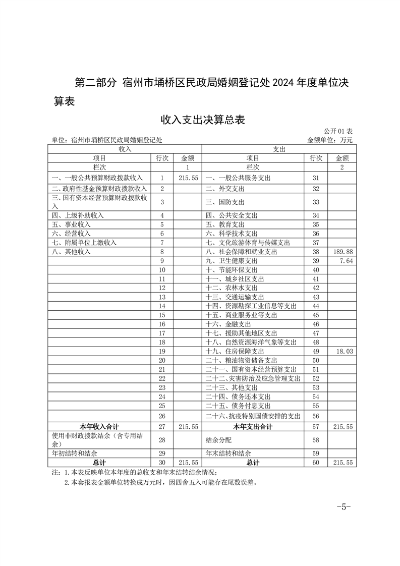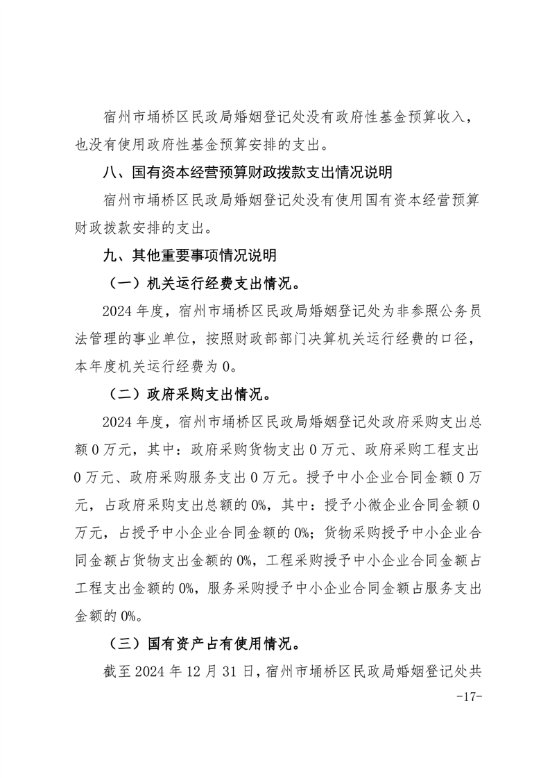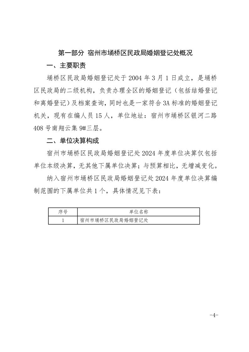 | 名称: | 宿州市埇桥区民政局婚姻登记处2024年度单位决算 | ||