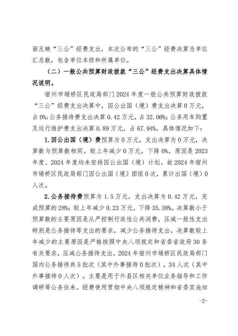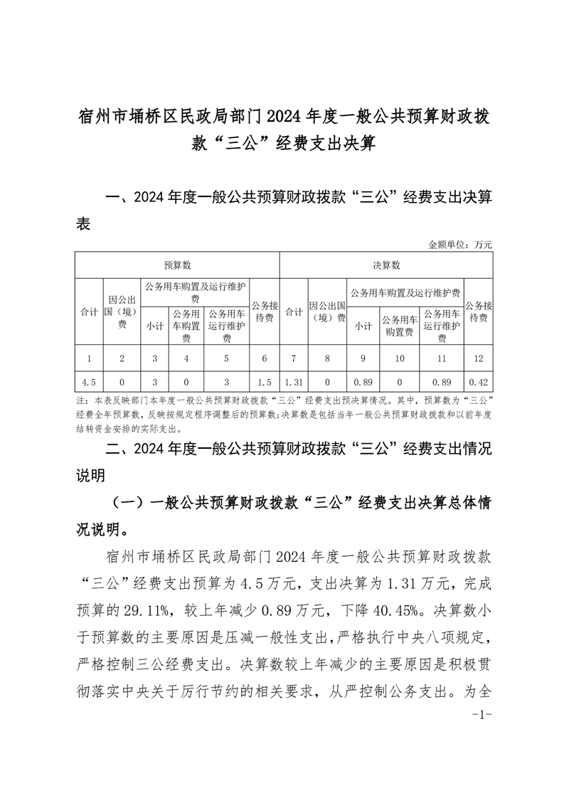 | 名称: | 宿州市埇桥区民政局部门2024年度一般公共预算财政拨款“三公”经费支出决算 | ||