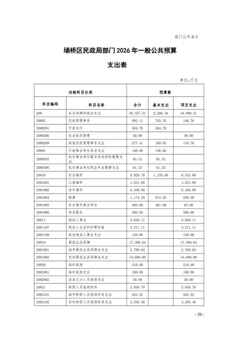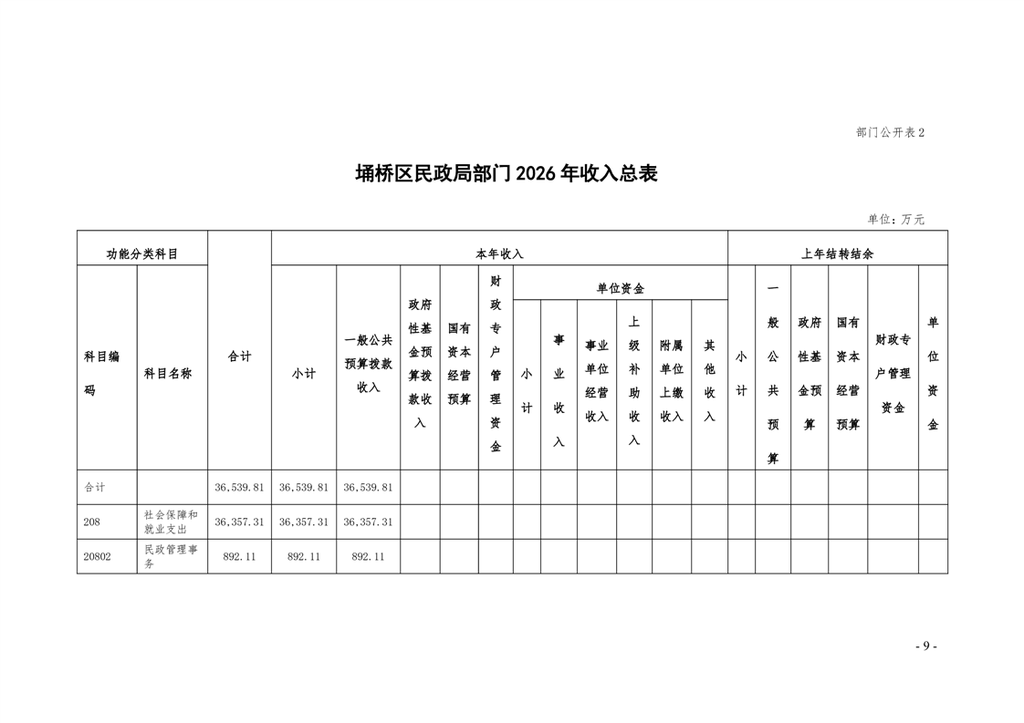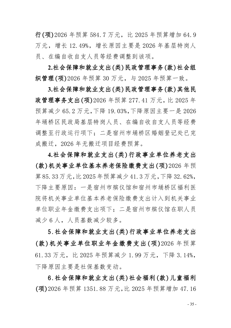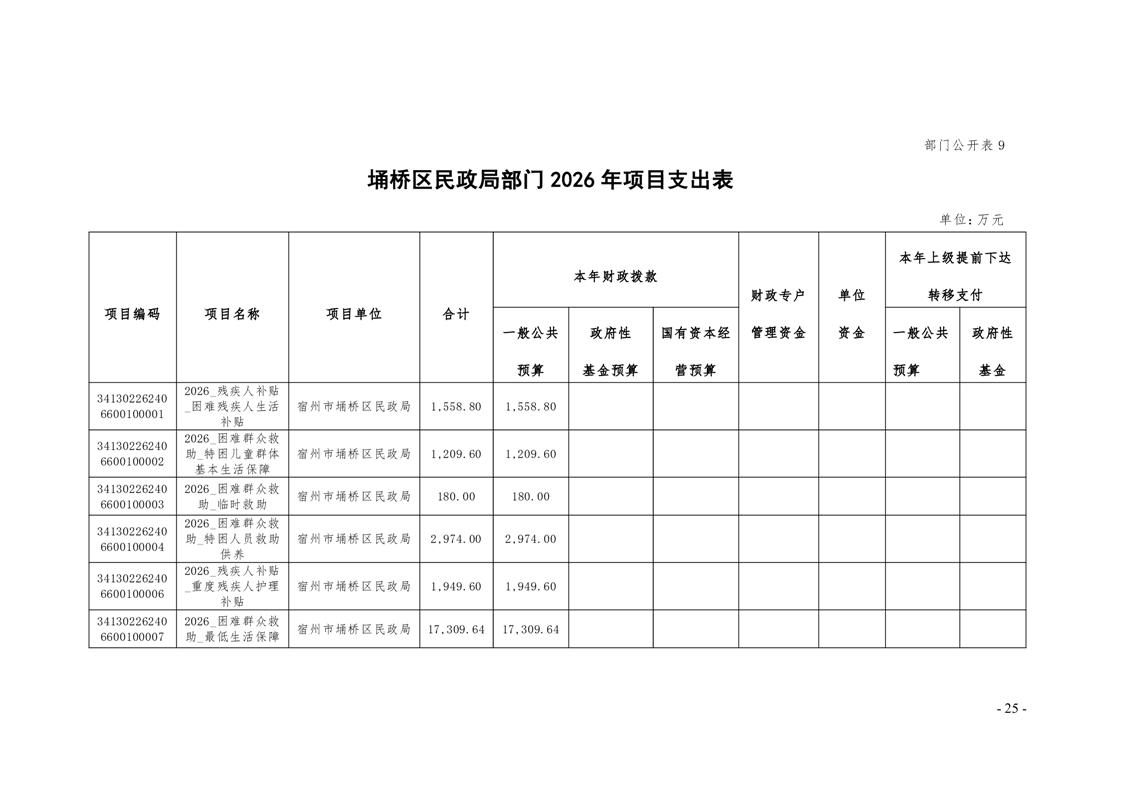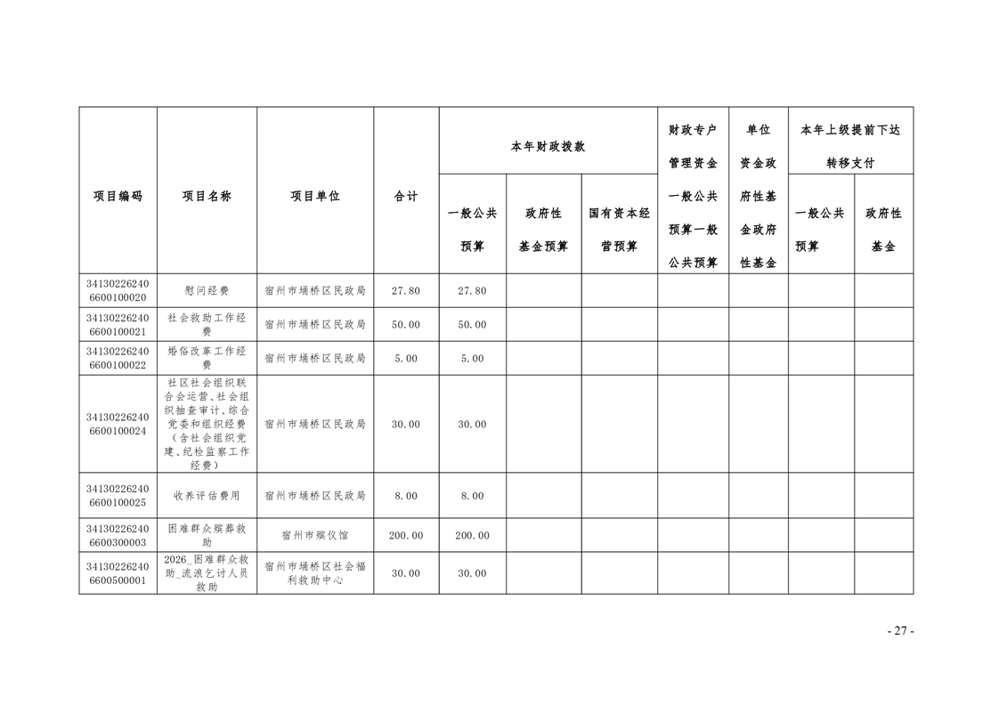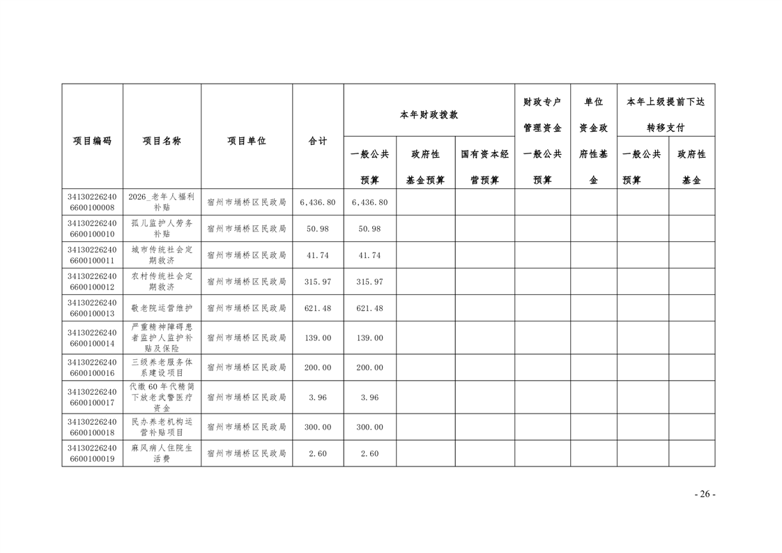埇桥区民政局部门及二级机构2026年预算