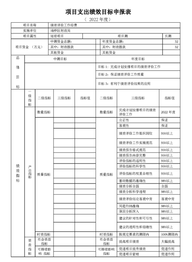 | 名称: | 埇桥区财政局2022年“绩效评价工作经费”项目 | ||