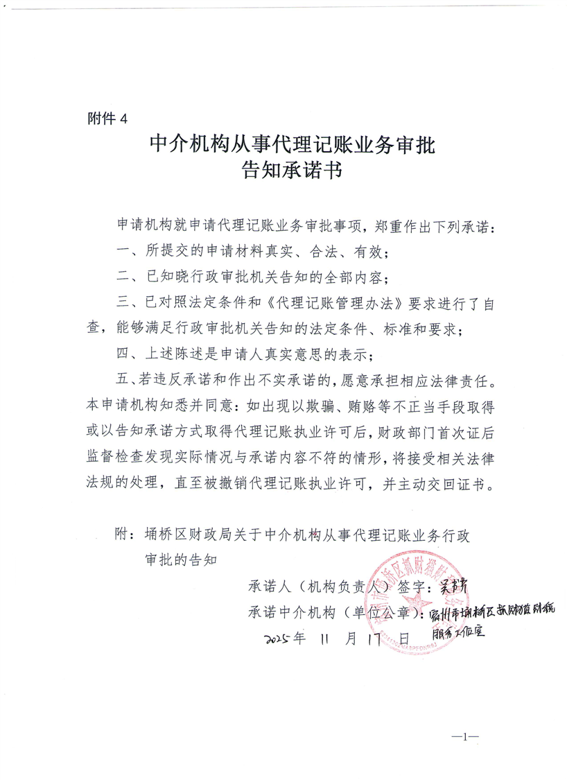中介机构从事代理记账业务审批告知承诺书