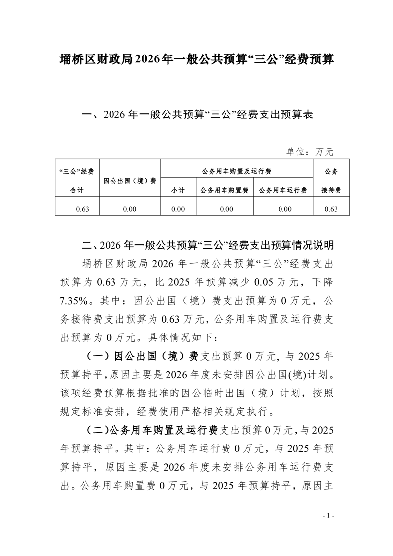 埇桥区财政局2026年部门“三公”经费预算