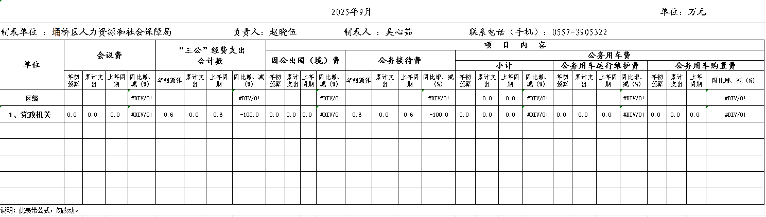 名称: | 2025年9月区人社局“三公”经费和会议费支出情况统计表 | ||