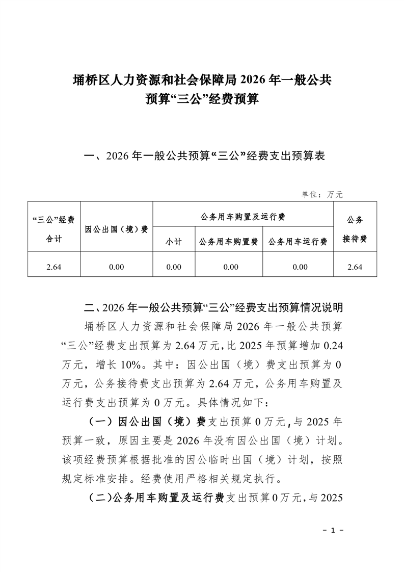 | 名称: | 2026年埇桥区人力资源和社会保障局部门“三公”经费预算公开说明 | ||