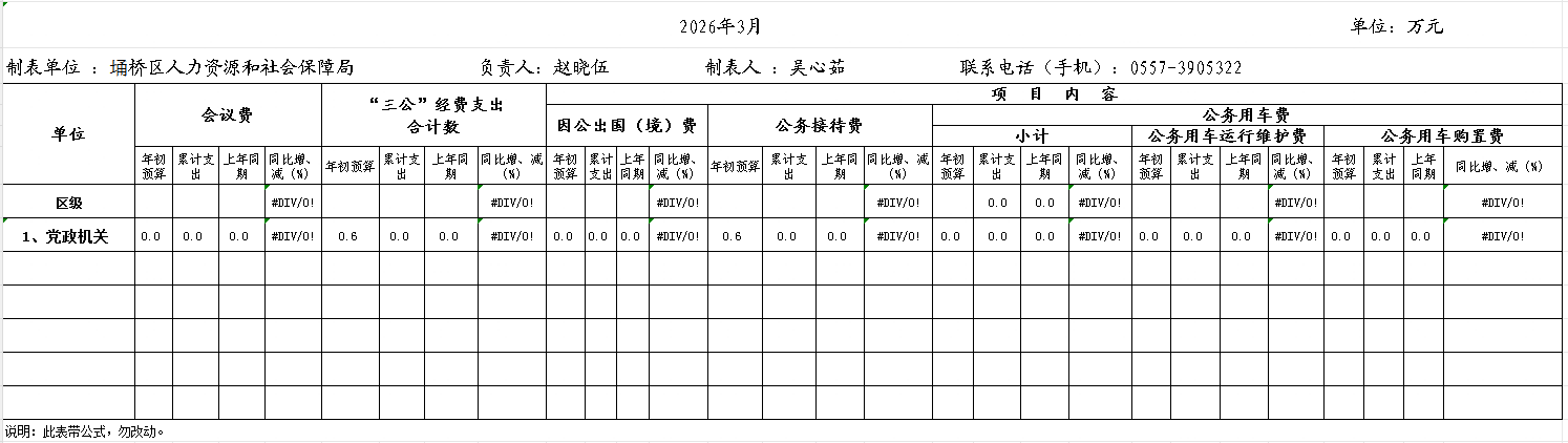 | 名称: | 2026年3月区人社局“三公”经费和会议费支出情况统计表 | ||