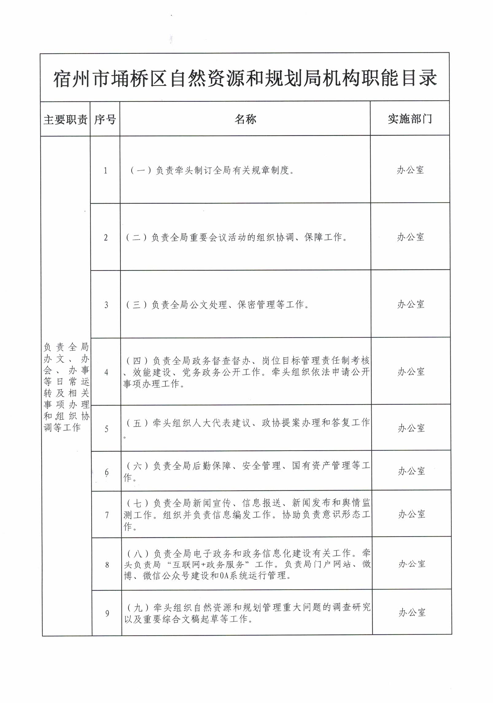 宿州市埇桥区自然资源和规划局机构职能目录