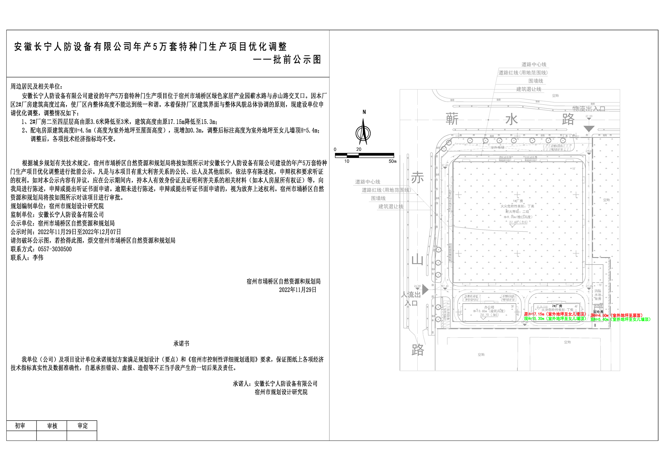 安徽长宁人防设备有限公司年产5万套特种门项目调整总图批前公示图