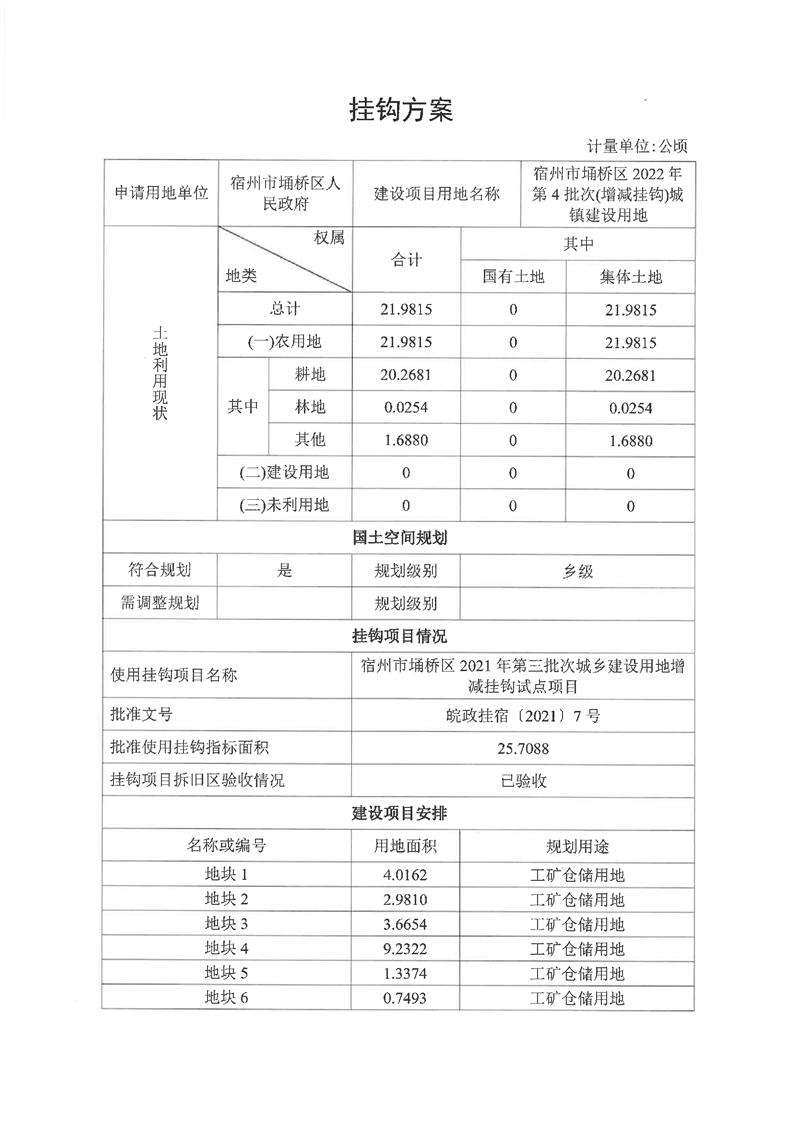 | 名称: | 宿州市埇桥区2022年第4批次(增减挂钩)城镇建设用地挂钩方案 | ||
