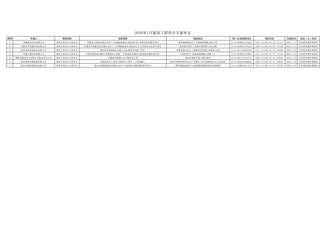 2026年1月建设工程设计方案审定