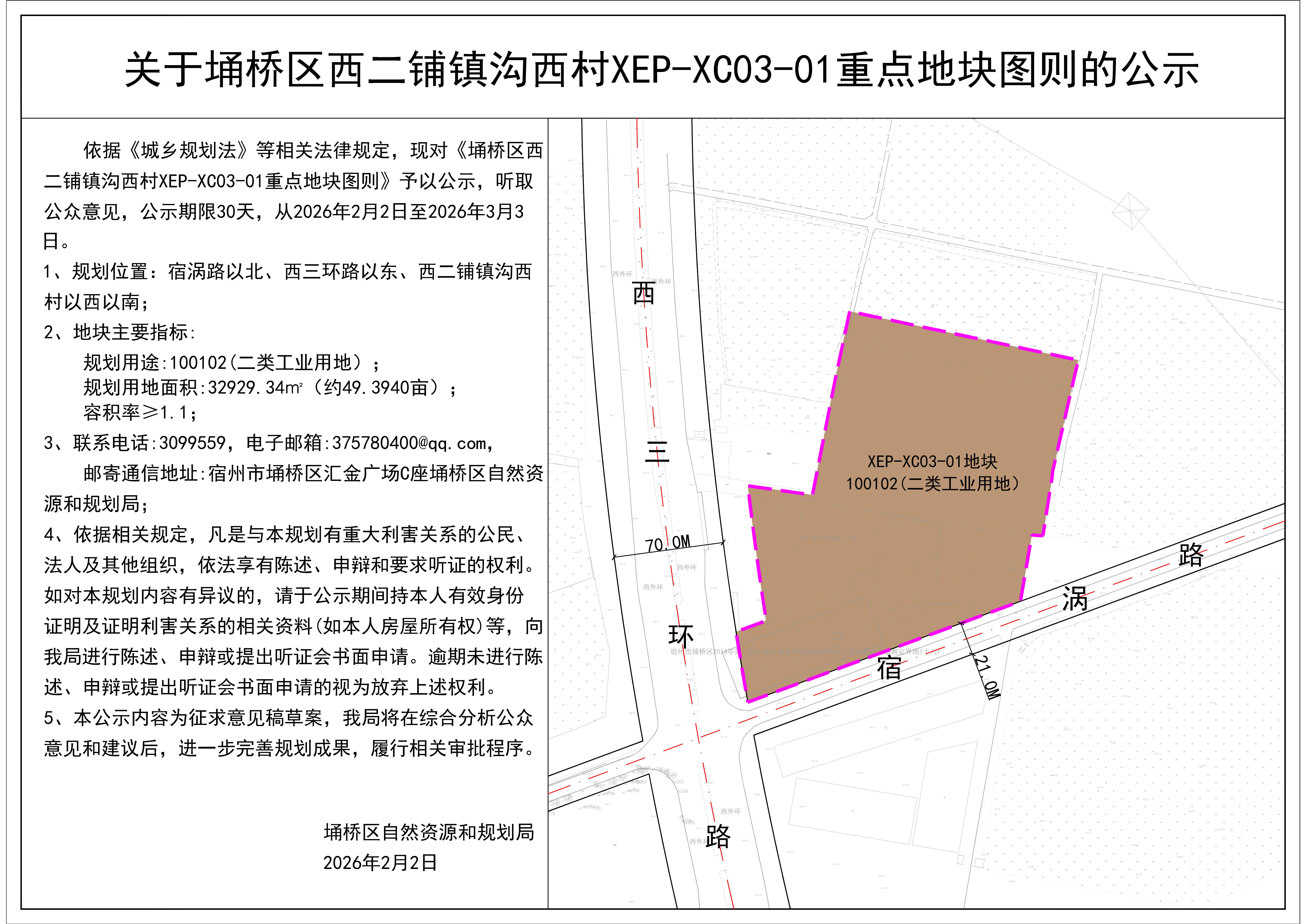 关于埇桥区西二铺镇沟西村EP-XC03-01重点地块图则的公示