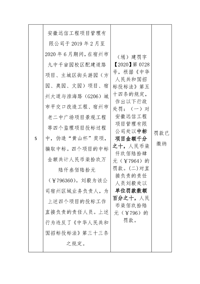 【行政处罚】埇桥区住房和城乡建设局2020年第三季度行政处罚结果信息