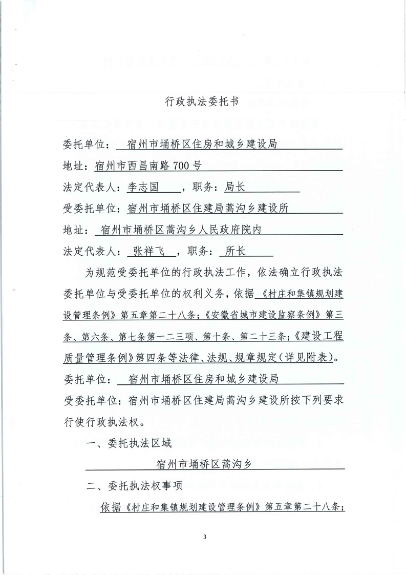 行政执法委托书(宿州市埇桥区住建局蒿沟乡建设所)