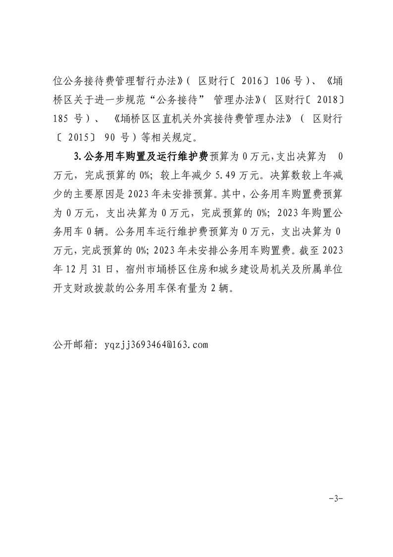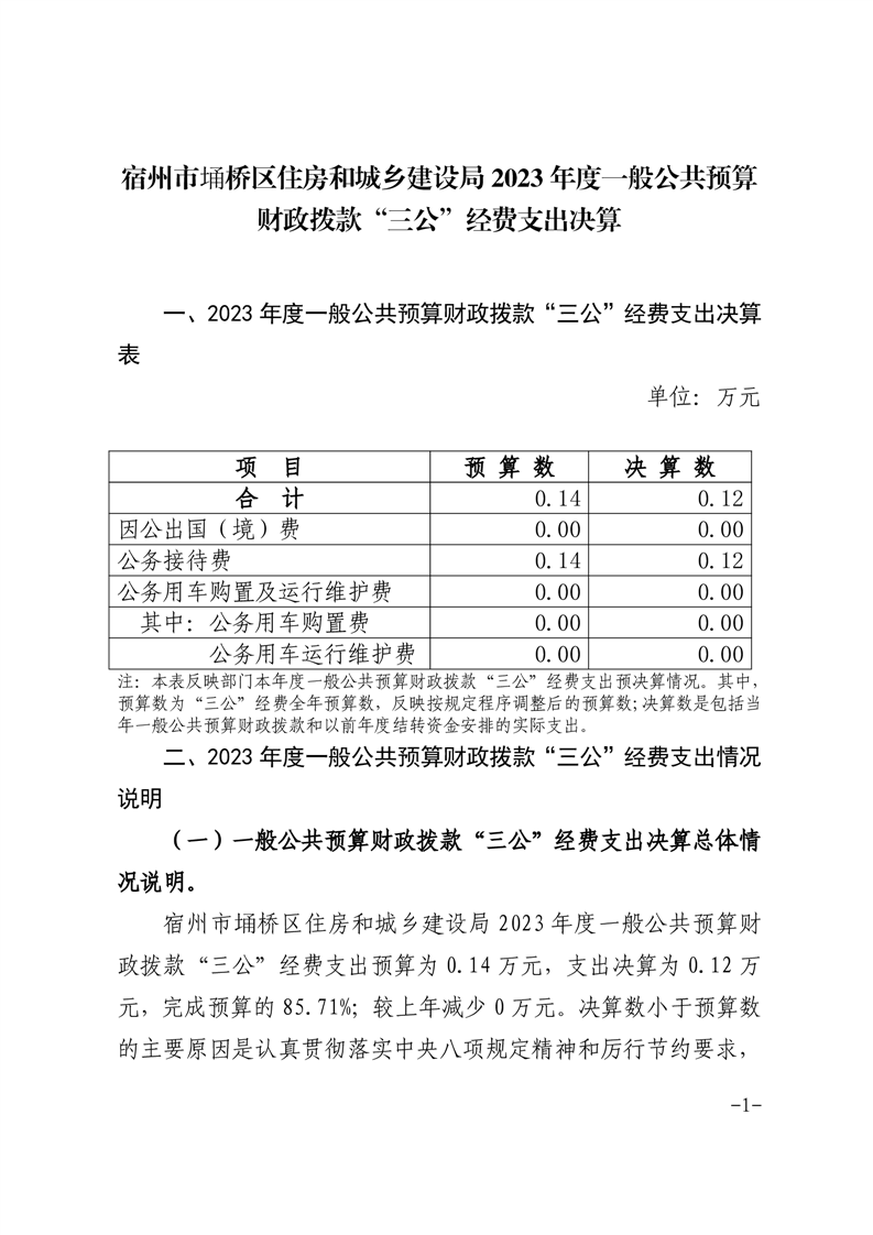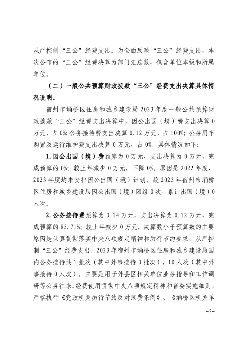 | 名称: | 宿州市埇桥区住房和城乡建设局2023年度一般公共预算财政拨款“三公”经费支出部门决算 | ||