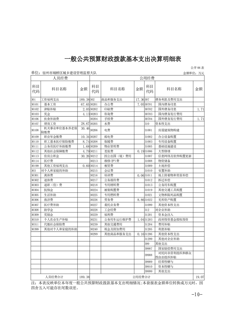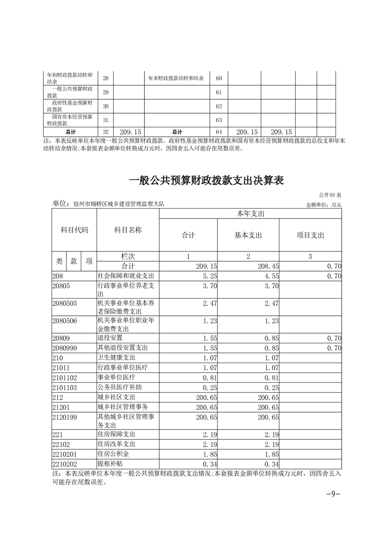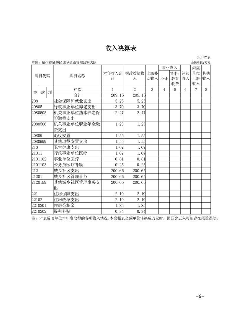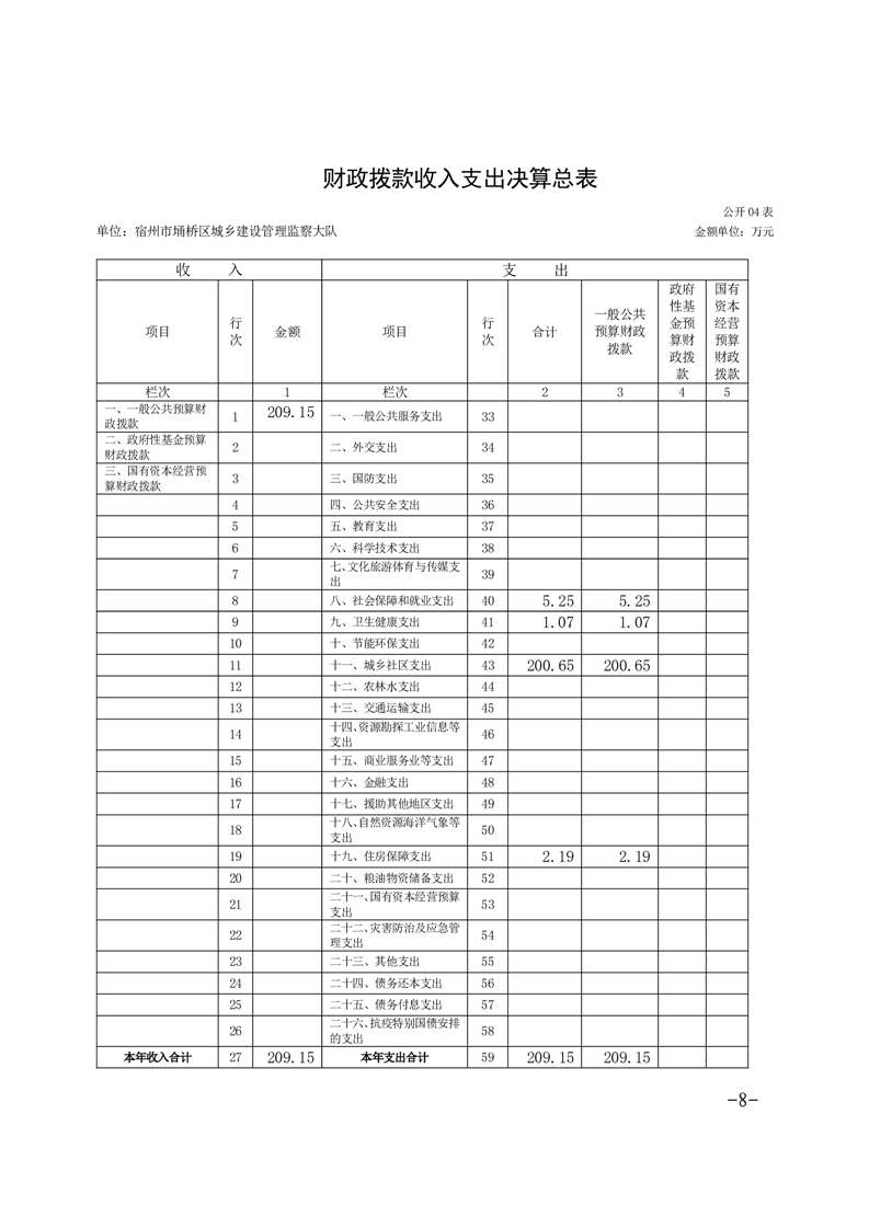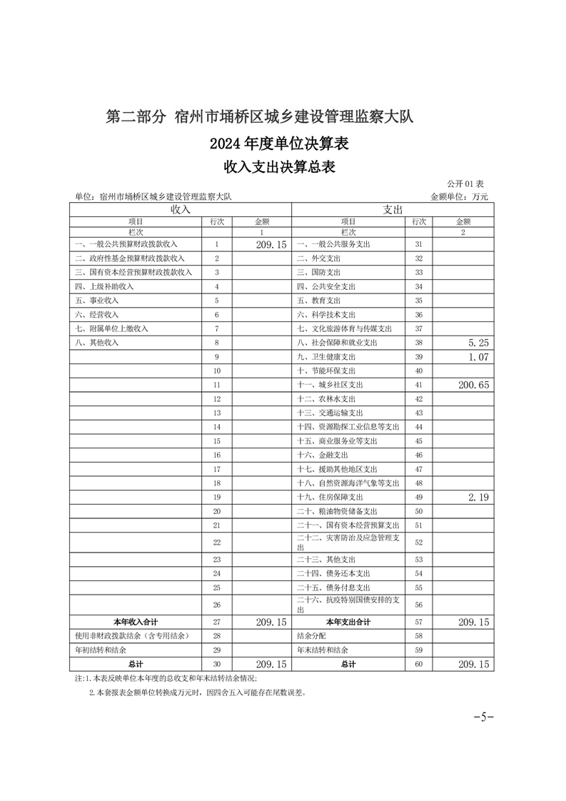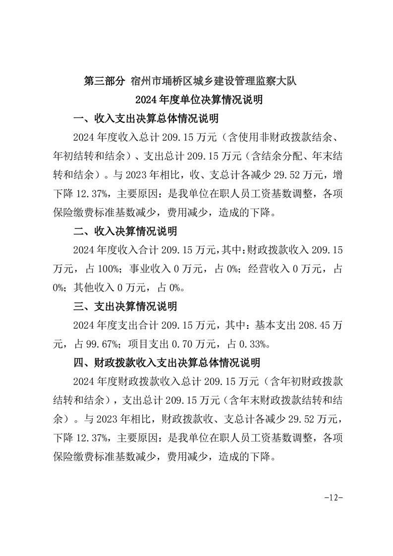 宿州市埇桥区城乡建设管理监察大队2024年度单位决算