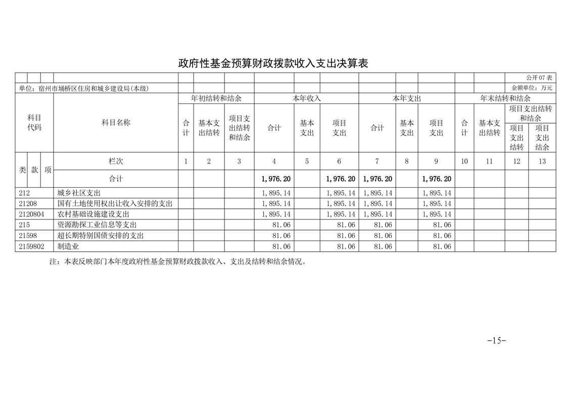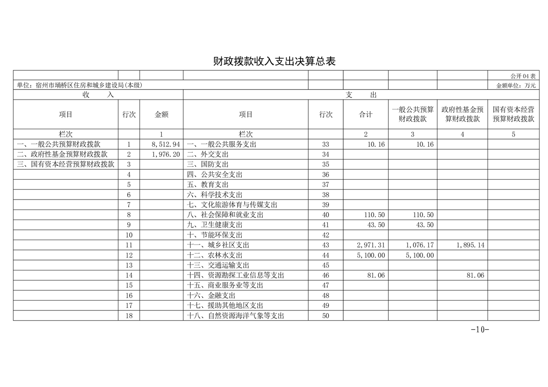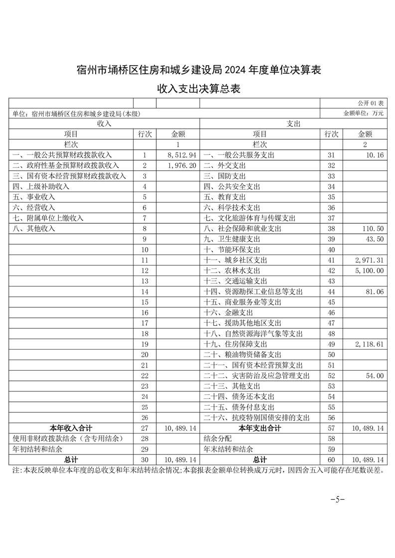 名称: | 宿州市埇桥区住房和城乡建设局2024年度单位决算 | ||