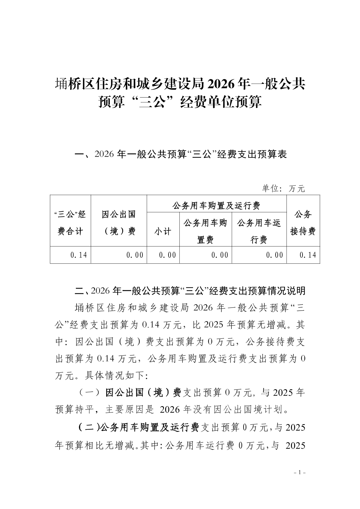 埇桥区住房和城乡建设局2026年一般公共预算“三公”经费单位预算