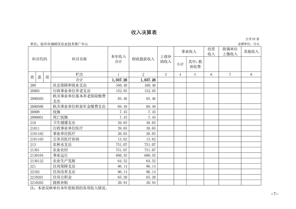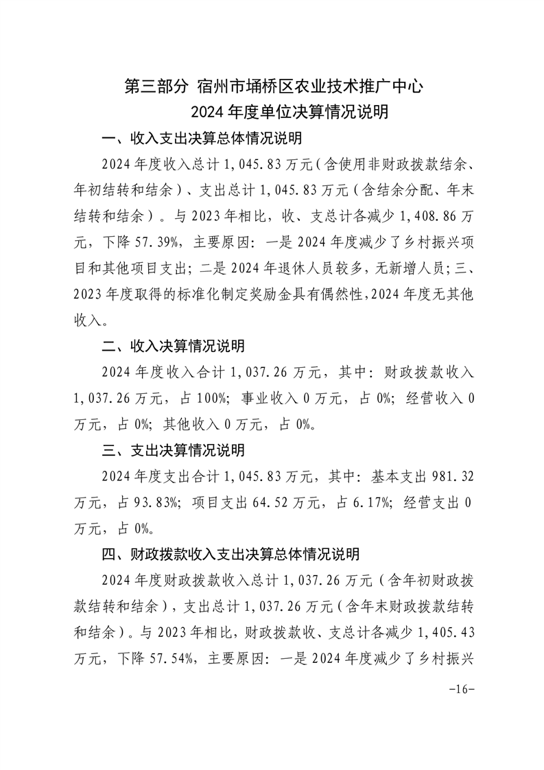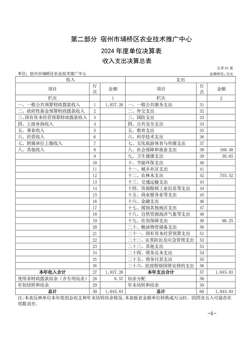 宿州市埇桥区农业技术推广中心2024年度单位决算