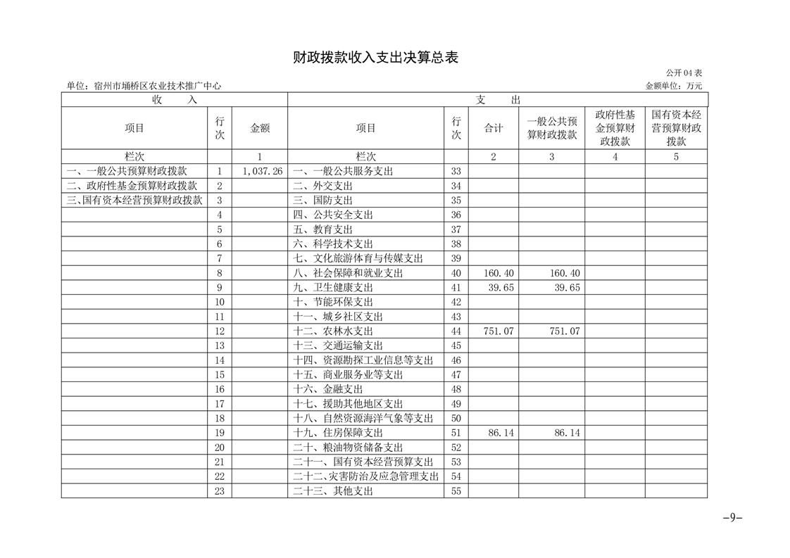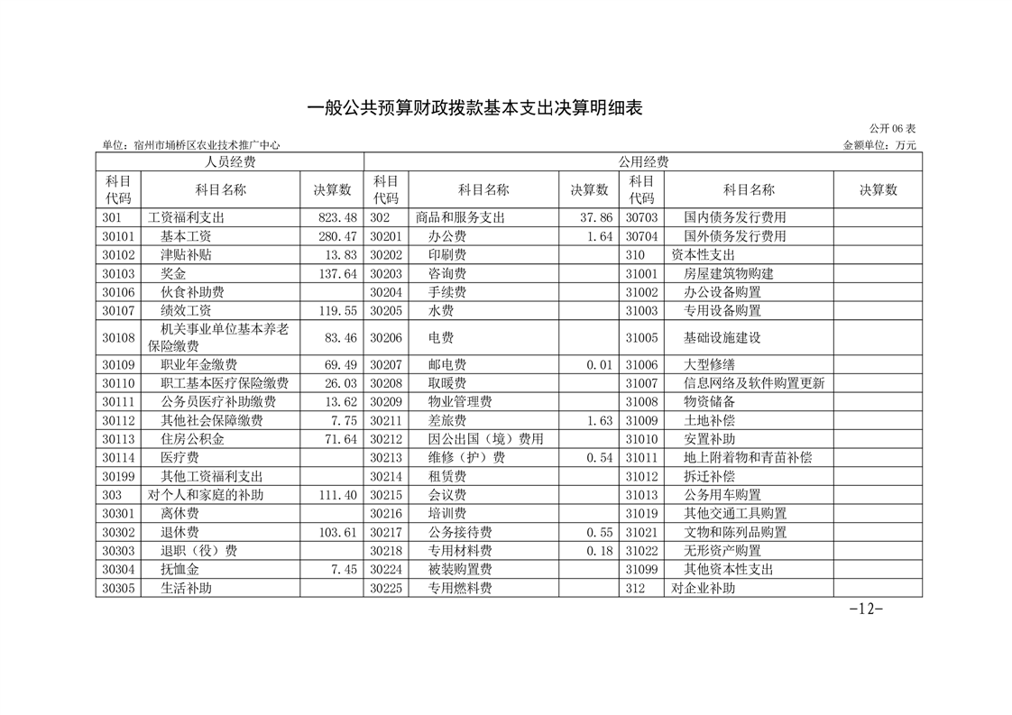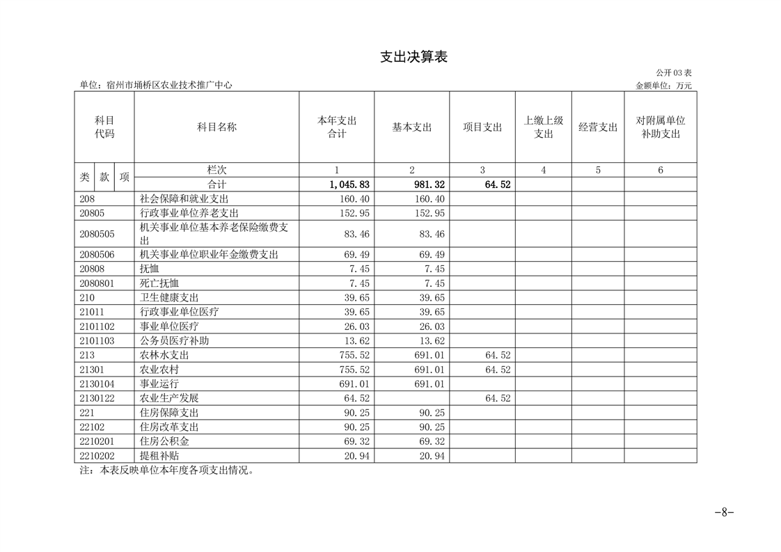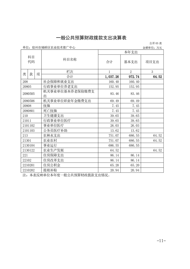 宿州市埇桥区农业技术推广中心2024年度单位决算