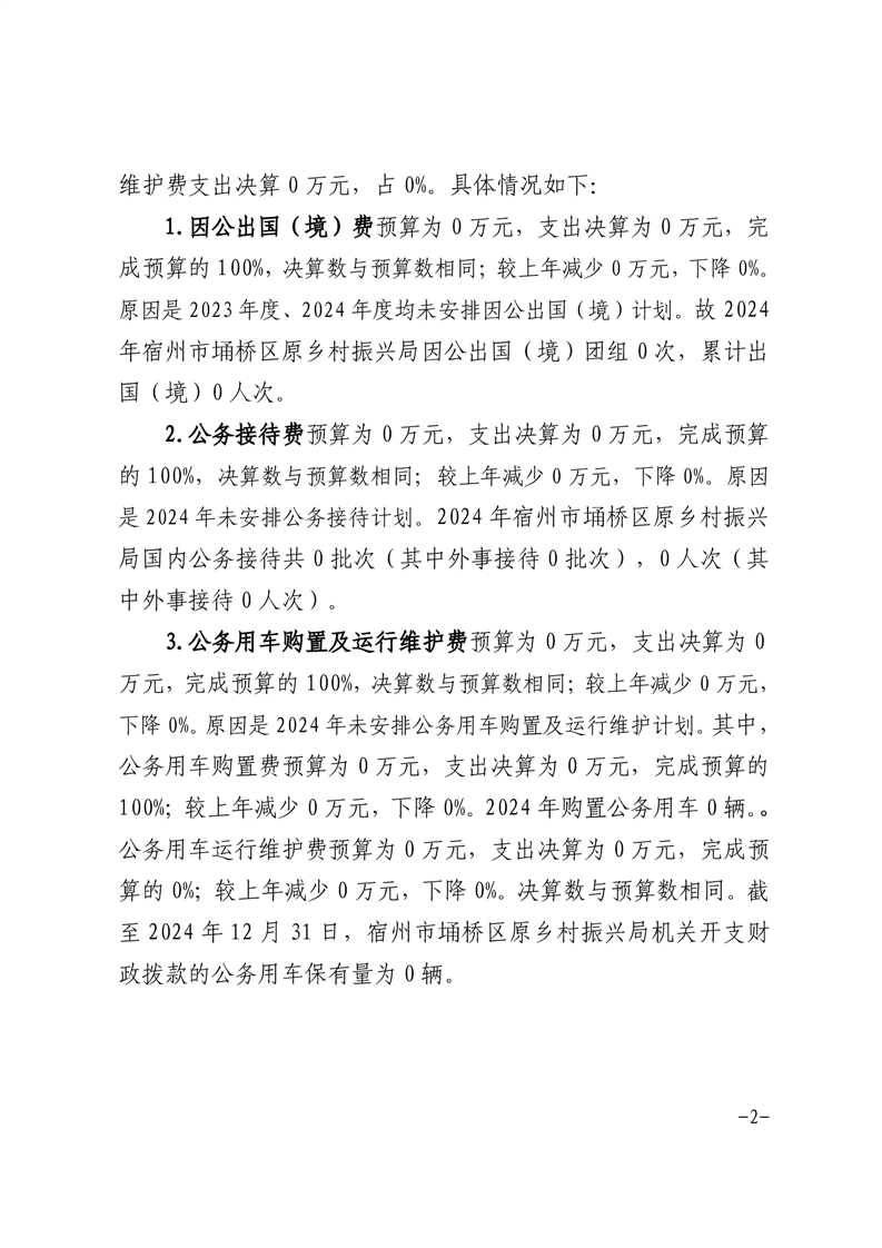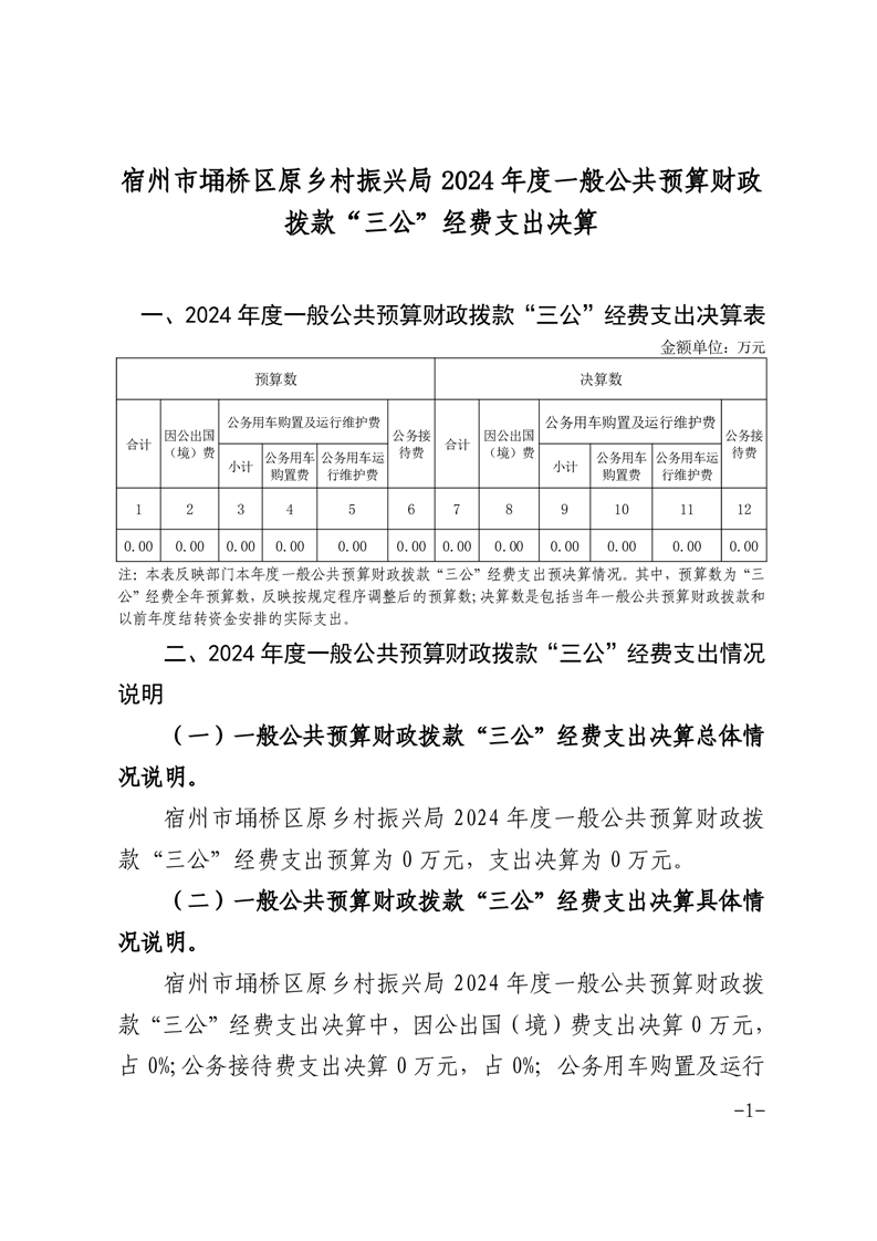 | 名称: | 宿州市埇桥区原乡村振兴局2024年度一般公共预算财政拨款“三公”经费支出决算 | ||